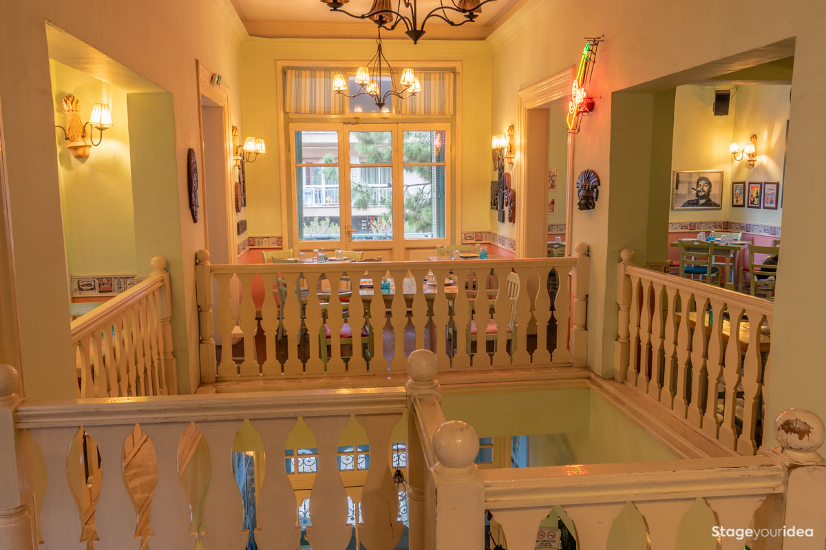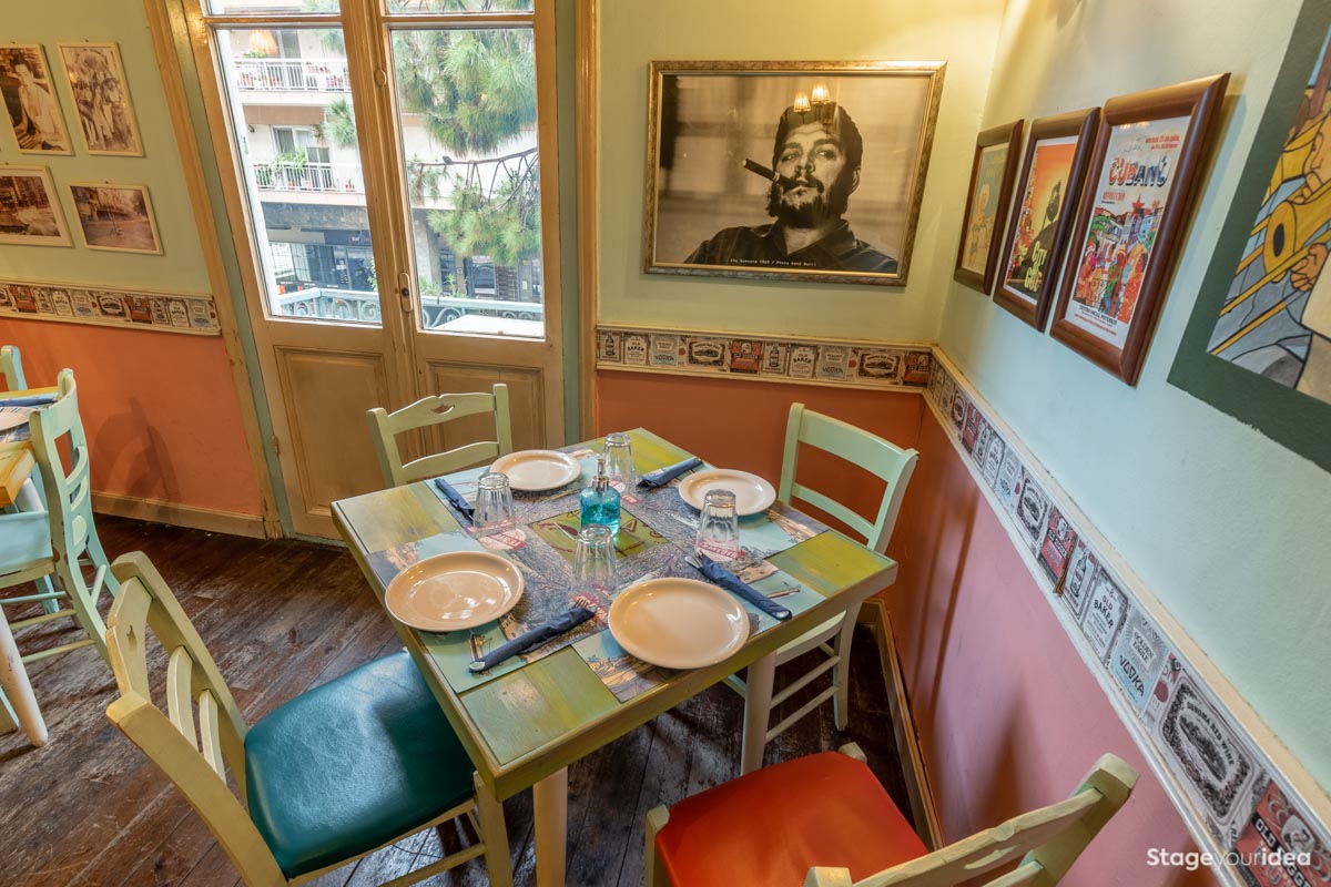 Το «Κουβανέζικο Εστιατόριο σε Νεοκλασικό Κτίριο» είναι ένα αισθητικό και γαστρονομικό απαύγασμα στοιχείων που επικρατούν στις κουλτούρες των τροπικών νήσων της Καραϊβικής καθώς και των γοητευτικών χωρών της Λατινικής Αμερικής. Η Αίθουσα είναι διάχυτη από μια εκλεκτική συλλογή έργων τέχνης και τεχνουργημάτων που λειτουργούν ως σημεία αναφοράς της συνολικής ατμόσφαιρας του χώρου και αποσκοπούν στο να περιβάλλουν την διοργάνωσή σας με τον εξωτισμό, το ταμπεραμέντο, τον ρομαντισμό και τον δυναμισμό της λατινοαμερικανικής κουλτούρας. Η κουζίνα μας και τα κοκτέιλ μας είναι εμπνευσμένα από αυτές τις κουλτούρες και τελειοποιούν αυτό το «οδοιπορικό» γεύσεων και αισθήσεων που προσφέρουμε ως εμπειρία.