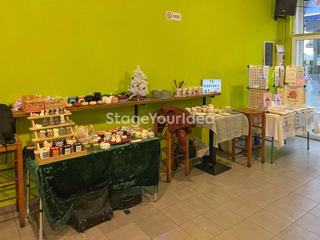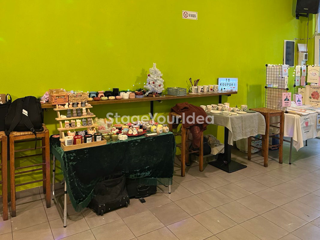 Για Εκδηλώσεις & Συναντήσεις Προσφέρεται για ποικίλες δραστηριότητες. Ιδανικότερες είναι διοργανώσεις παρουσίασης / πώλησης έργων και ψυχαγωγίας (διοργάνωση πάρτυ γενεθλίων, αποφοίτηση, παιδικό πάρτυ, φεστιβάλ κλπ).
