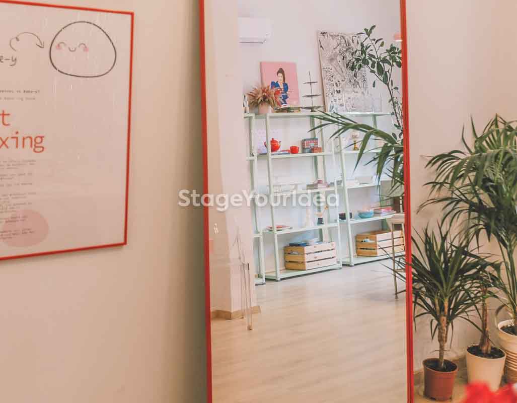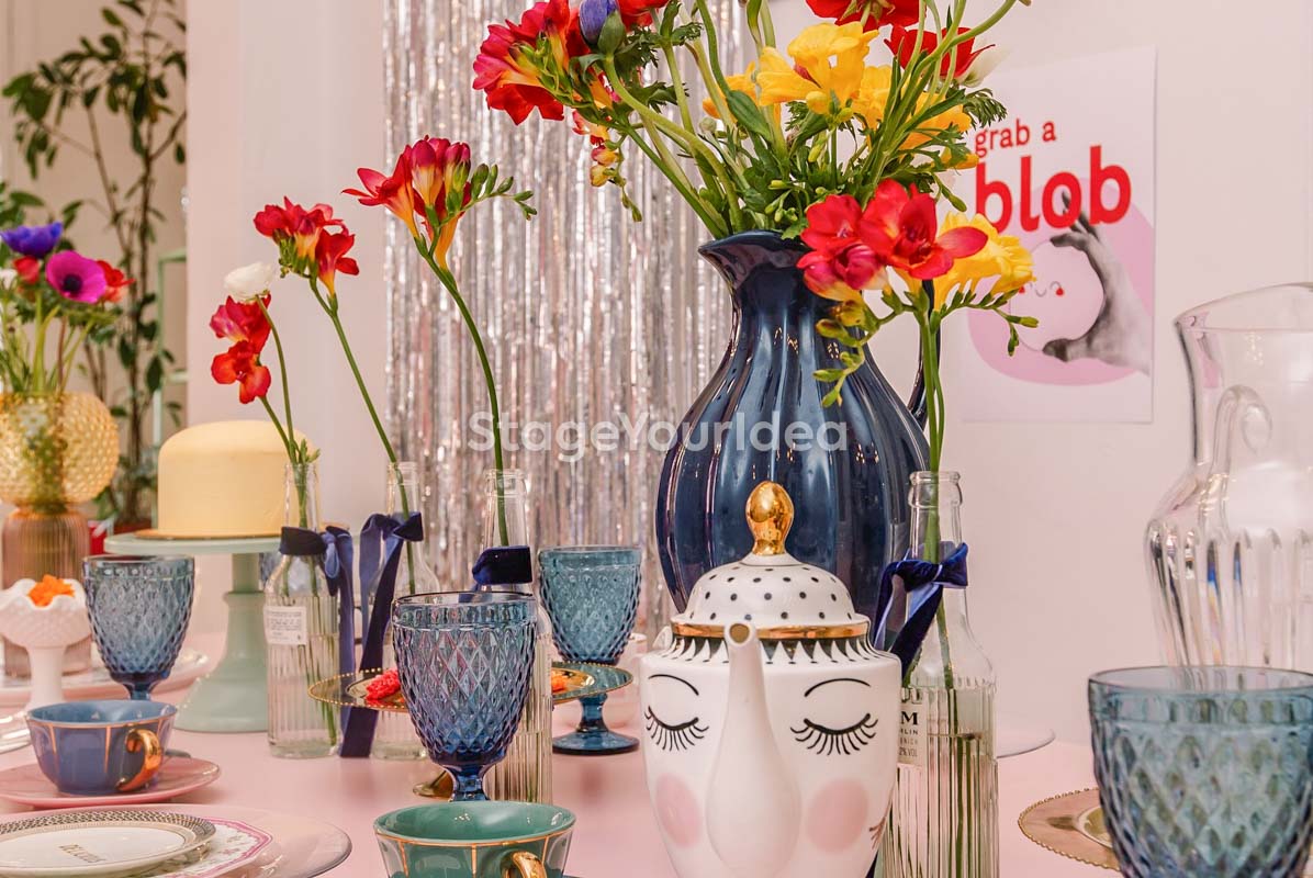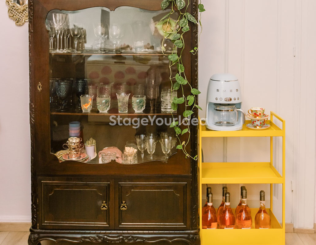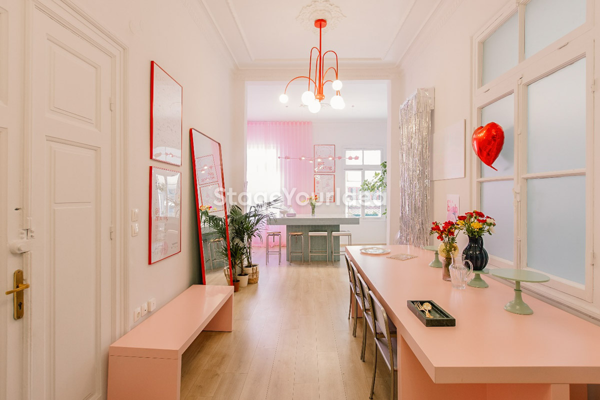 Η αίθουσα «Events Studio με Girly Διάθεση» χαρακτηρίζεται από μια μεταμοντέρνα, εκλεκτικιστική και ρομαντική διάθεση με μια παστέλ girly παλέτα και pop art πινελιές. Η vintage βιτρίνα είναι μια ιδιαίτερη γωνιά του χώρου με συναισθηματική αξία. Εκεί η γιαγιά φύλαγε το καλό της σερβίτσιο που το έβγαζε μόνο στα τραπέζια και στο κάτω ντουλάπι συνήθως έκρυβε γλυκά και κουραμπιέδες. Τώρα έχει πάρει ζωή και χρησιμοποιείται καθημερινά για τις ανάγκες των διοργανωτών και των καλεσμένων σας.
