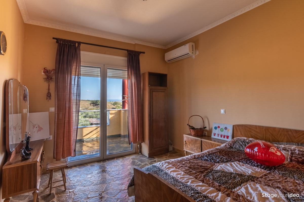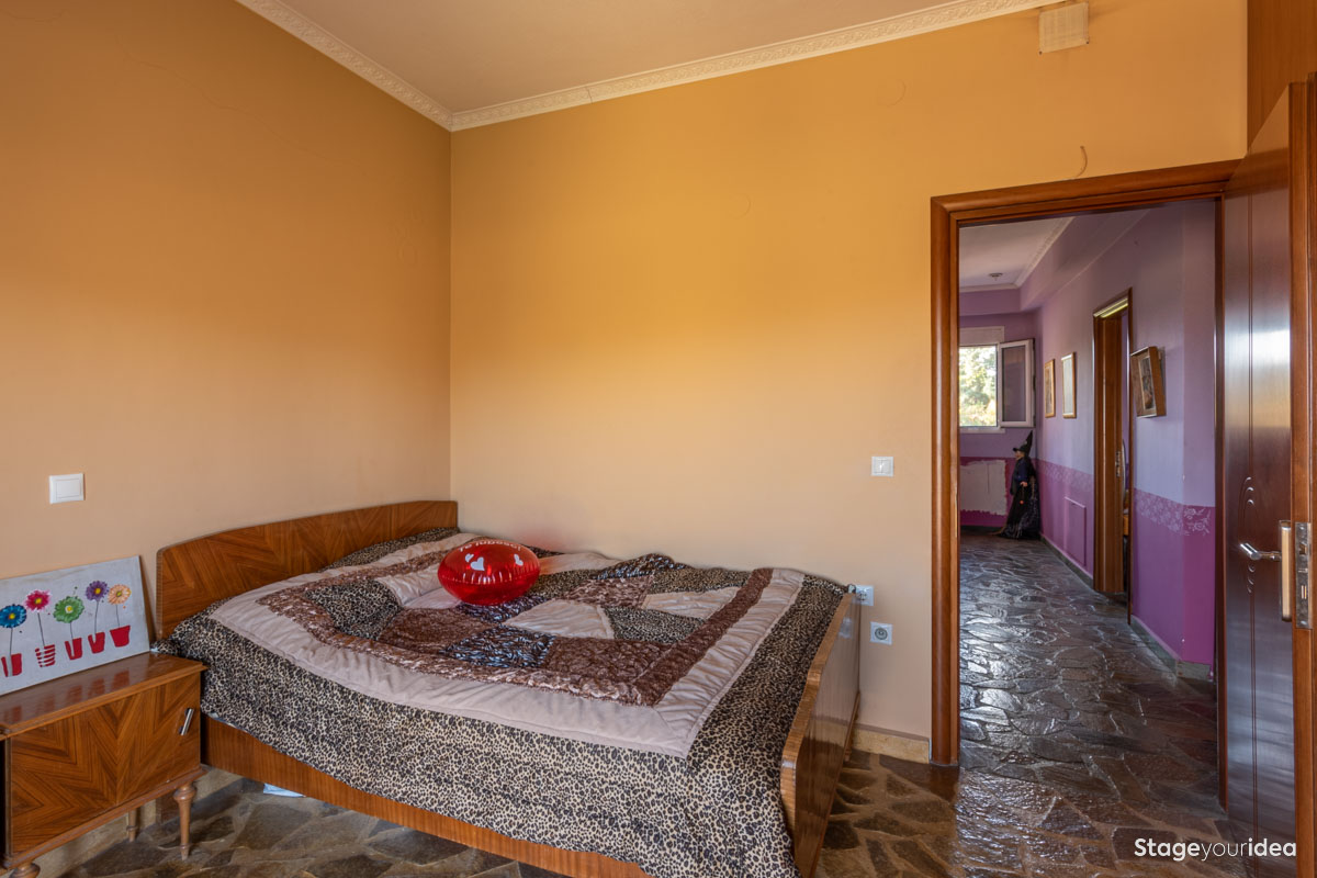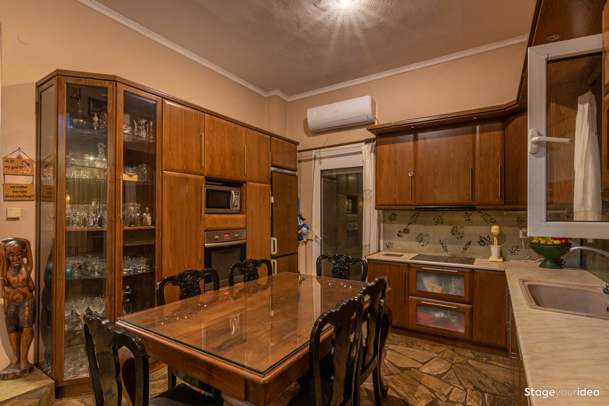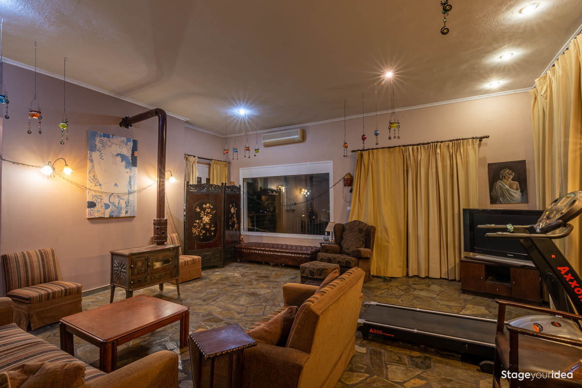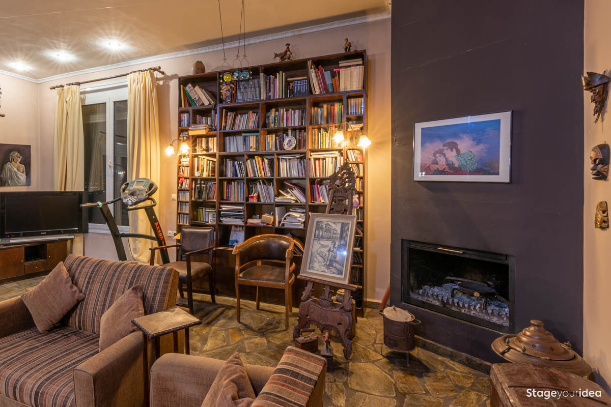 Από την αναγεννησιακή έκφραση της θηλυκότητας, στην συντροφικότητα του Γιώργου Σταθόπουλου και την μητρότητα του Gustav Klimt, η «Εξοχική Οικία με Νοσταλγική Ατμόσφαιρα» βρίθει καλλιτεχνικών στιγμάτων και ορόσημων του συμβολικού, και υπερρεαλιστικού κινήματος με κοινή συνισταμένη τον ρομαντισμό, την υπερβατικότητα και την περιπετειώδη ατμόσφαιρα της αναζήτησης. Το πλακόστρωτο δάπεδο με πέτρα, το ξύλο που αγκαλιάζει και περιβάλλει με ζεστασιά τον χώρο, η ζεστή χρωματική παλέτα με αποχρώσεις του καφέ, οι λείες βελούδινες και δερμάτινες υφές των επίπλων, οι ρετρό νοσταλγικές πινελιές της ξυλόσομπας, του ενδόξου πικάπ, τα εξωτικά τοτέμ, η «δραστήρια» βιβλιοθήκη, η γωνιά του τζακιού, τα ανατολίτικα φωτιστικά, το ασιατικό παραβάν, τα μεγάλα ανοιχτά παράθυρα με θέα που σε συνεπαίρνει και η αρχοντική ευρύχωρη κουζίνα δεν μπορούν παρά να εξάψουν την επιθυμία σου να βιώσεις την εμπειρία που απλόχερα σου προσφέρεται.