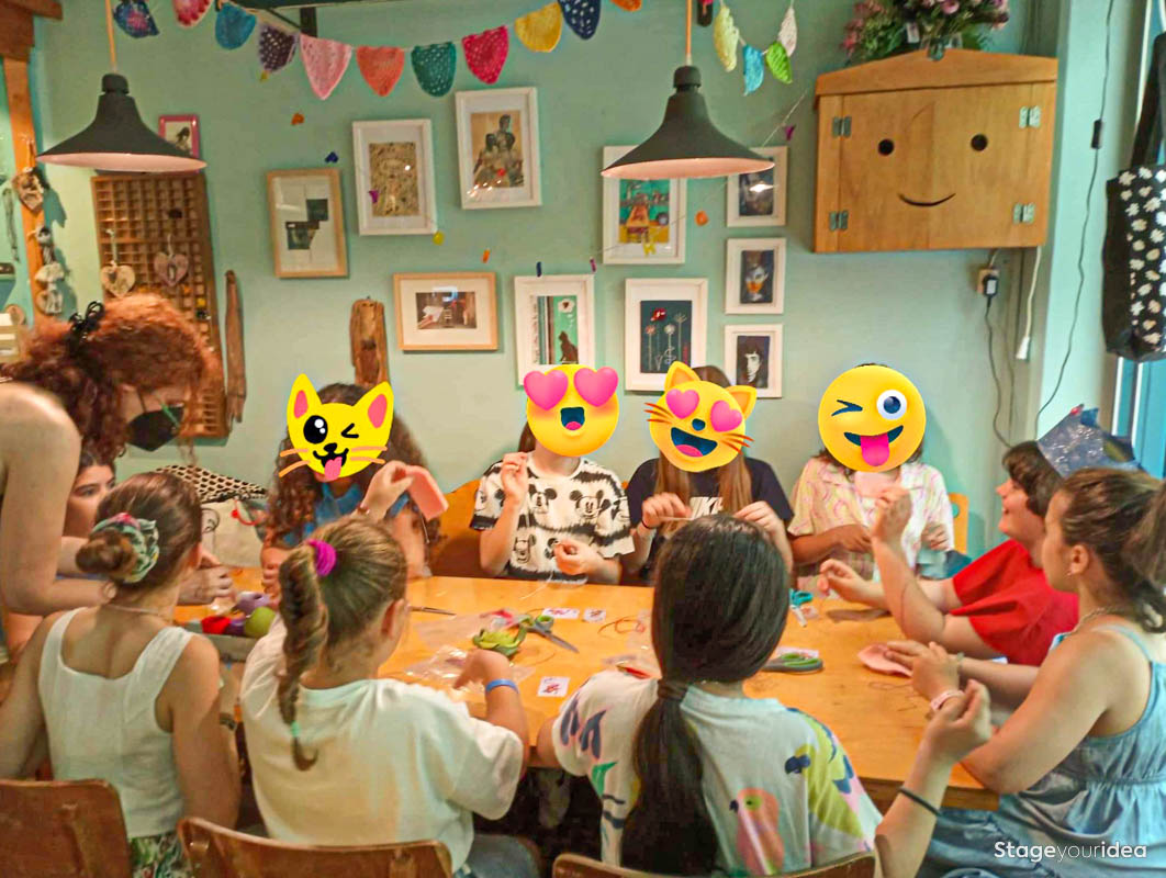 Επιπρόσθετα πέρα από τη φιλοξενία μπορούμε, εάν το επιθυμείτε, να αναλάβουμε να παρέχουμε υπηρεσίες δημιουργικής απασχόλησης είτε αυτόνομα ως κάποιο workshop για μια ομάδα ή στο πλαίσιο ενός εορτασμού (π.χ. παιδικό ή bachelor πάρτυ. Ακολουθούν ενδεικτικά πακέτα χρέωσης για παιδικά πάρτυ.