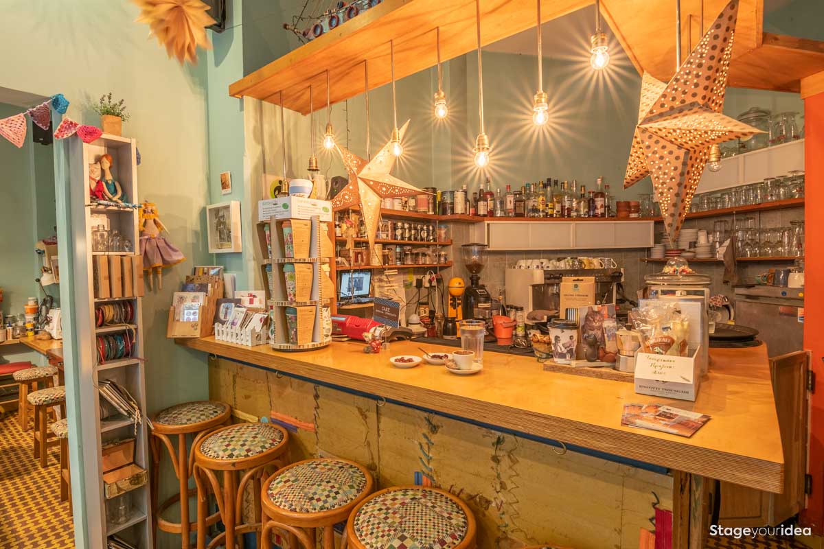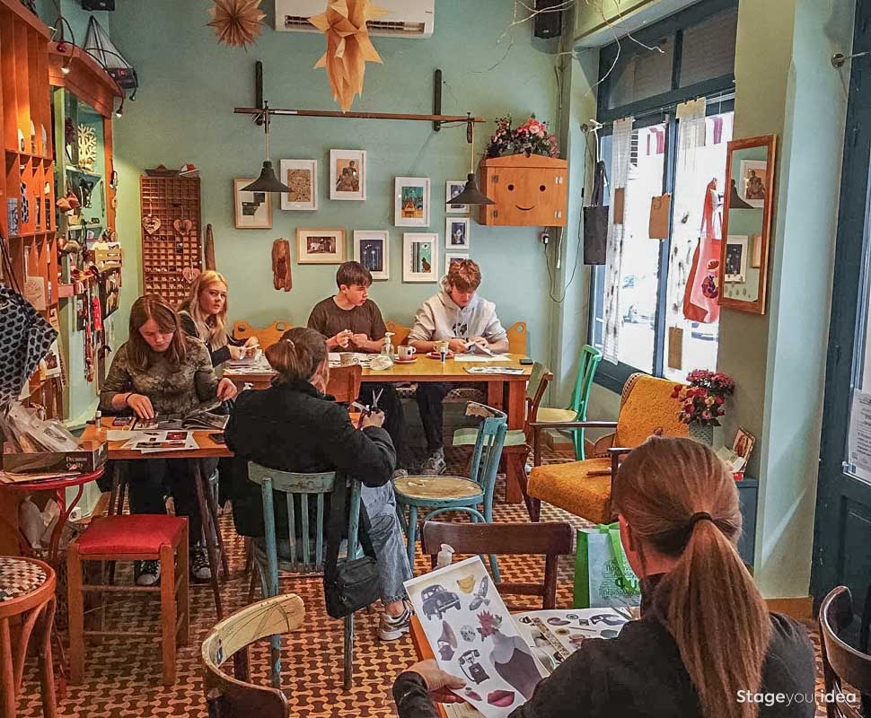 Για Παραγωγές Το «Δημιουργικό Καφέ και Εργαστήριο Χειροτεχνιών» σφύζει από φαντασία και δημιουργική έκφραση. Είναι μια κοιτίδα ιδεών, αισθητικής και τέχνης διακοσμημένο με έργα διαφόρων δημιουργών, όμορφα αντικείμενα και προϊόντα προς εξερεύνηση και διάθεση. Έχει προβληθεί στο παρελθόν και σχολιαστεί τόσο από ελληνικά όσο και διεθνή μέσα ενημέρωσης, χάριν της πρωτοτυπίας του. Έχοντας συνεργαστεί με διοργανωτές παραγωγούς κατά καιρούς και γνωρίζοντας τις ιδιαιτερότητες της δουλειάς, σας καλούμε να συνθέσουμε μαζί νέες εικόνες για το κοινό σας.
