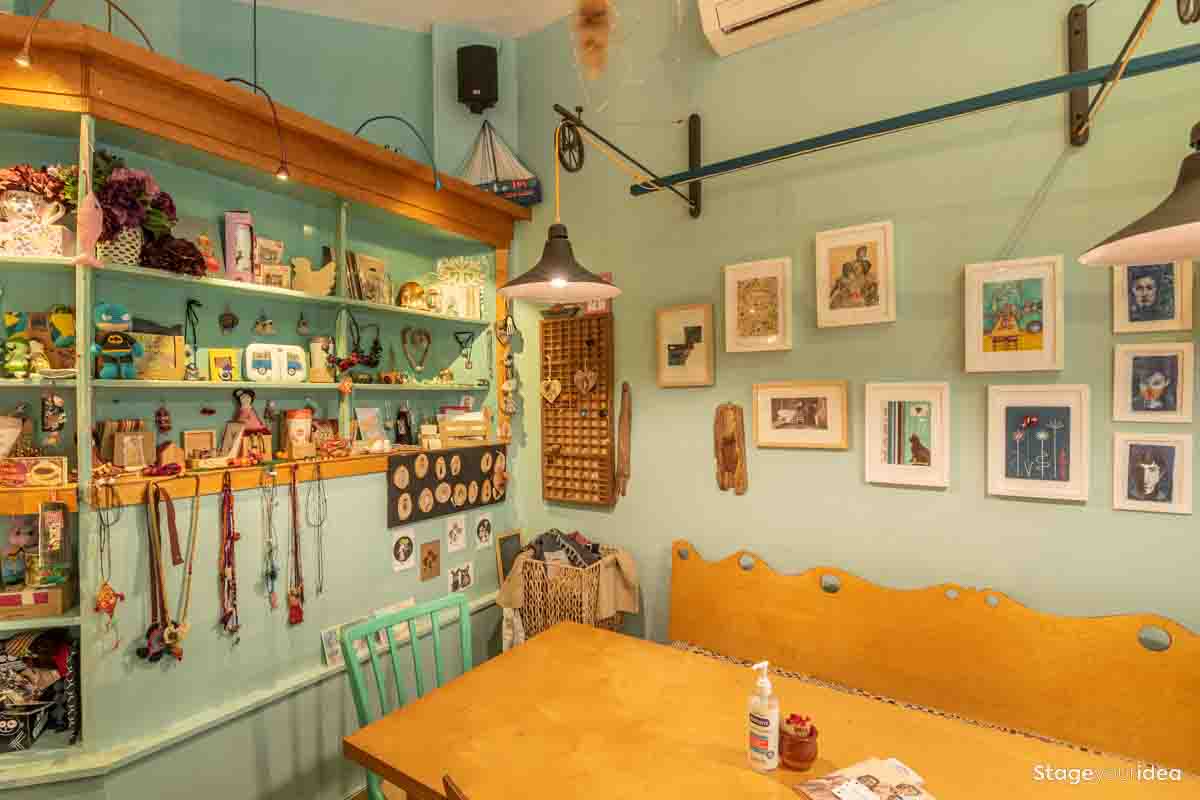 Το «Δημιουργικό Καφέ και Εργαστήριο Χειροτεχνιών», είναι μια δημιουργική κυψέλη, ένα δραστήριο εργαστήριο, ένας τόπος συνάντησης και χαλάρωσης, μια διαρκής πηγή έμπνευσης που σε παρακινεί να συμμετάσχεις και να δημιουργήσεις κάτι δικό σου ή απλώς να απολαύσεις τα έργα άλλων ανθρώπων παρέα με ένα γευστικό καφέ ή ένα αρωματικό τσάι. Κάθε τι χειροποίητο έχει την ευκαιρία να αποκτήσει τον δικό του ζωτικό χώρο εντός της αίθουσας, συνθέτοντας ένα πρωτότυπο κολάζ που αντανακλά τη διασταύρωση προσωπικοτήτων, αισθητικών, ιδεών και στυλ.