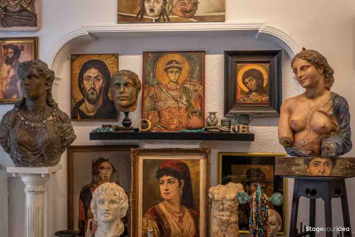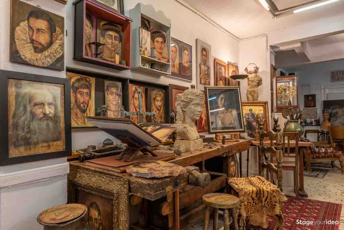 Η «Αίθουσα Τέχνης - Μουσείο» αναπαριστά το εργαστήριο ενός ζωγράφου - γλύπτη, με μεσαιωνική ατμόσφαιρα, ανοικτό προς το κοινό και αποτελείται από διάφορες θεματικές ενότητες (πχ. αρχαιολογική γωνιά, γωνιά Λεονάρντο Ντα Βίντσι, φιλελληνική γωνιά κλπ) πρεσβεύοντας το μπαρόκ και την κλασική ακαδημαϊκή τέχνη.