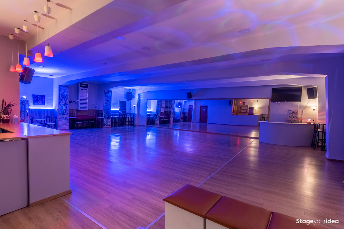 2. Το ηχοσύστημα είναι επαγγελματικών προδιαγραφών, με ενισχυτές. Υπάρχει κατάλληλος εξοπλισμός για DJ (κονσόλα, μικρόφωνο - το οποίο μπορεί να χρησιμοποιηθεί και για δραστηριότητες με καραόκε) και τηλεόραση