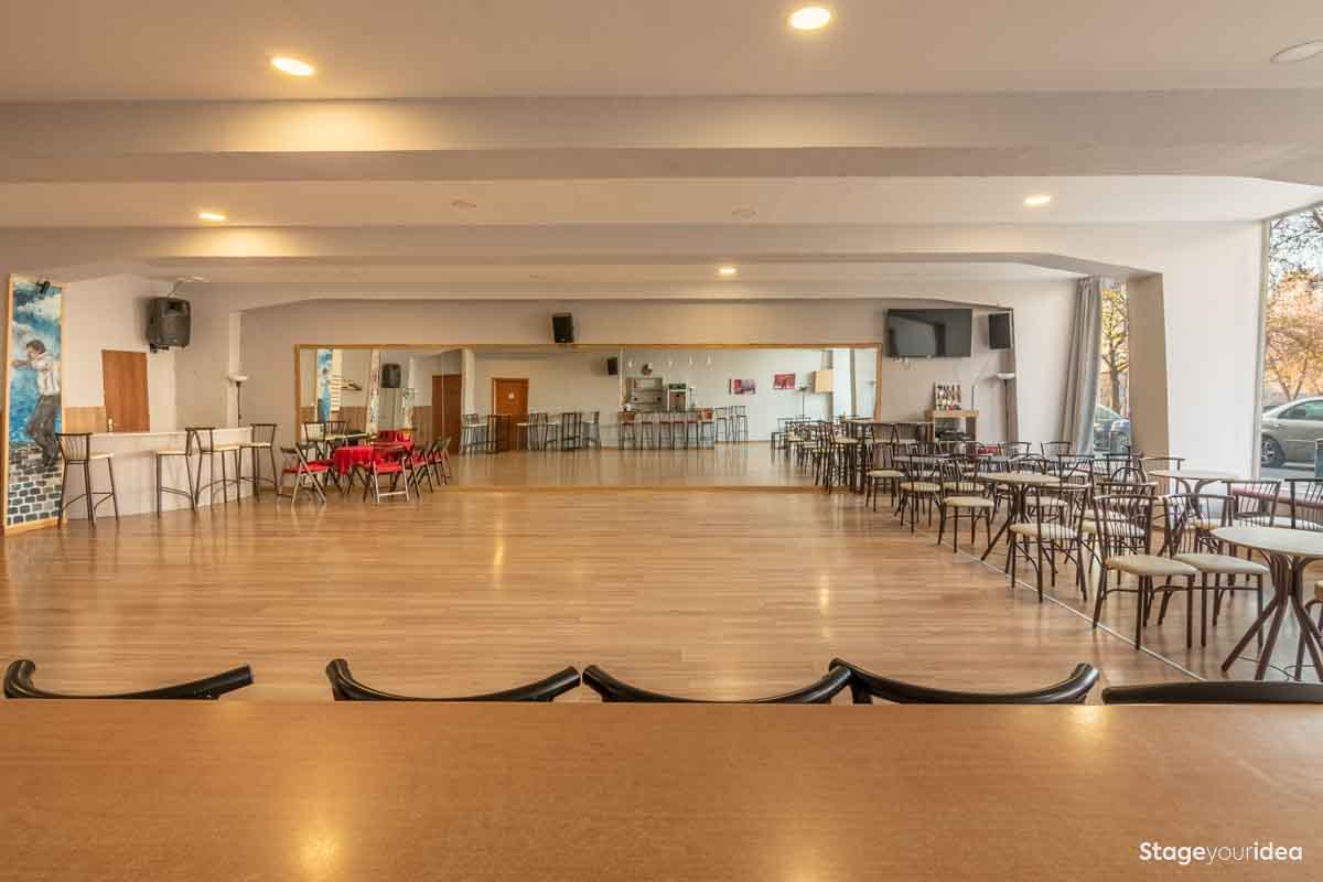 Για Εκδηλώσεις & Συναντήσεις Διατίθεται για κάθε τύπου εταιρική εκδήλωση (έχει χρησιμοποιηθεί για διοργανώσεις συλλόγων tango), για ειδικές περιστάσεις (π.χ. παραστάσεις και ρεσιτάλ τα οποία ευνοούνται από την διάταξη καθήμενων σε στυλ U και σε στυλ καμπαρέ καθώς προσφέρουν ανεμπόδιστη οπτική επαφή από και προς την σκηνή δράσης), για πάρτυ (ιδανικά για live tango, συναυλίες, φεστιβάλ, πάρτυ αποφοιτήσεων, γενέθλια και παιδικά πάρτυ) καθώς και ομαδικές συναντήσεις - συγκεντρώσεις (οντισιόν, συνεντεύξεις), εργαστήρια (μπορεί να συν-διοργανωθεί εργαστήρι παροχής πρώτων βοηθειών για τμήματα γυμναστικής ή προπόνησης και γιόγκας), τμήματα χορού (και εδώ μπορεί να γίνει συν-διοργάνωση για εκμάθηση παραδοσιακών χορών, π.χ. ζεϊμπεκικο).