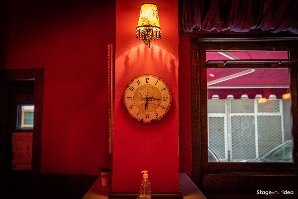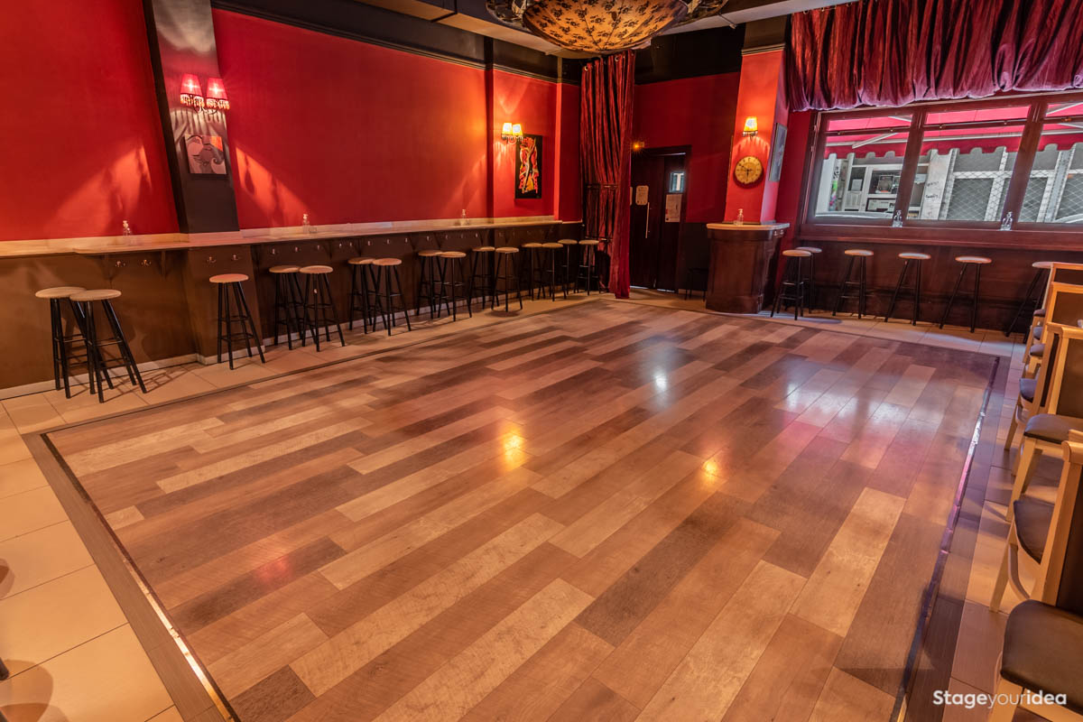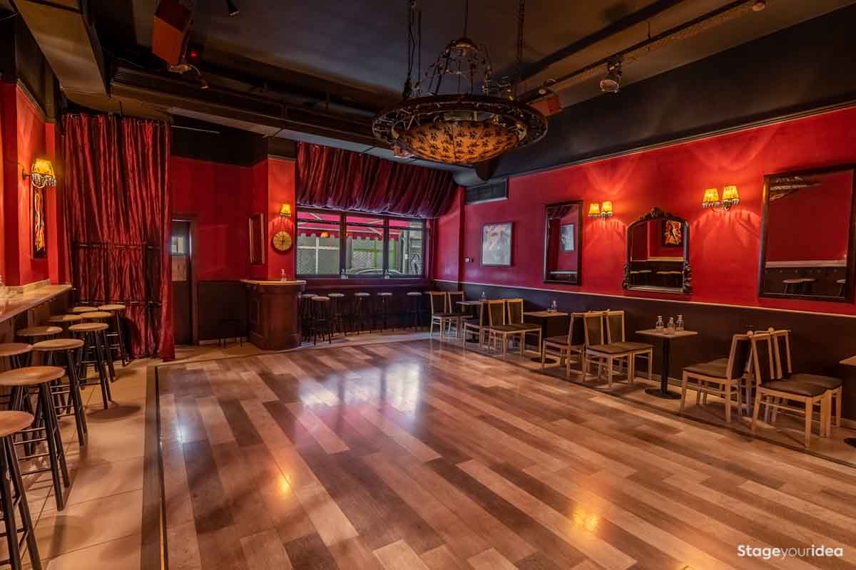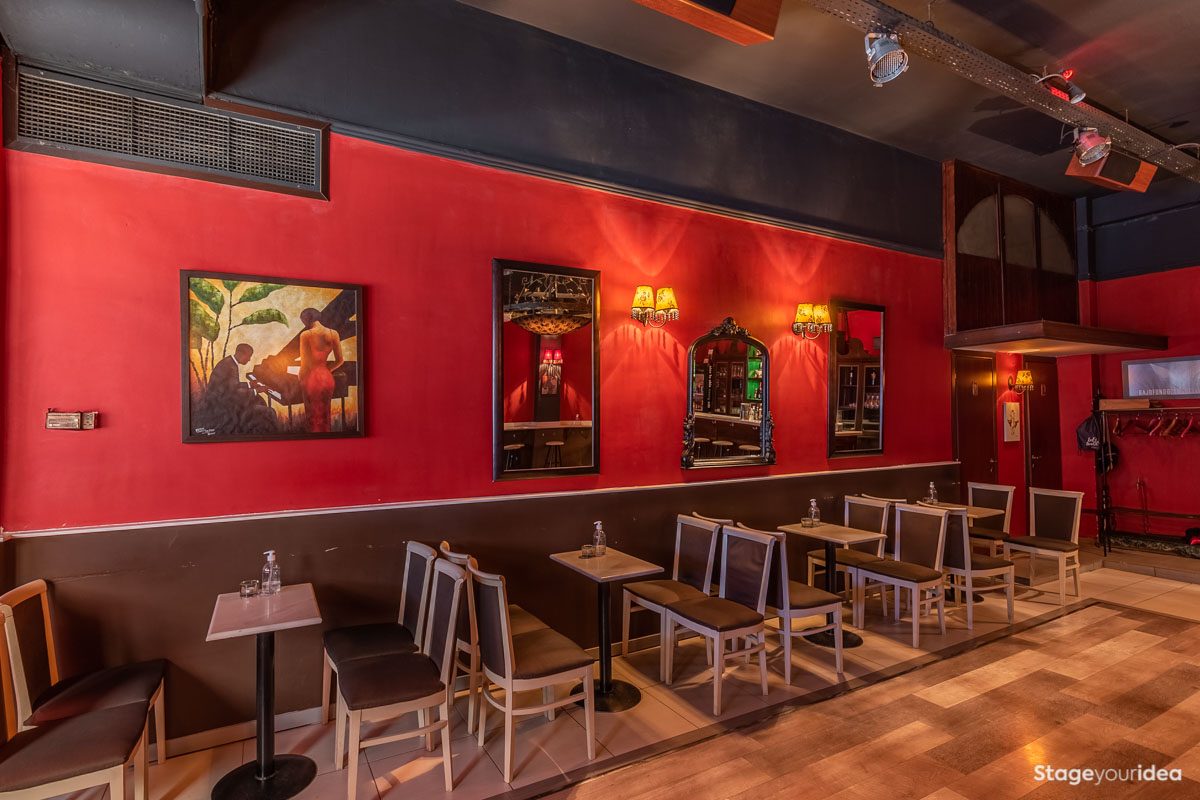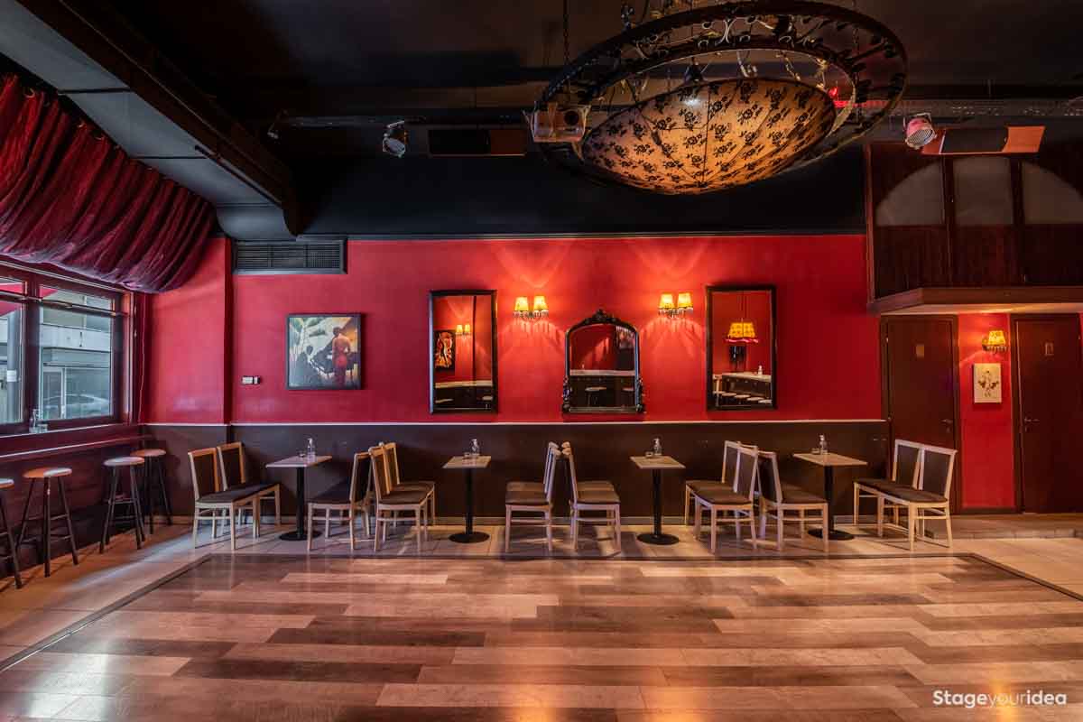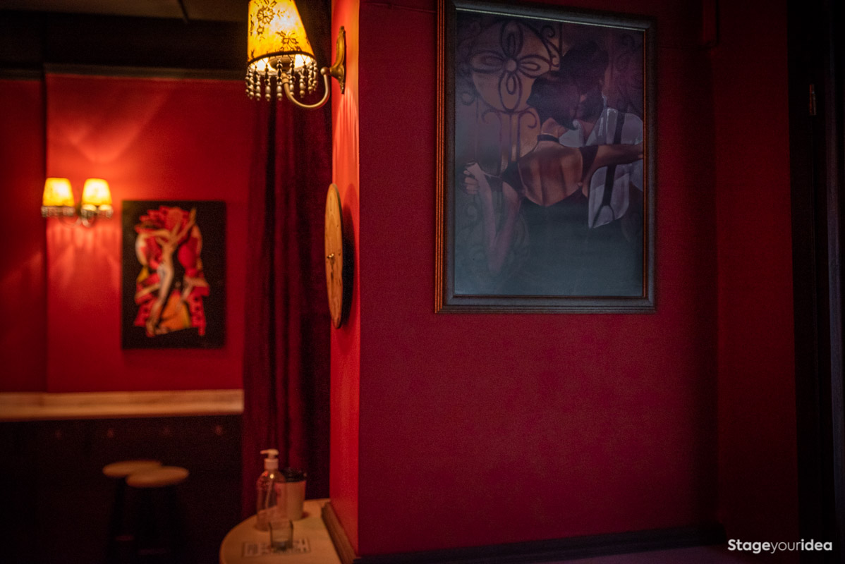 Η αισθητική της αίθουσας αναβιώνει την παριζιάνικη Belle Époque με ιδιαίτερη κατεύθυνση προς το αισθητικό στυλ της Art Nouveau. Το ξύλινο δάπεδο χορού βρίσκεται στο επίκεντρο της αίθουσας, προσκαλώντας και προκαλώντας τους παρευρισκόμενους να μεταβούν στην κύρια και κεντρική δράση της διοργάνωσης. Τα καθίσματα πλαισιώνουν με ξεκάθαρο γεωμετρικό τρόπο σε σχήμα «Π» το οριοθετημένο δάπεδο χορού - επιτρέποντας την ανεμπόδιστη θέα όλων των προσκεκλημένων σας προς τη πίστα, οι μεγάλοι αρχοντικοί καθρέπτες κοσμούν μεγαλοπρεπώς τους τοίχους, ο πίνακας με τον πιανίστα και την μοιραία γυναίκα φανερώνουν την ρομαντική ταυτότητα της αίθουσας, οι χρωματισμοί είναι έντονοι, σε αποχρώσεις του μπορντό και του μωβ συμβολίζοντας τον δυναμισμό, την πολυτέλεια και το πάθος και ο φωτισμός ενισχύει έτι παραπάνω τον περιρρέοντα ατμοσφαιρικό αισθησιασμό.