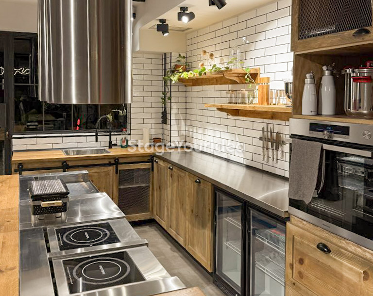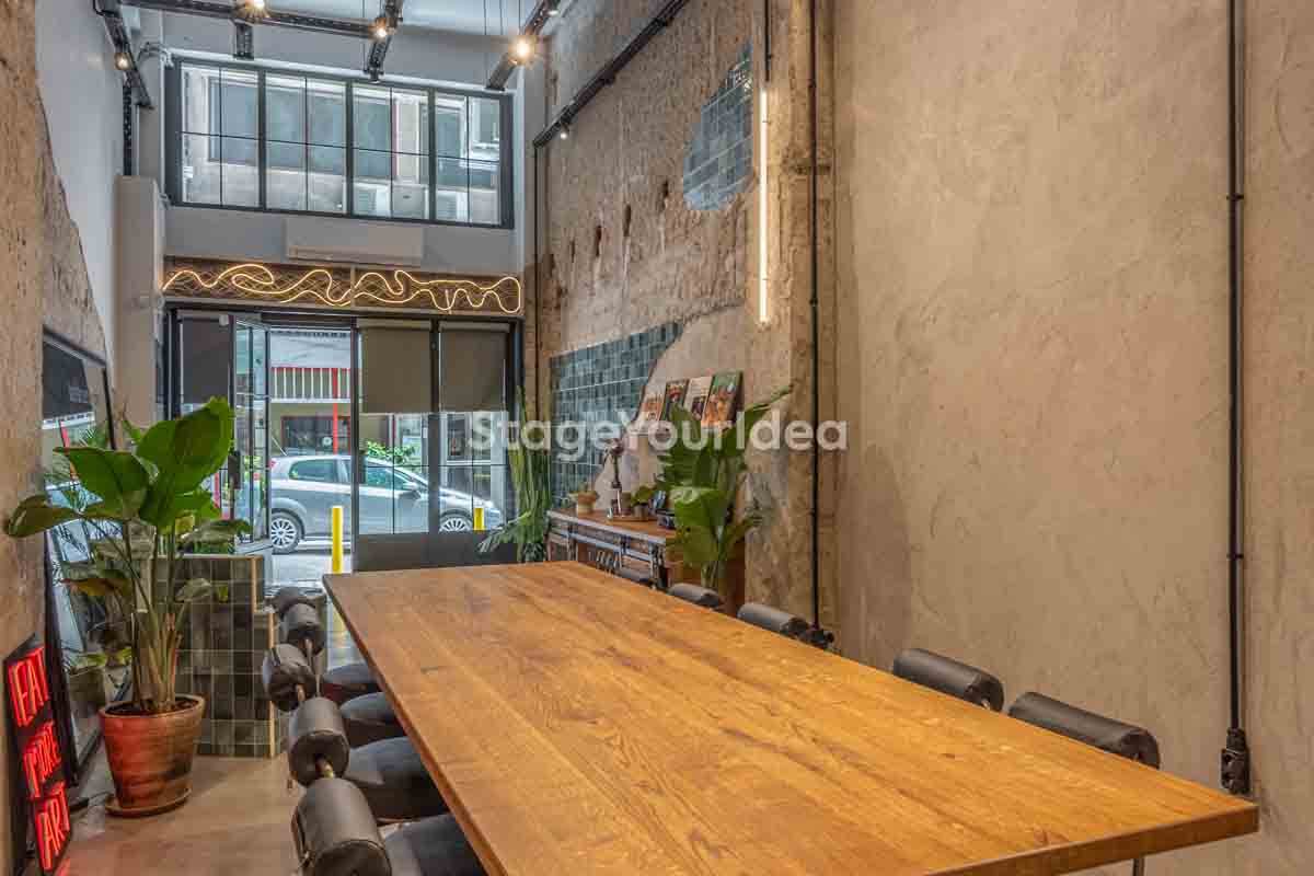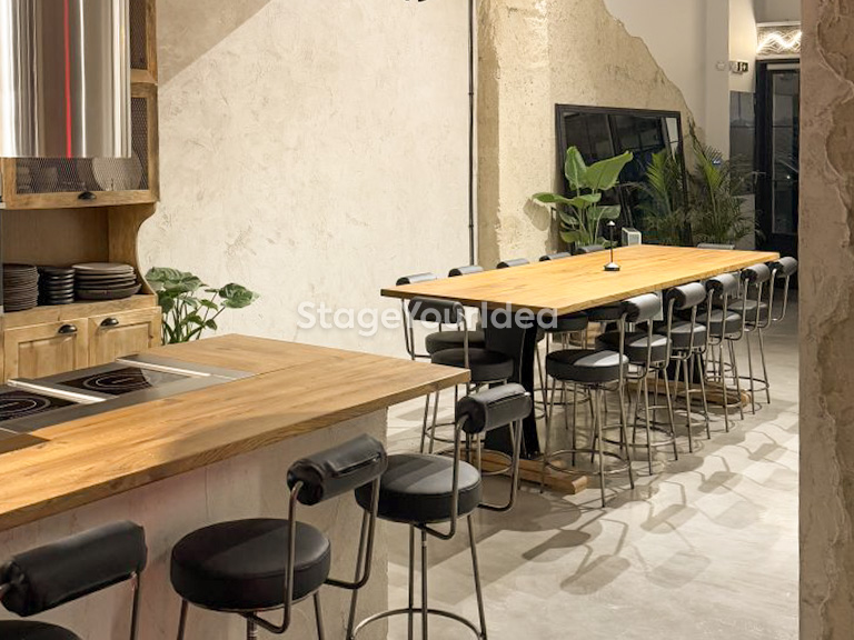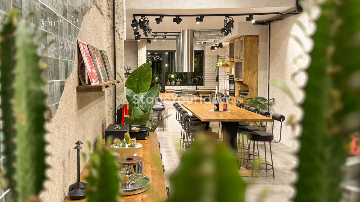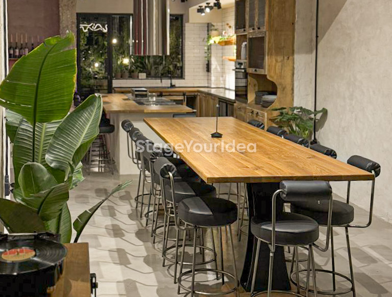 Το «Σύγχρονο Αστικό Event Studio με Εξοπλισμένη Κουζίνα» είναι μια αίθουσα με μεταμοντέρνα αισθητική, βιοφιλικά και vintage διακοσμητικά στοιχεία, και διαρρύθμιση που ευνοεί επαγγελματικές συναντήσεις, εορτασμούς και μαθήματα ή σεμινάρια μαγειρικής με θέα το αστικό τοπίο. Δεσπόζει μια πλήρως εξοπλισμένη και σύγχρονη κουζίνα, με άπλετο χώρο για.. συλλογική δημιουργική δράση!
