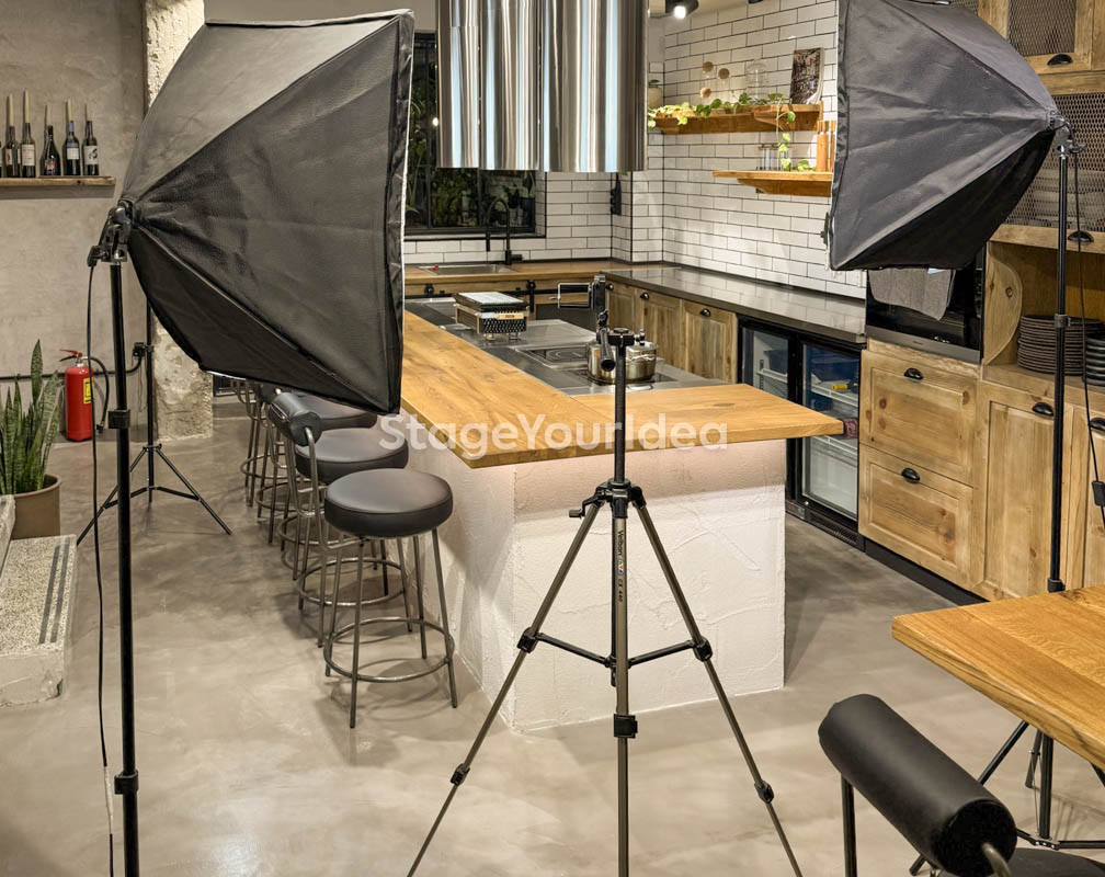 Για Παραγωγές: Το «Σύγχρονο Αστικό Event Studio με Εξοπλισμένη Κουζίνα» χαίρει ζεστής αποδοχής από τους διοργανωτές - δημιουργούς περιεχομένου καθώς προσφέρει τα απαραίτητα εργαλεία για την ανάδειξη της τέχνης της μαγειρικής, αλλά και της οικογενειακής εστίας. Εξοπλισμένο με σημειακό, κατά τόπους έντονο φωτισμό, δυνατότητα συσκότισης (στα παράθυρα) και μια μοναδική instagrammable είσοδο όπου θα μπορούσαν να γίνουν συνεντεύξεις.