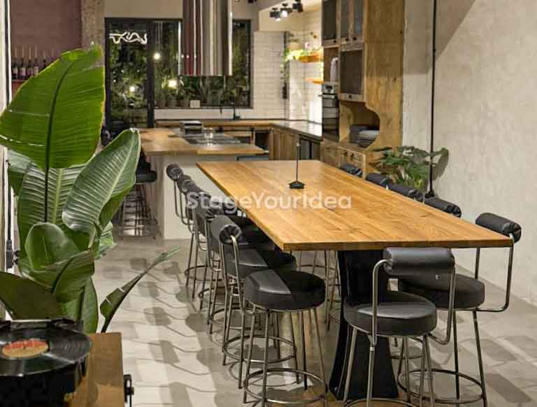 Για Εκδηλώσεις & Συναντήσεις: Η αίθουσα φιλοξενεί από εταιρικές συναντήσεις, team building events, επετείους, δεξιώσεις, πάρτυ γενεθλίων, πάρτυ αποφοιτήσεων, gender reveal / baby shower μέχρι και μαγειρικά workshops για φανταστικές γευστικές εμπειρίες. Διατίθεται ηχοσύστημα (σύνδεση μέσω Bluetooth & JACK) καθώς και πικ απ. Στον όροφο υπάρχουν 2 τουαλέτες (ανδρών, γυναικών) και η γκαρνταρόμπα (μπορείτε να τα δείτε από την εικονική περιήγηση).