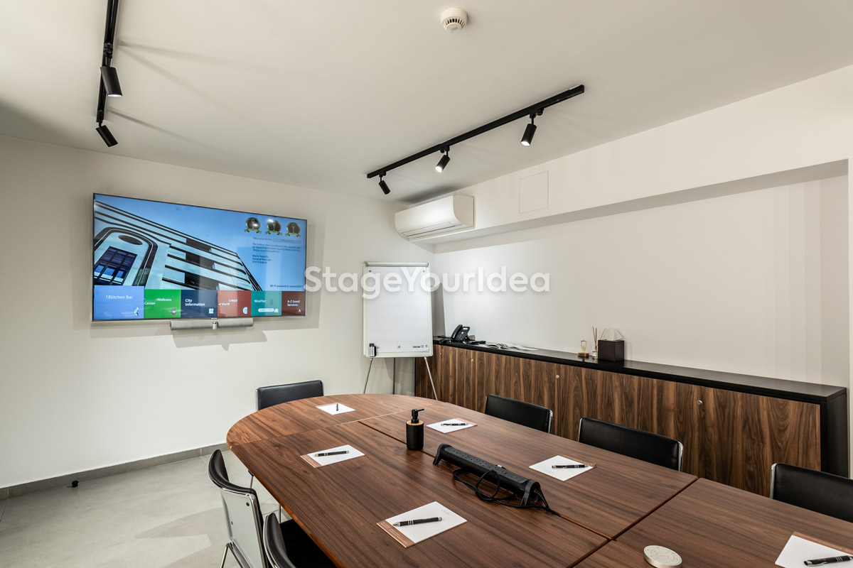H ‘Κομψή Αίθουσα Συνεδριάσεων με AV δυνατότητες’ προσφέρει ένα επαγγελματικό περιβάλλον για εταιρικές συναντήσεις, συνέδρια, υβριδικές συναντήσεις, εξετάσεις και B2B συνεδρίες. Με προηγμένη οπτικοακουστική υποστήριξη και ευέλικτη διάταξη, μπορεί να χρησιμοποιηθεί και ως ιδιωτικός χώρος εργασίας. Ιδανική επιλογή για διοργανωτές που δίνουν προτεραιότητα στον επαγγελματισμό, την ιδιωτικότητα (καθώς βρίσκεται στο υπόγειο η αίθουσα) και την άριστη εξυπηρέτηση.