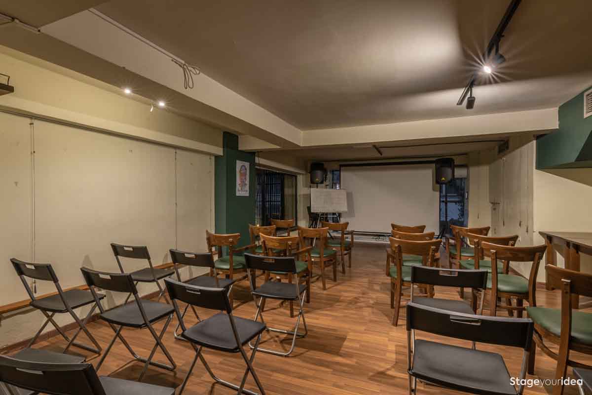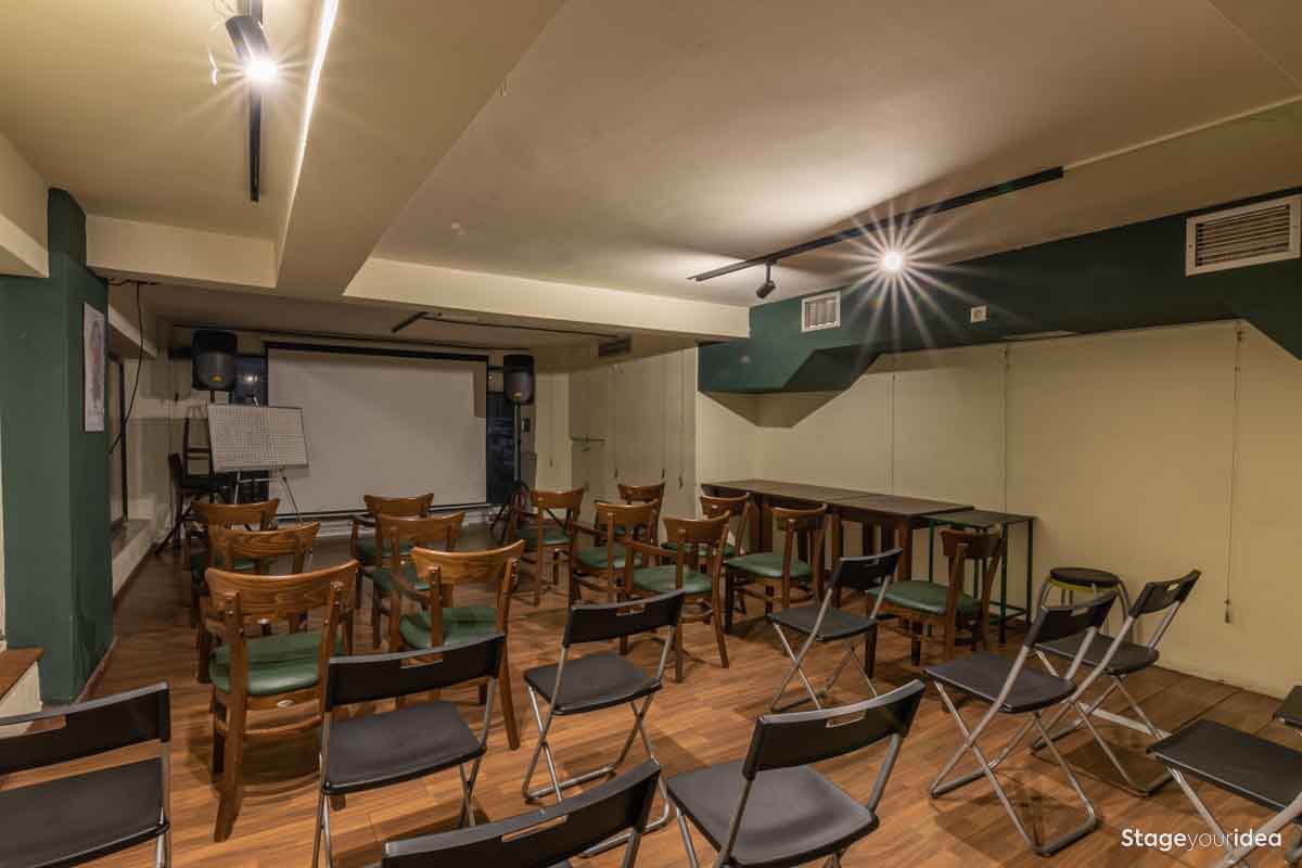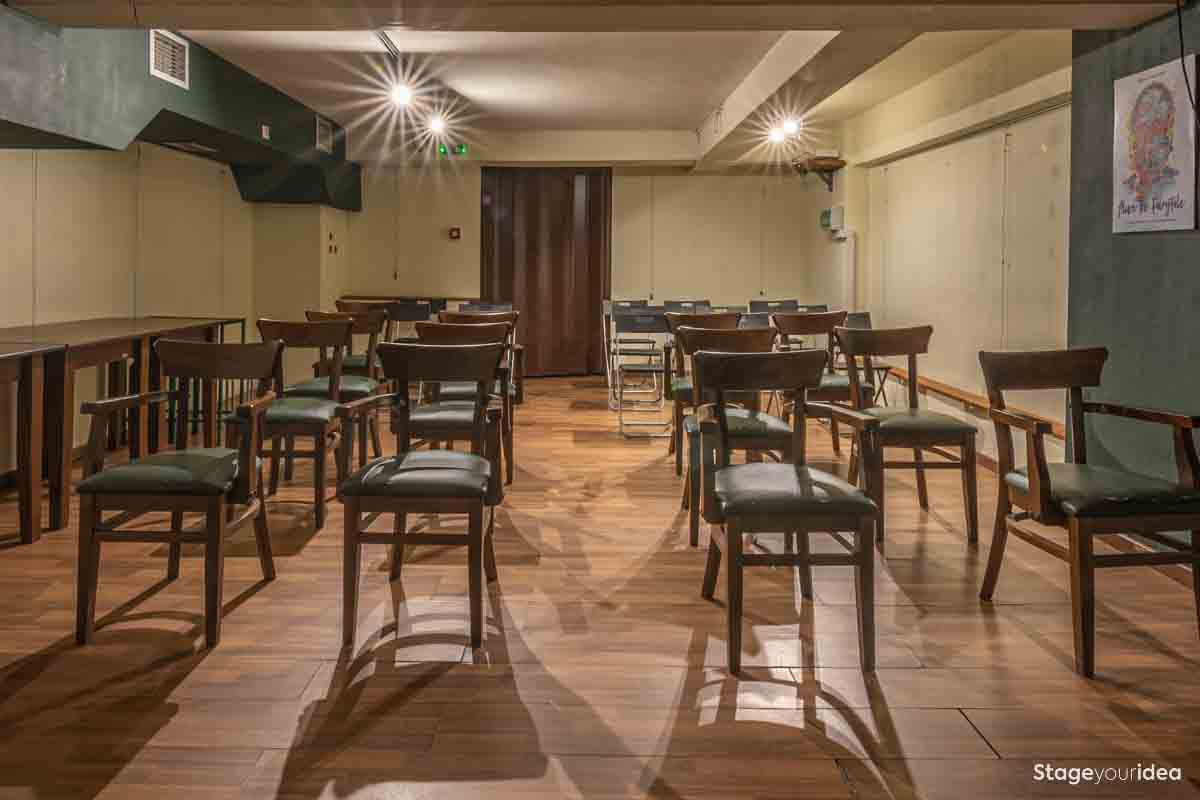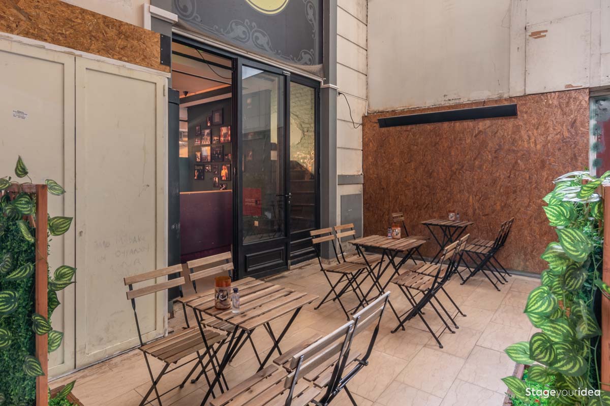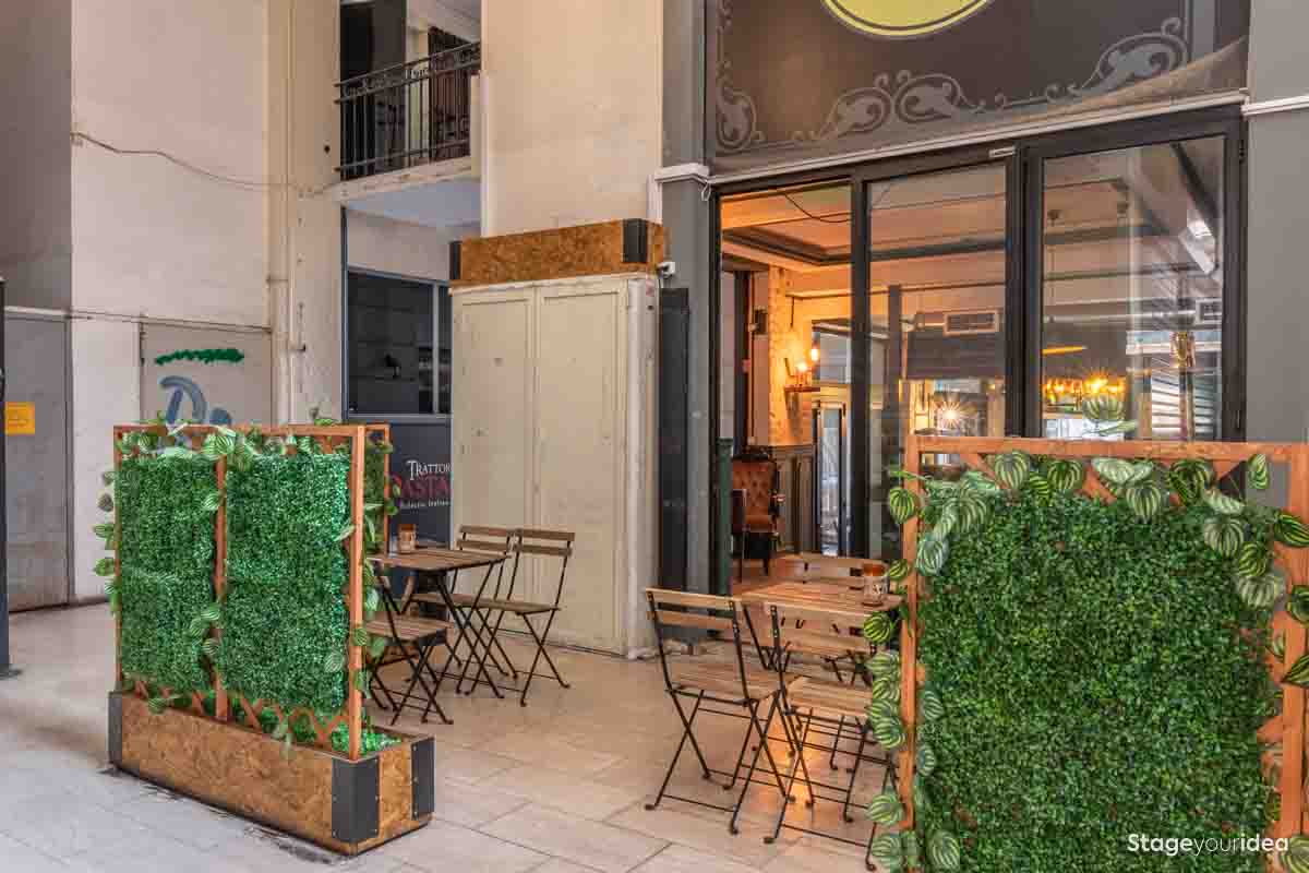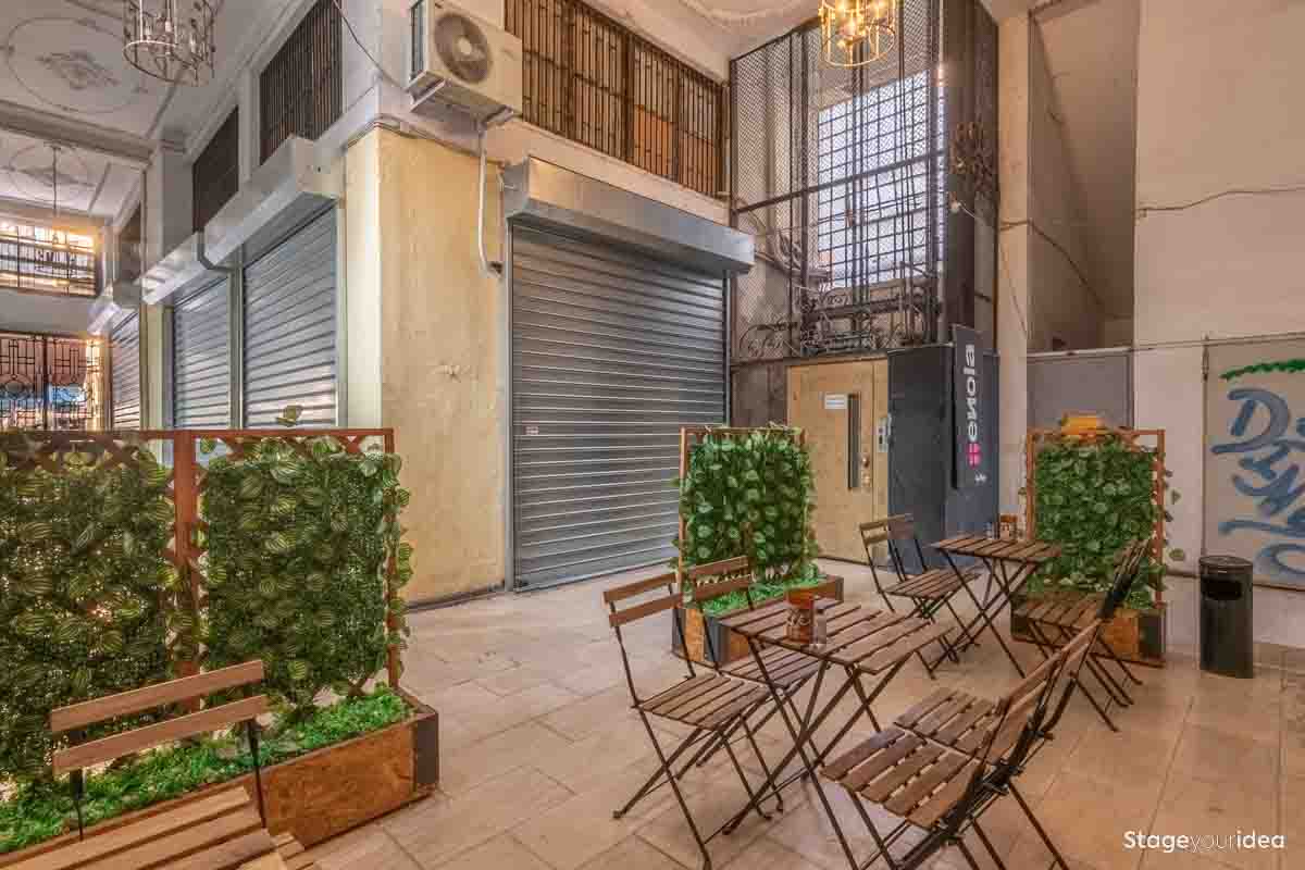 Μπορείτε να πραγματοποιήσετε και αίτημα κράτησης για Τμήμα Αίθουσας. Αυτό μπορεί να αφορά είτε το booth - υπερυψωμένο σαλονάκι είτε κάποιον από τους εξωτερικούς μας χώρους εντός της στοάς (θα επακολουθήσει συννενόηση για το ποιο τμήμα μπορεί να είναι διαθέσιμο για την ημερομηνία σας). Κάθε ένα από τα προαναφερθέντα τμήματα έχει χωρητικότητα 30 - 40 ατόμων σε όρθια διάταξη και 10 - 12 ατόμων σε διάταξη ελεύθερου στυλ.