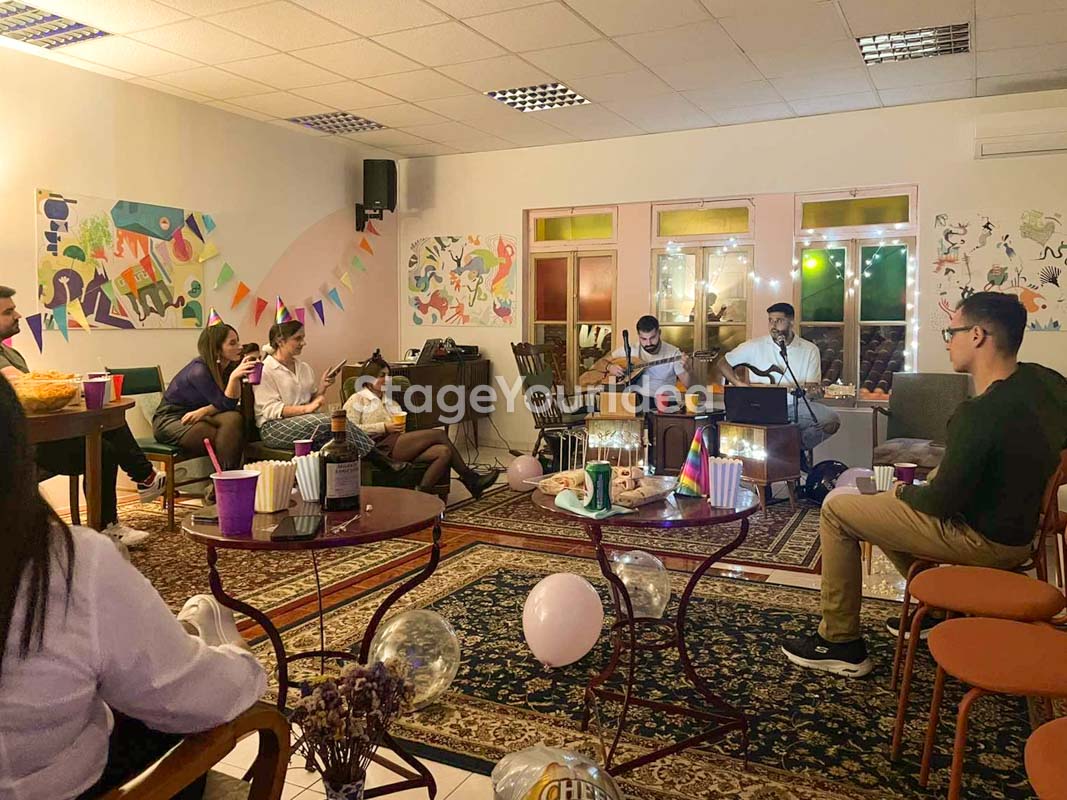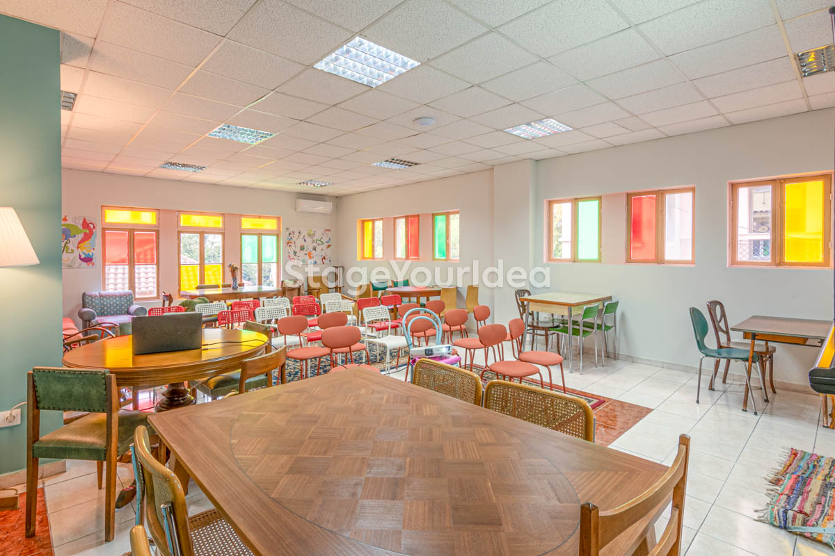 Για Εκδηλώσεις & Συναντήσεις Για τους διοργανωτές εργαστηρίων, σεμιναρίων και παρουσιάσεων θα φανούν χρήσιμα η προσαρμοστικότητα της αίθουσας (επιπλωμένη / δυνατότητα αλλαγής της διαρρύθμισης), ο παρεχόμενος εξοπλισμός για ομιλίες και παρουσιάσεις (υπολογιστής, προτζέκτορας, οθόνη προτζέκτορα), οι άνετοι καναπέδες που καλλιεργούν στους συμμετέχοντες ένα εναλλακτικό και ευχάριστο περιβάλλον. Οι διοργανωτές πιο εύθυμων δραστηριοτήτων όπως είναι τα πάρτυ θα εκτιμήσουν σίγουρα τις πολλές προσεκτικά διαμορφωμένες γωνιές για πιο cosy συζητήσεις αλλά και την δυνατότητα των παιχνιδιών.