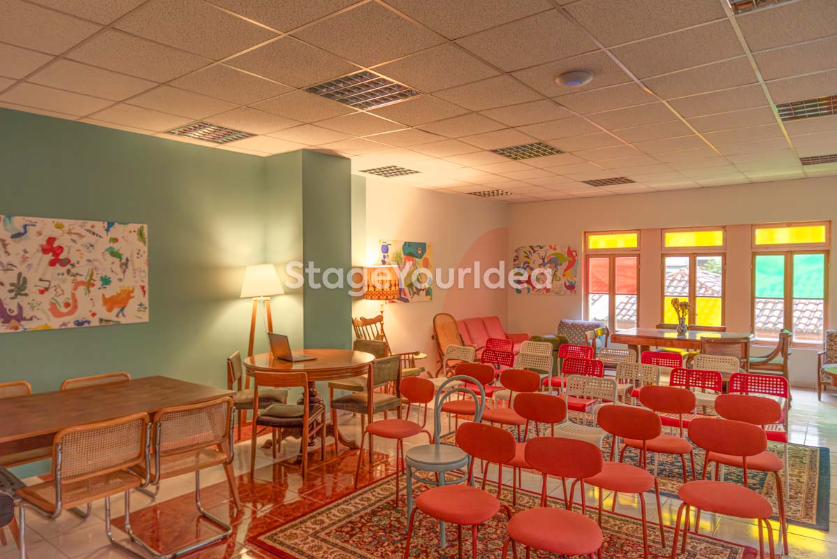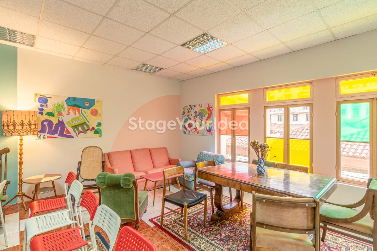 Φωτεινότητα, αισιοδοξία, απόδραση από την καθημερινότητα και περιπετειώδης διάθεση θα μπορούσαν να συνοψίσουν την αισθητική και την φιλοσοφία της αίθουσας. Ο «Χρωματιστός Ρετρό Πολυχώρος - Playroom» αποτελείται από ευρύχωρα επιμέρους δωμάτια, με ευέλικτη διαρρύθμιση, ισχυρό αισθητικό χαρακτήρα, vintage και μεταμοντέρνες πινελιές.