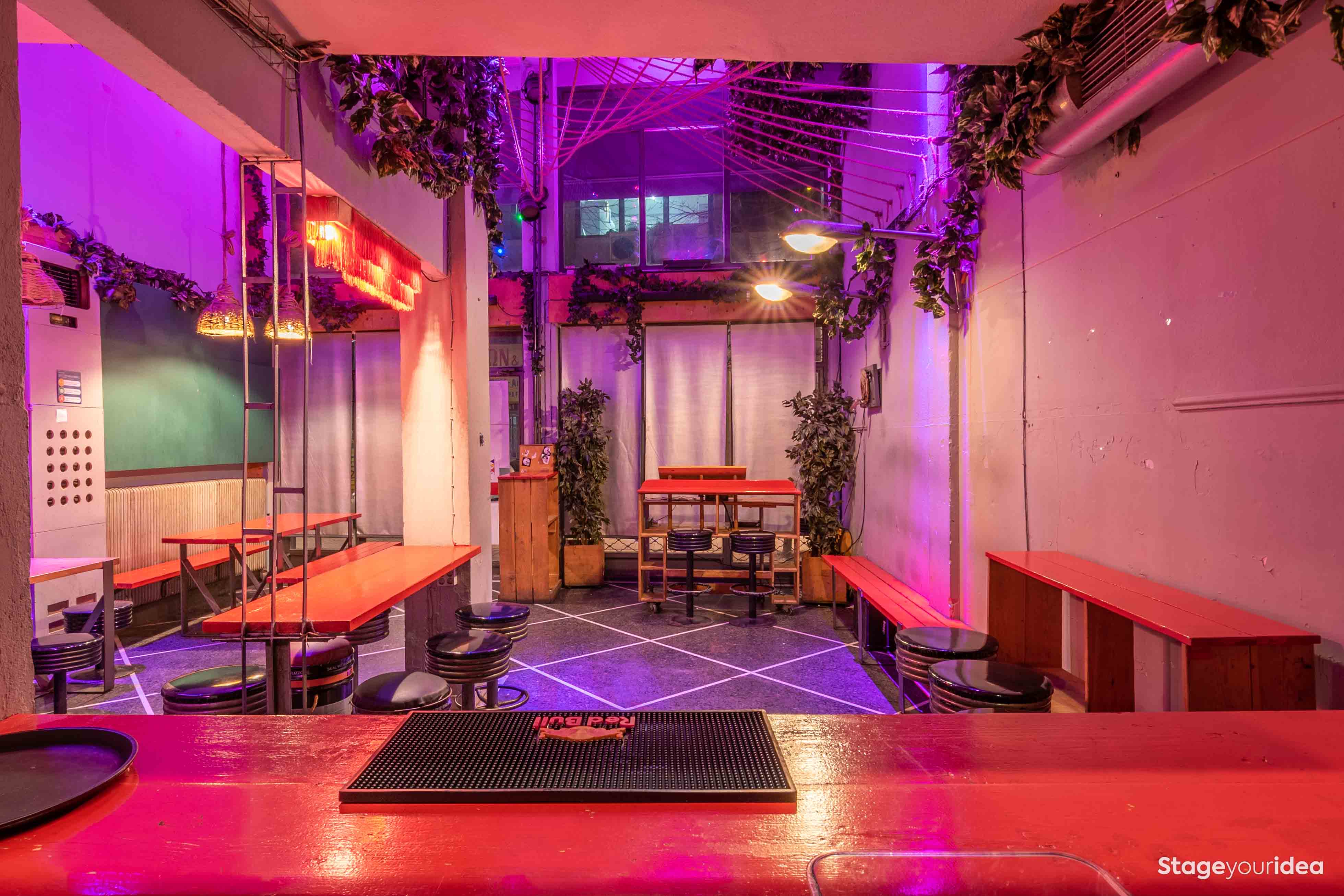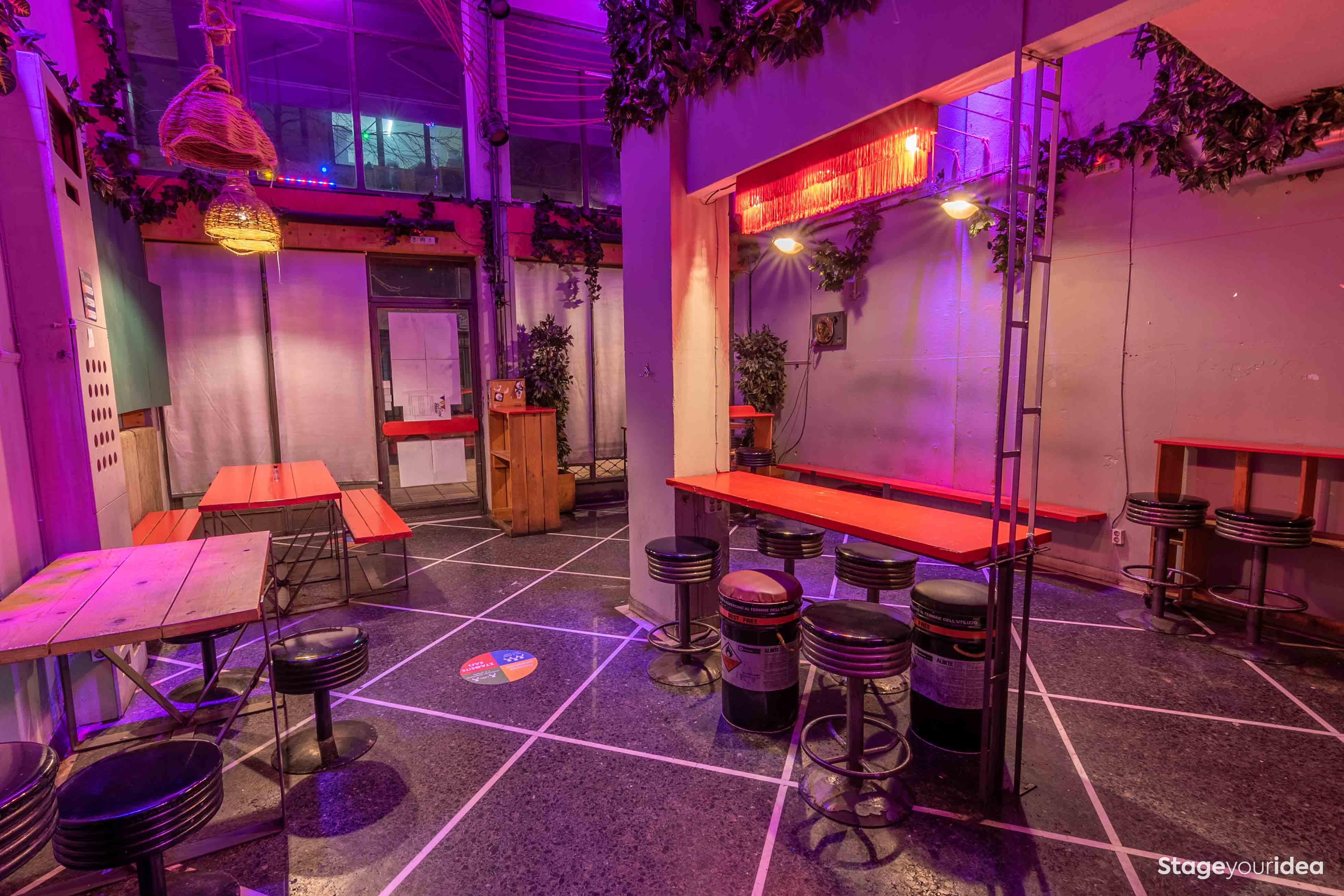 Νοσταλγία και vintage punk αισθητική είναι οι λέξεις - κλειδιά που χαρακτηρίζουν τον «Ρετρό - Φουτουριστικό Χώρο». Ο ρομαντισμός και η ατμόσφαιρα των καταλήψεων της δεκαετίας του ‘80 στην Ευρώπη αναβιώνει και συμβιώνει ανατρεπτικά με μια φουτουριστική προσέγγιση ασιατικών μπαρ της δεκαετίας του ‘50. Από εταιρικές εκδηλώσεις, underground επιδείξεις μόδας, έως μουσικές διοργανώσεις, αποφοιτήσεις και πάρτυ, ο χώρος καλύπτει ένα μεγάλο φάσμα διοργανώσεων που επιζητούν ένα σκηνικό με ισχυρή καλλιτεχνική ταυτότητα και avant-garde ατμόσφαιρα.