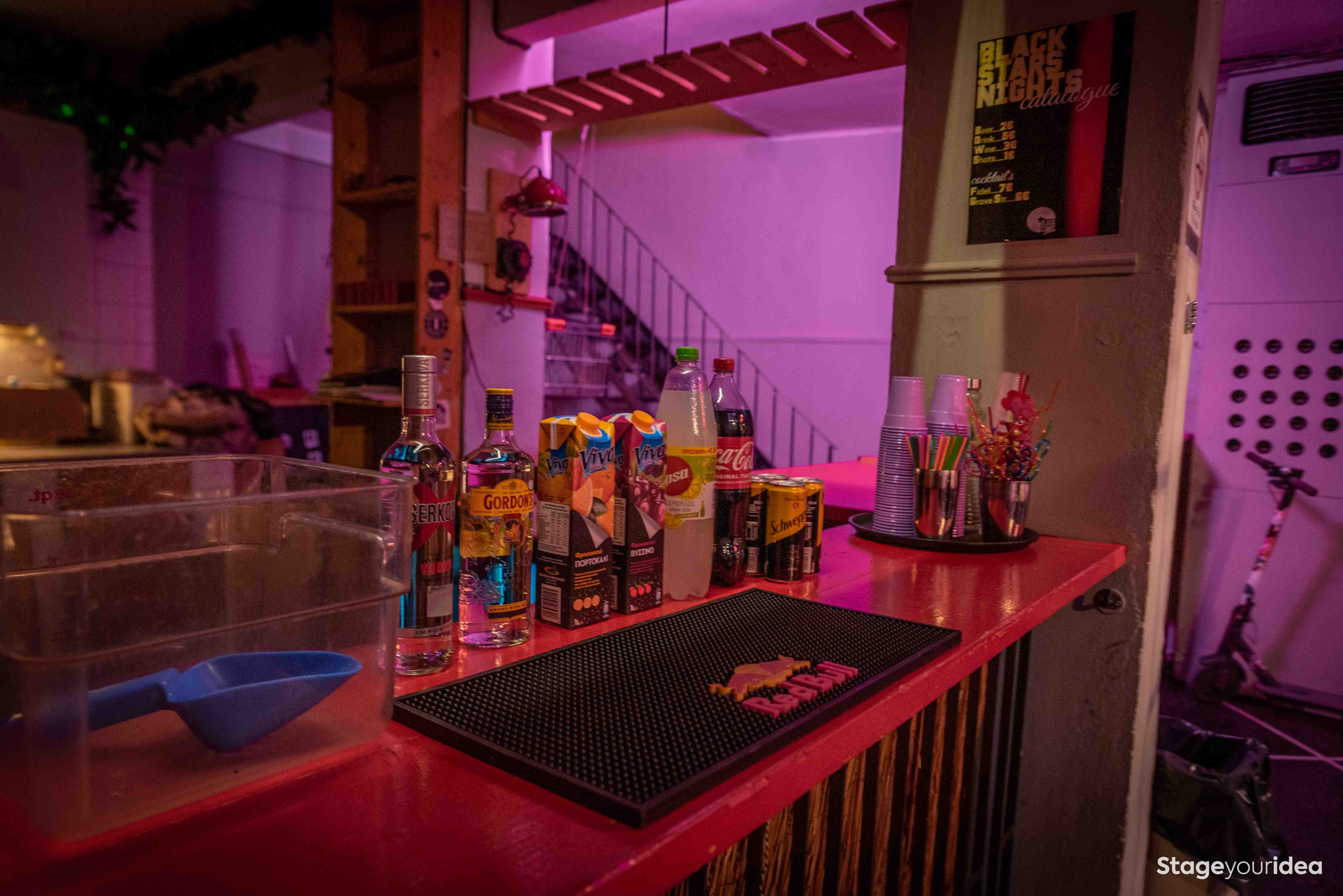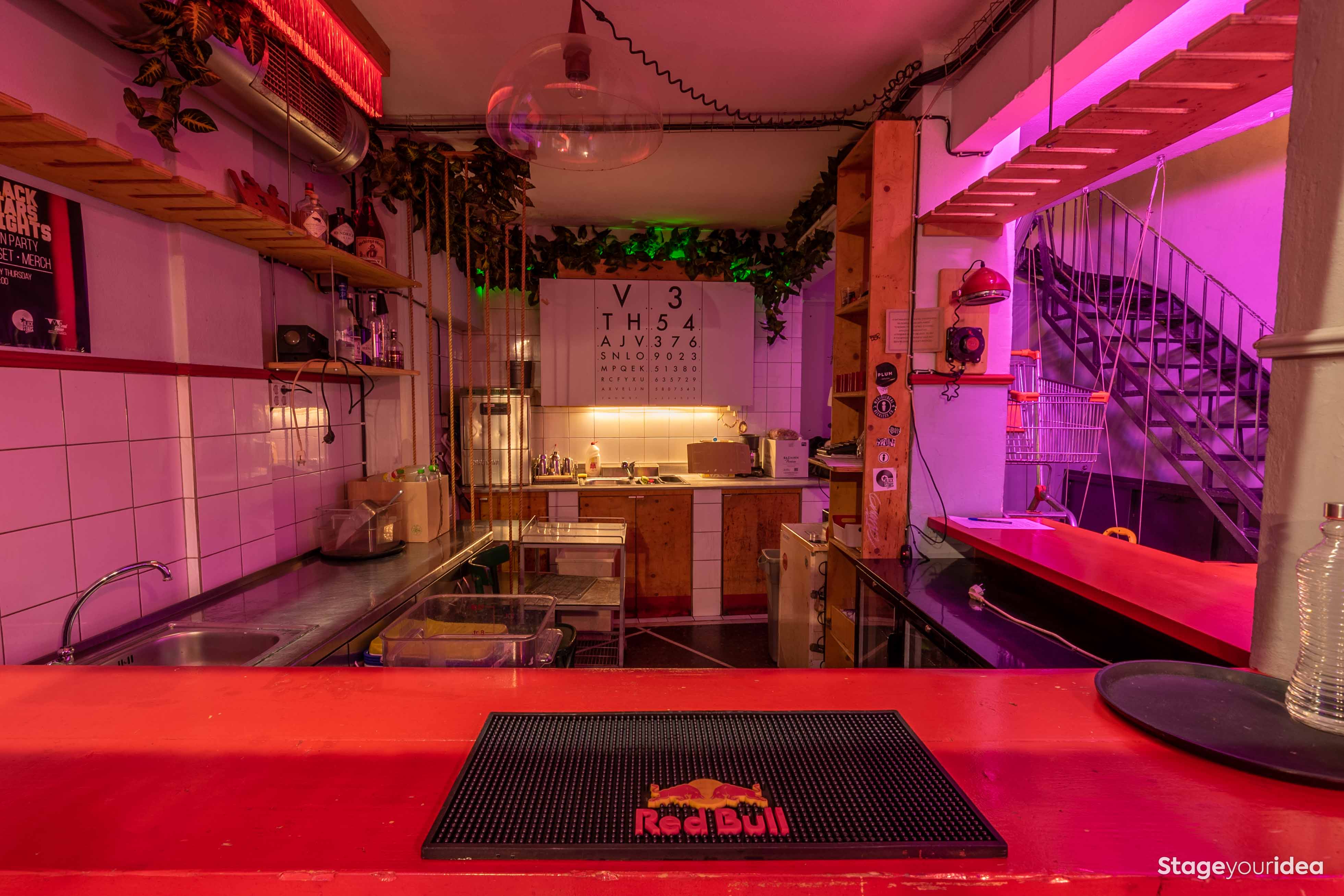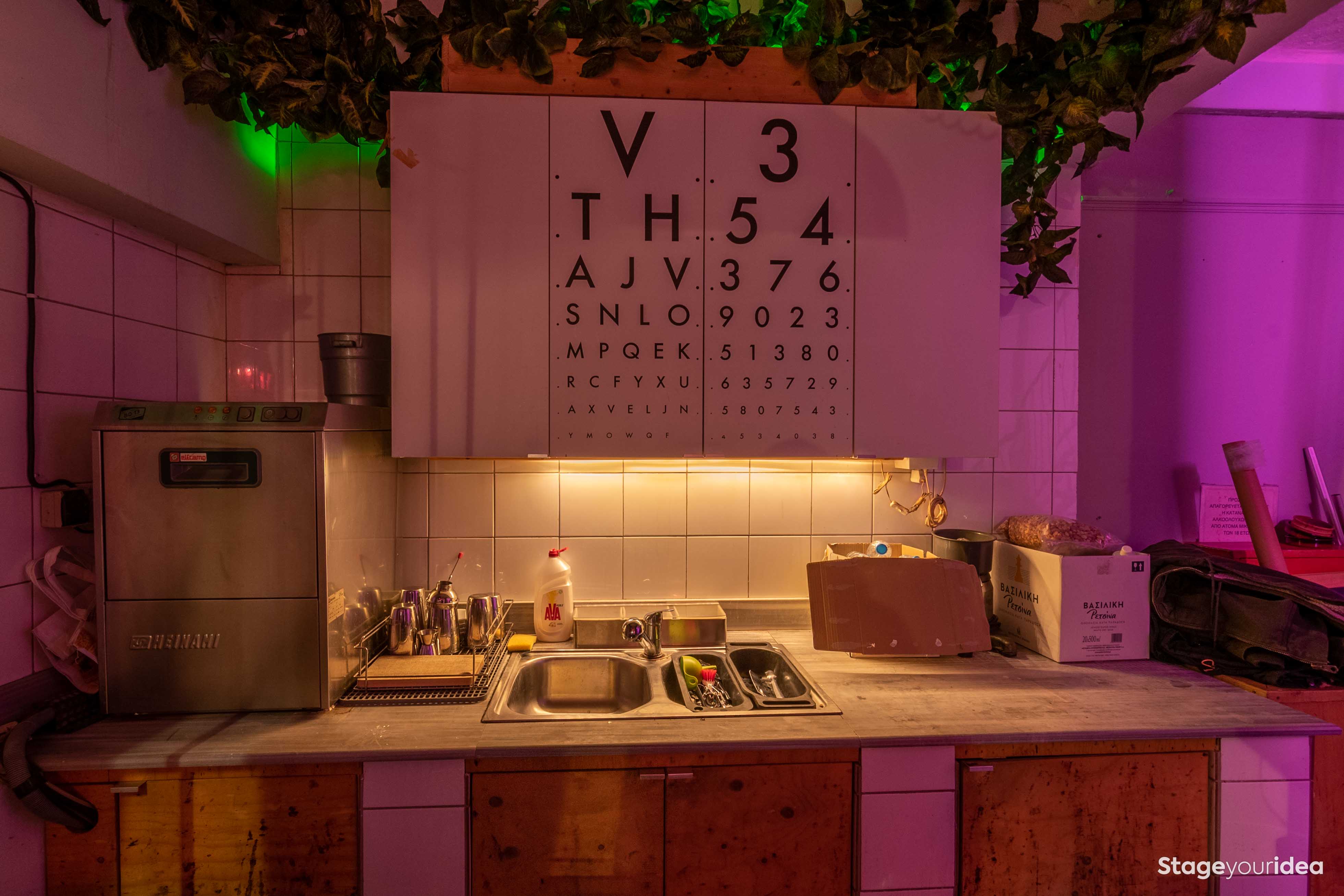 H αισθητική της αίθουσας αντλεί αρκετά στοιχεία από τον ρετρο - φουτουρισμό και μάλιστα ερμηνεύει το παρελθόν με βάση το μέλλον γι’ αυτό και αποπνέει μια νοσταλγία αλλά και ένα κλίμα αντικουλτούρας. Τα μακριά ξύλινα τραπέζια με τις μεταλλικές ρετρό καρέκλες - βαρέλια παραπέμπουν σε συνωμοτικά κρησφύγετα όπου οι συνδαιτυμόνες συνδέονται και συζητούν με θέρμη και πάθος για τα ιδεώδη τους. Ταυτόχρονα αισθάνεται κανείς ότι βρίσκεται σε τροπικό μπαρ κάποιας ασιάτικης επαρχιακής πόλης της δεκαετίας του ‘50 με τα boho φωτιστικά, κάποια από μπαμπού και κάποια από κρόσια, τις γιρλάντες με τα φυτά, τους ανεμιστήρες οροφής, και την ψάθινη πρόσοψη του μπαρ. Τα λευκά πλακάκια τύπου bauhaus που υπάρχουν στην κουζίνα, η neon επιγραφή, ο φουτουριστικός φωτισμός, ο οπτομετρικός πίνακας Snellen, το καροτσάκι super market σε περίοπτη θέση, σύμβολο της μαζικής κουλτούρας και κατανάλωσης και οι sci fi φιγούρες pacman στον επάνω όροφο συνθέτουν έναν καλλιτεχνικό χώρο που υπόσχεται δημιουργικές και αντισυμβατικές στιγμές.