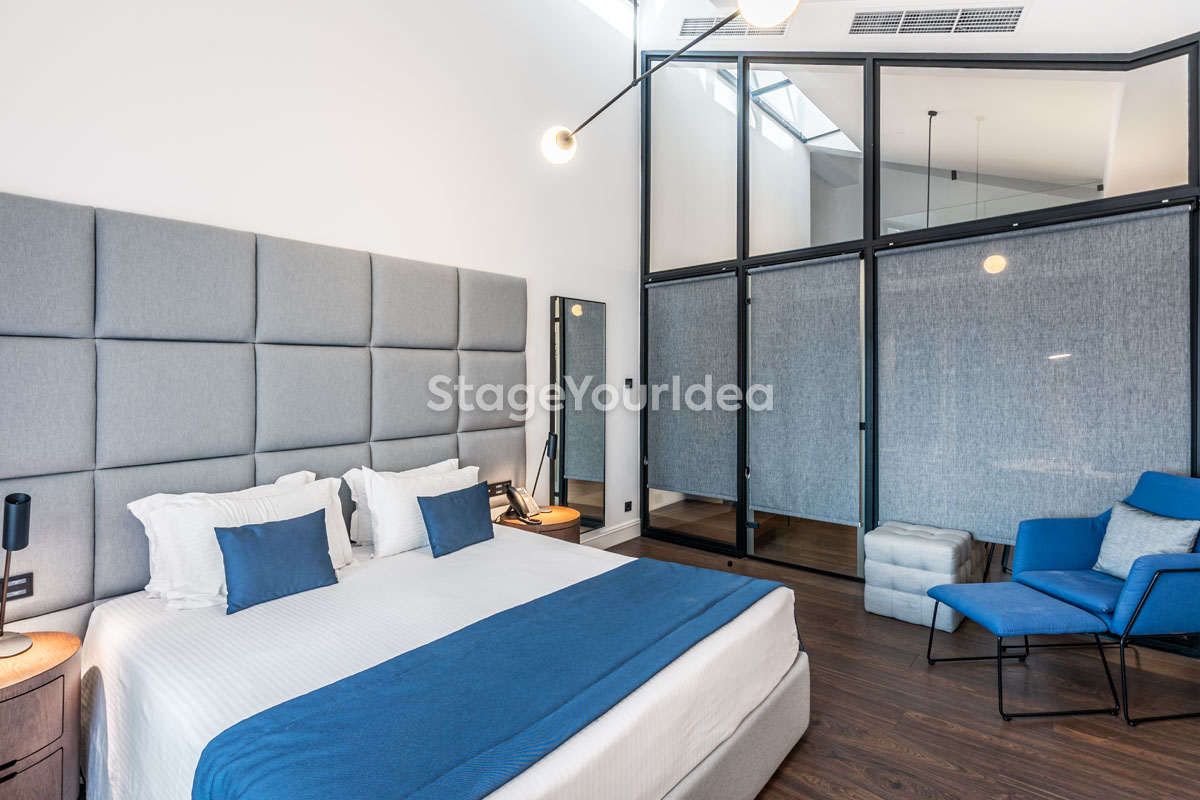 Η ‘Σύγχρονη Σουίτα - Loft’ συνδυάζει ημι-διαμονή με επαγγελματική λειτουργικότητα, καθίσταται έτσι ιδανική για ιδιωτικές επαγγελματικές συναντήσεις, συνεδρίες στρατηγικής και απαιτητικές παραγωγές δημιουργίας περιεχομένου. Η μοναδική της διαρρύθμιση, με ένα μετατρέψιμο γυάλινο αίθριο (atrium) και το φωτεινό στυλ art deco, προσφέρει στους διοργανωτές ένα ευέλικτο, μια εμπνευσμένη οικιστική τοποθεσία με θέα στα ιστορικά βυζαντινά τείχη της Θεσσαλονίκης.