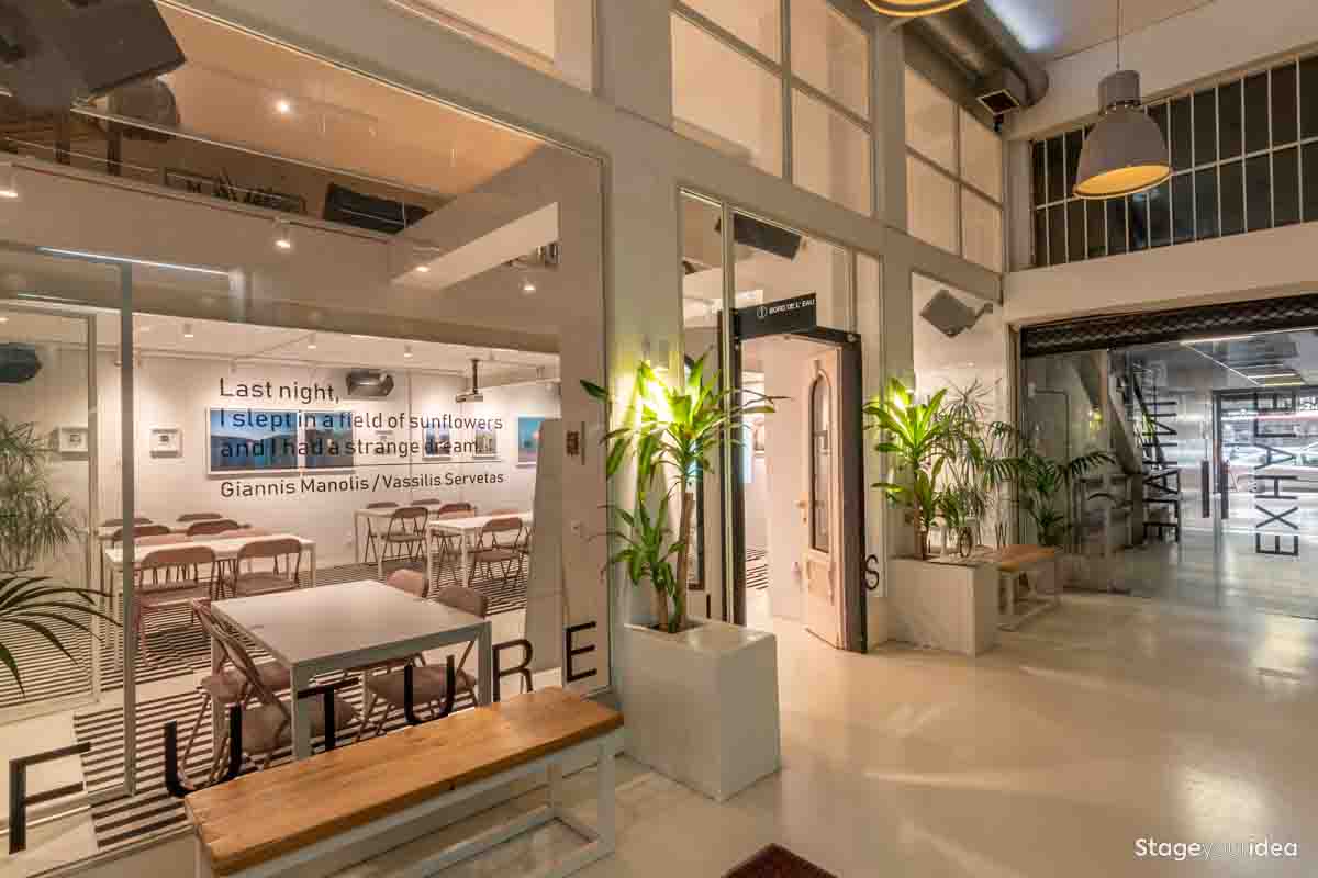O «Πολιτιστικός Χώρος - Workspace» είναι ένα διαρκές φυτώριο πνευματικών ζυμώσεων, μια «κοσμόσφαιρα» πειραματισμών, όπου συνδιαμορφώνεται πλούσιο πολιτιστικό περιεχόμενο, αναδεικνύονται οι καλλιτεχνικές αναζητήσεις και επαναπροσδιορίζονται οι συνεργατικές πρακτικές και δράσεις. Συνιστά ένα αισθητικά άνετο και ψυχοθεραπευτικό περιβάλλον το οποίο μεταφέρει μια αίσθηση εκλεκτικισμού, κομψότητας και νεωτερισμού παρέχοντας έτσι τις καλύτερες προϋποθέσεις προκειμένου να διοργανώσετε μεταξύ άλλων καλλιτεχνικές εκθέσεις, ή επαγγελματικές συναντήσεις.