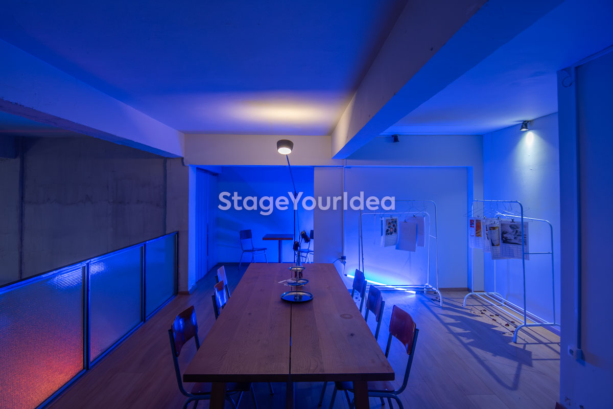 Το «Urban Art Loft» συνδυάζει industrial loft αισθητική με minimal γραμμές και ambient φωτισμό, δημιουργώντας το κατάλληλο περιβάλλον για δημιουργικές συνεδρίες και επαγγελματικές συναντήσεις. Οι καθαρές επιφάνειες λειτουργούν ιδανικά ως φόντο για εκθέσεις τέχνης και παρουσιάσεις έργων, ενώ το ξύλινο δάπεδο και η ζεστή υφή εξισορροπούν το urban ύφος. Ο ambient led φωτισμός επιτρέπει προσαρμογή της ατμόσφαιρας ανάλογα με τη χρήση: από φωτεινό setup για σεμινάρια και εταιρικά workshops έως πιο ατμοσφαιρικό περιβάλλον για βραδινά events και art shows.