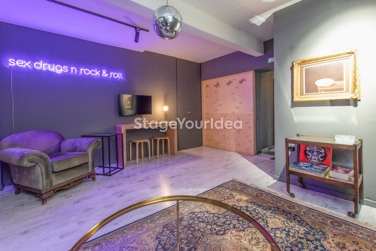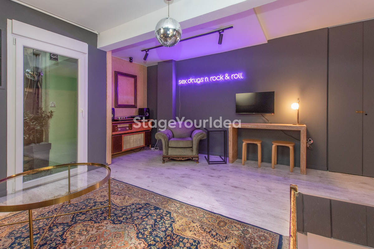 Για Παραγωγές Το «Κεντρικό Cozy Café-Lounge» προσφέρεται για παραγωγές δημιουργίας περιεχομένου χάρη στην έντονη urban-vintage αισθητική και τον προσεγμένο φωτισμό του. Τα track lights, ο χαμηλός ατμοσφαιρικός φωτισμός και οι καθαρές χρωματικές επιφάνειες δημιουργούν φυσικό βάθος και κινηματογραφική αίσθηση στο κάδρο. Οι διαφορετικές γωνιές, το lounge setup, το vinyl station και τα διακοσμητικά στοιχεία λειτουργούν ως έτοιμα σκηνικά, επιτρέποντας ποικιλία πλάνων και αφηγηματική ευελιξία χωρίς ανάγκη εκτεταμένου στησίματος.