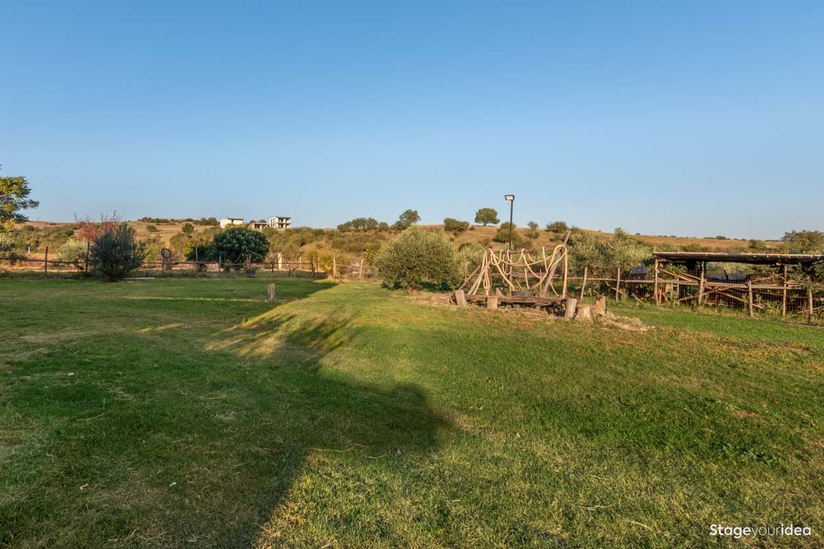 Ο «Ευρύχωρος Υπαίθριος με Σκηνή Θεάματος», είναι η εξύμνηση του countrycore, του ακατέργαστου, πρωτόλειου, του εξωραϊσμού της σύνδεσης με την φύση, της απλότητας και ομορφιάς του slow living και της ανεπιτίδευτης και αβίαστης ευχαρίστησης που απολαμβάνει κανείς με το είναι «παρών» μέσα στο φυσικό περιβάλλον. Στόχος δεν είναι η απτή πολυτέλεια αλλά η επαφή με την φύση, η ανάταση ψυχής, η ελευθερία πνεύματος. Να καθιερωθεί ως χώρος πολιτισμού, φεστιβάλ. Το σκηνικό δράσης είναι διαμορφωμένο με τέτοιο τρόπο ώστε να ενθαρρύνει την επικοινωνία γύρω από μια πρωτογονικού τύπου εστία, εκεί όπου οι άνθρωποι διαχρονικά αλληλεπιδρούν, συνδέονται, γεννούν ιδέες και κινητοποιούν την φαντασία τους. Η αίθουσα προσφέρεται κατ’ εξοχήν για φεστιβάλ και εν γένει εορταστικές εκδηλώσεις, για φωτογραφίσεις γάμου ή μόδας, τηλεοπτικές παραγωγές ή μουσικά βίντεο κλιπ καθώς το τοπίο είναι ένα «πολυπρισματικό» φωτογραφικό σκηνικό, αλλά και για επαγγελματικές συναντήσεις εκτός γραφείου ειδικά για συνεργαζόμενες ομάδες ανθρώπων που εκτιμούν και εμπνέονται από ένα τέτοιο περιβάλλον.