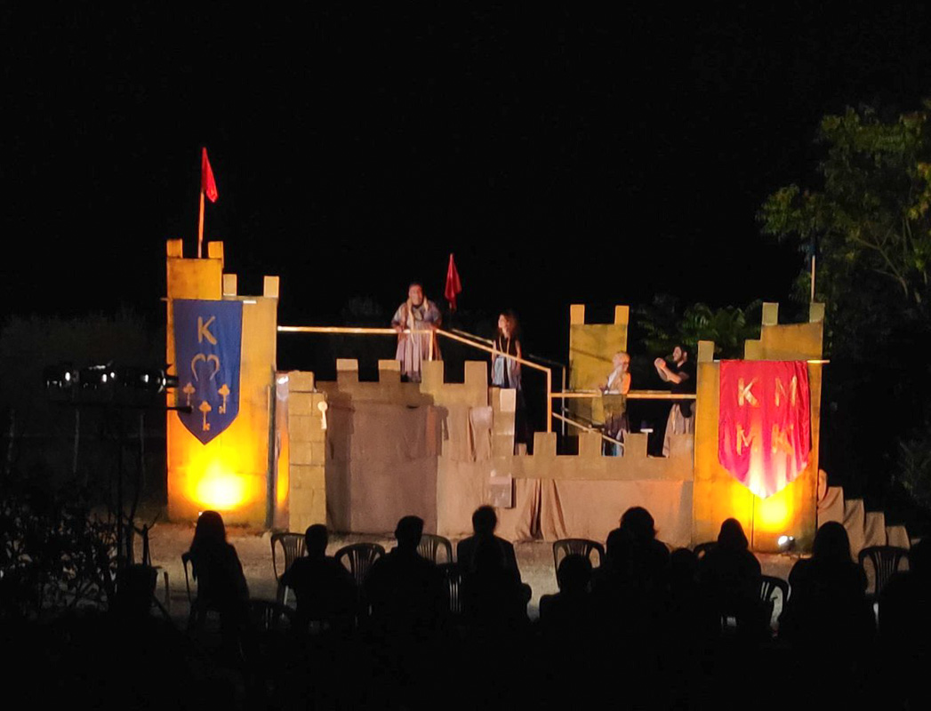 Ο «Ευρύχωρος Υπαίθριος με Σκηνή Θεάματος» έχει «σμιλευθεί» με τέτοιο τρόπο ώστε να αναδύει αυτό που αντιπροσωπεύει η φύση, δηλαδή την απλότητα, την αυτάρκεια και την προσωπική ελευθερία. Είναι μια αίθουσα ευρύχωρη, ανοιχτή, καθοδηγούμενη αισθητικά και λειτουργικά από το ίδιο το φυσικό τοπίο με ρουστίκ υφές, παραδοσιακή ξύλινη περίφραξη, άφθονα ελαιόδεντρα, abstract vintage, νοσταλγικές διακοσμητικές πινελιές, ξύλινες συνθέσεις με μια κατασκευή (grill swing) και μια κεντρική σκηνή, έτοιμη να φιλοξενήσει δημιουργούς των παραστατικών τεχνών που επιθυμούν να ψυχαγωγήσουν και να επικοινωνήσουν με το κοινό τους.