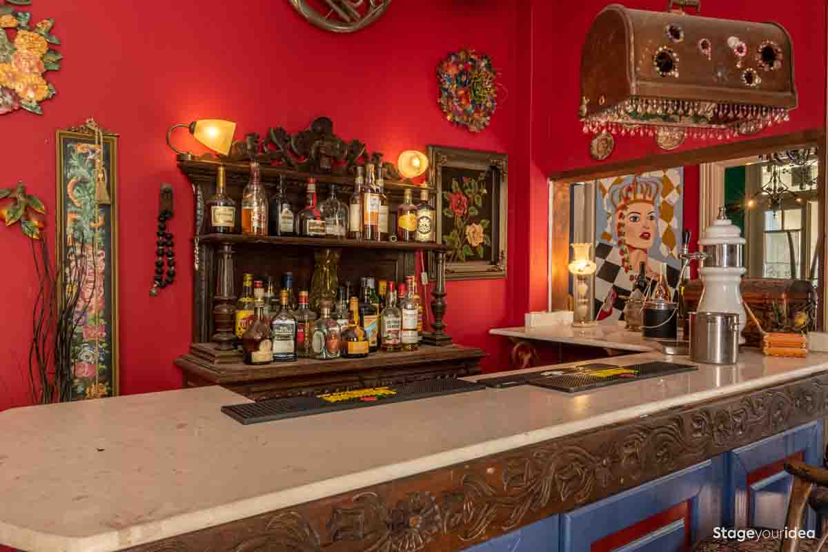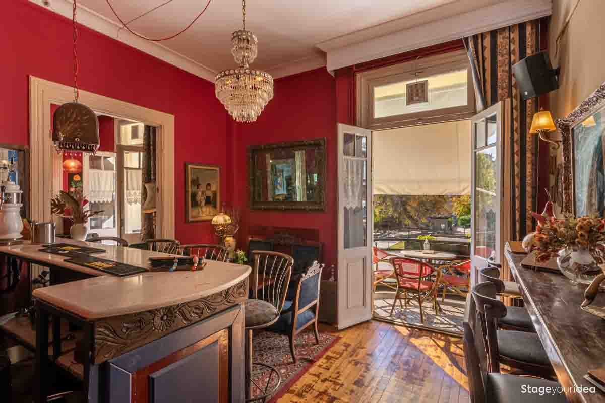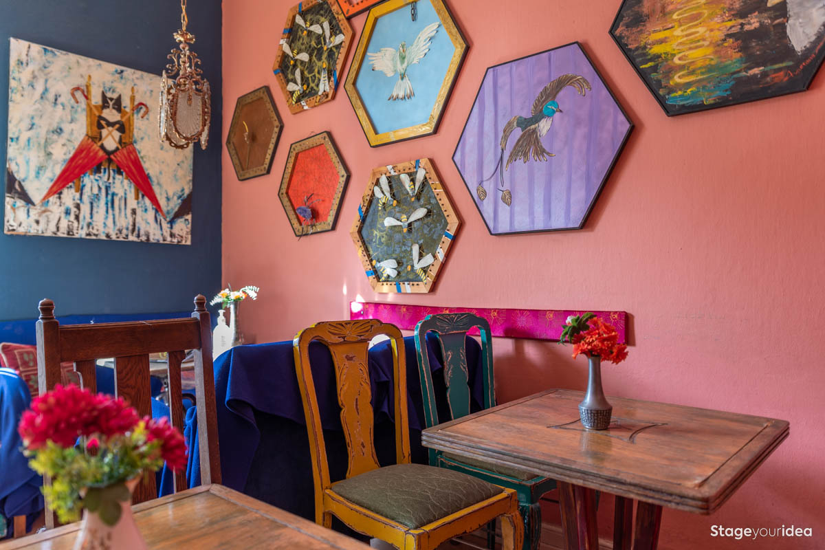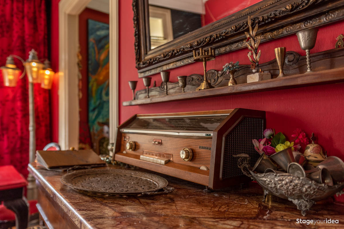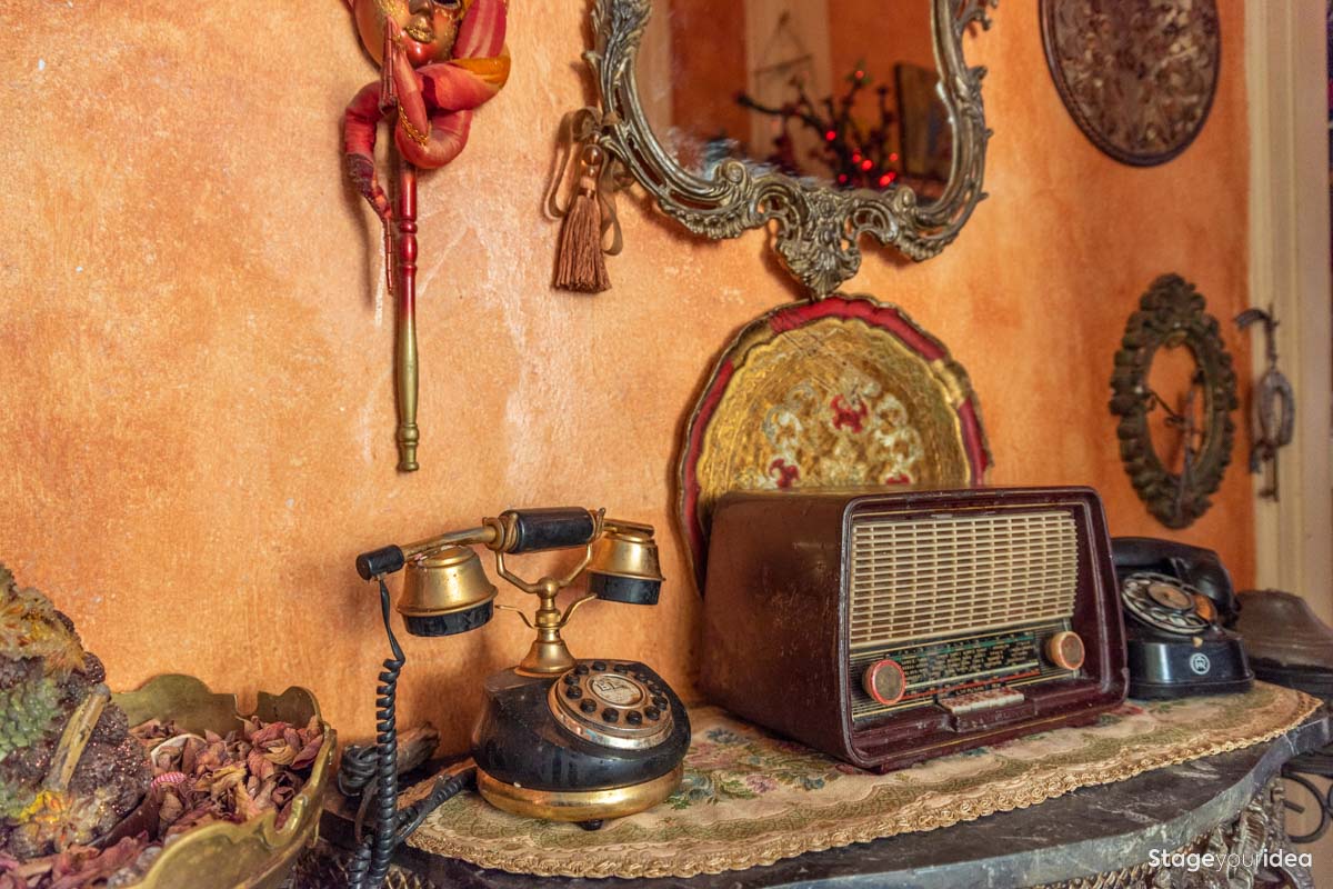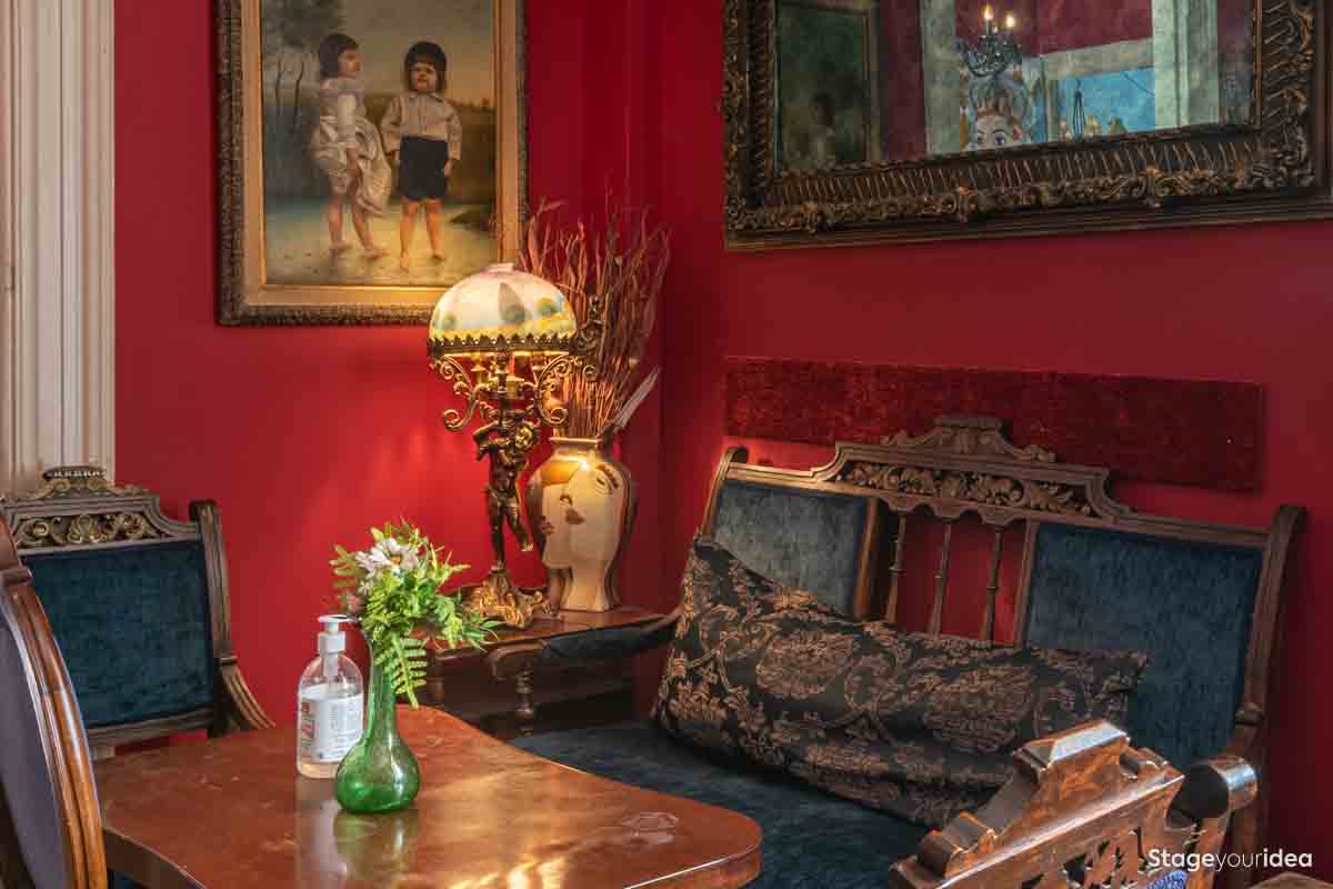 Για Παραγωγές Στο «Καφέ με Δραματικό Διακοσμητικό Ύφος» θα συναντήσετε την απρόσμενη συνύπαρξη του μπαρόκ όπως αποτυπώνεται στις διακοσμητικές λεπτομέρειες των πολυελαίων και στις καμπύλες των καθισμάτων, του ρουστίκ με το ακατέργαστο ξύλο και τις ανάγλυφες επιφάνειες, του boho chic με το ανέμελο layering των μοτίβων και των υφών.
