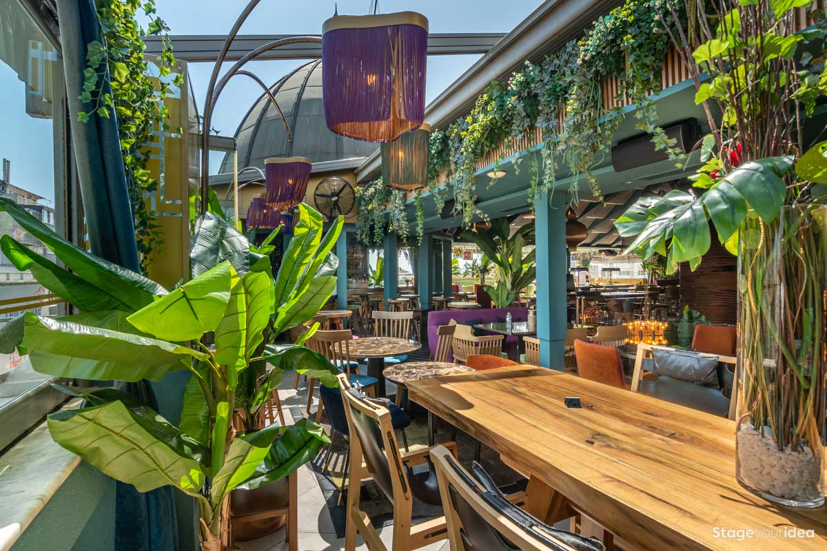 Για Εκδηλώσεις & Συναντήσεις Με χωρητικότητα 300 ατόμων ορθίων ή 200 ατόμων καθιστών (σε ελεύθερη διάταξη) η «Μεταμοντέρνα Ταράτσα με Βελούδινα Καθίσματα» είναι η ιδανική επιλογή για πολυπληθείς διοργανώσεις σε ένα περιβάλλον που ξεχωρίζει για την πρωτοποριακή εξωτική αισθητική του. Είναι διαθέσιμη για ιδιωτικές κρατήσεις εκδηλώσεων όπως εταιρικά πάρτυ, δημοπρασίες, επιδείξεις μόδας, εκθέσεις προϊόντων, δεξιώσεις γάμου ή βάπτισης, τελετές αποφοίτησης και πάρτυ αποφοίτων, γενέθλια ή bachelor πάρτυ, γκαλά αλλά και για δραστηριότητες συναντήσεων όπως συσκέψεις, σεμινάρια, συνέδρια και παρουσιάσεις.