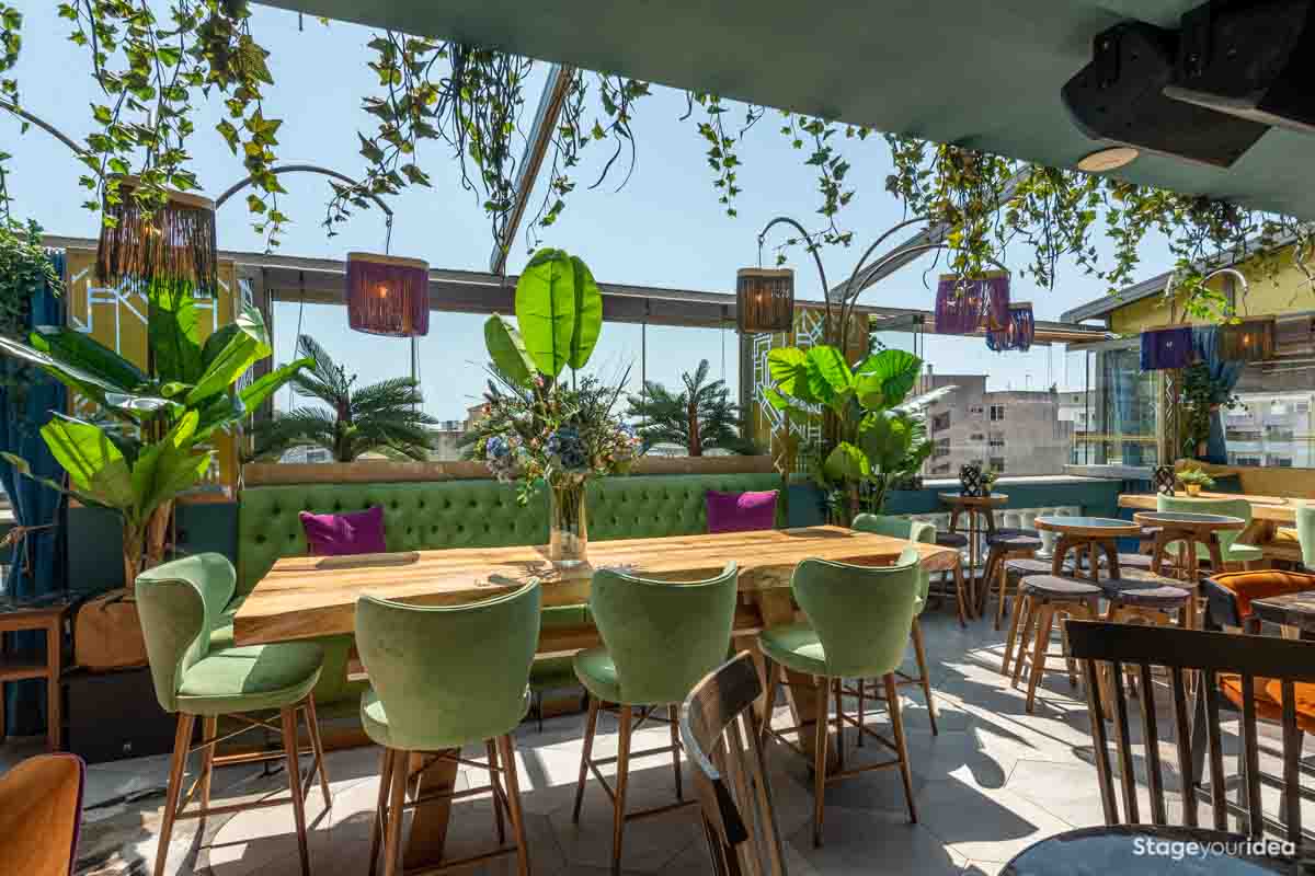 Η διοργάνωσή σας στην «Μεταμοντέρνα Ταράτσα με Βελούδινα Καθίσματα» με τους συναρπαστικούς funky συνδυασμούς υλικών, χρωμάτων, γραμμών και υφών, τα τολμηρά μοτίβα, και τους σούπερ comfy βελούδινους καναπέδες, θα αποσπάσει αναμφίβολα διθυραμβικά feedback. Συνιστά ένα εγχείρημα αισθητικού πειραματισμού το οποίο θα ζήλευαν και οι πιο ξακουστές αίθουσες τέχνης.