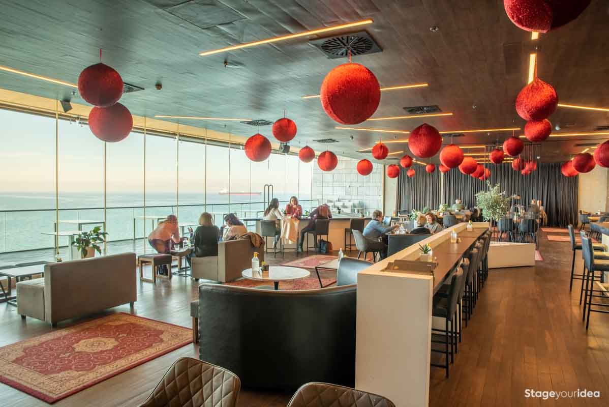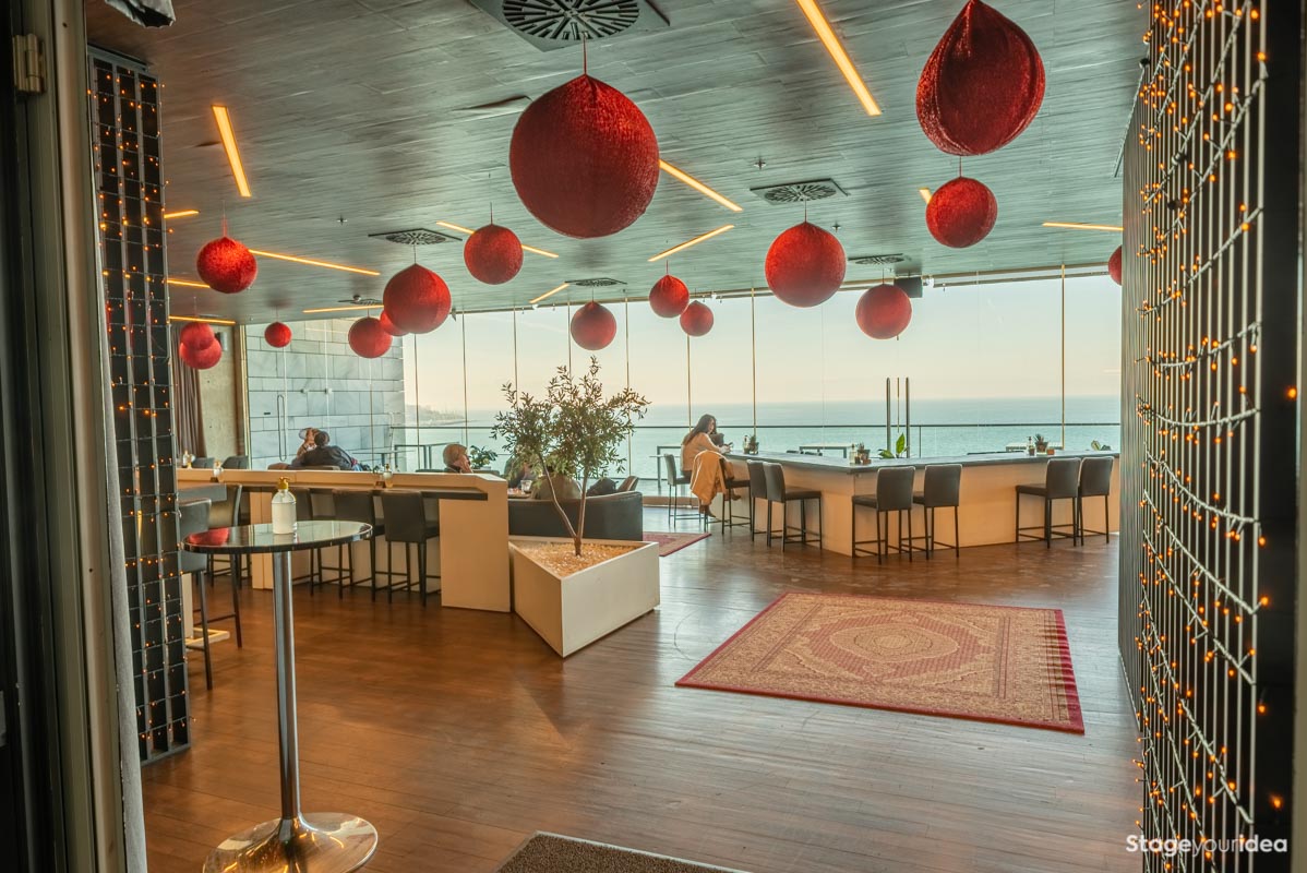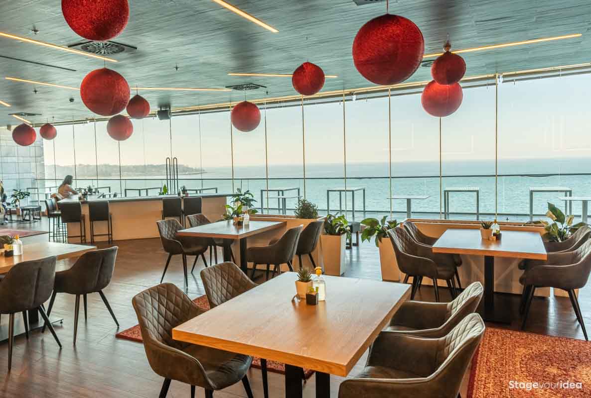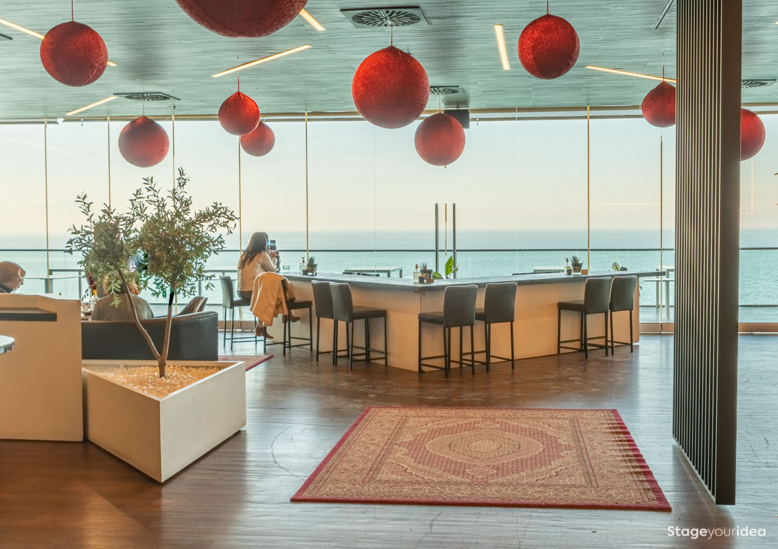 Το «Μινιμαλιστικό Πολυτελές Bar με Θέα στην Θάλασσα», είναι το καφέ- bar-εστιατόριο στο κτίριο Μ2 του Μεγάρου Μουσικής Θεσσαλονίκης το οποίο προσφέρει μια ακαταμάχητη θέα σε ευθυγράμμιση με τον ορίζοντα του Θερμαϊκού κόλπου. Το γεγονός ότι στεγάζεται στο κτίριο Μ2, με την πρωτοποριακή αντισυμβατική αρχιτεκτονική που το χαρακτηρίζει, καθώς και η γειτνίασή του με το κεντρικό κτίριο του Μεγάρου Μουσικής Θεσσαλονίκης του αποδίδει μια επιβλητική αξία καθιστώντας την Αίθουσα ως ιδανική για τις πιο ιδιαίτερες περιστάσεις σας.