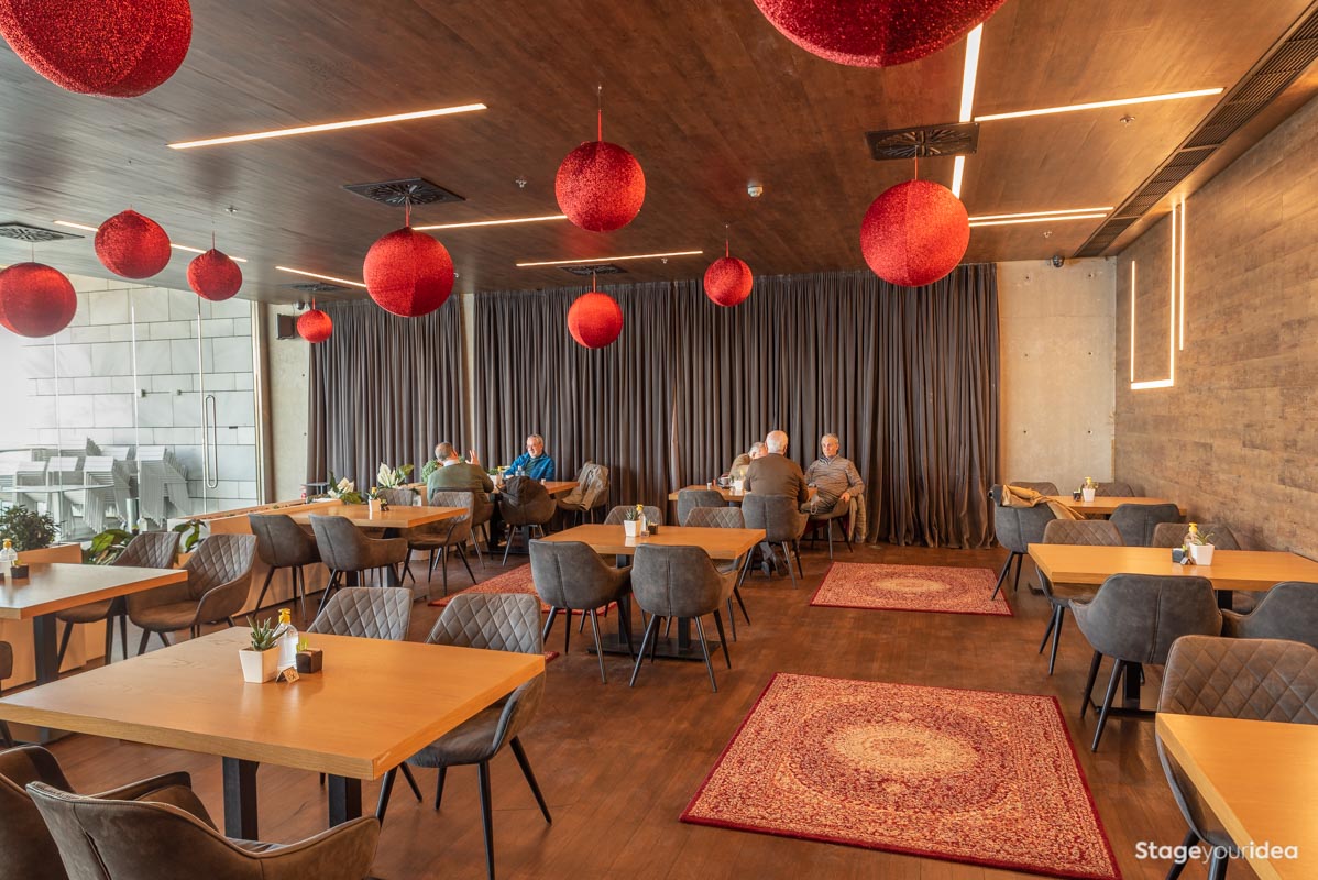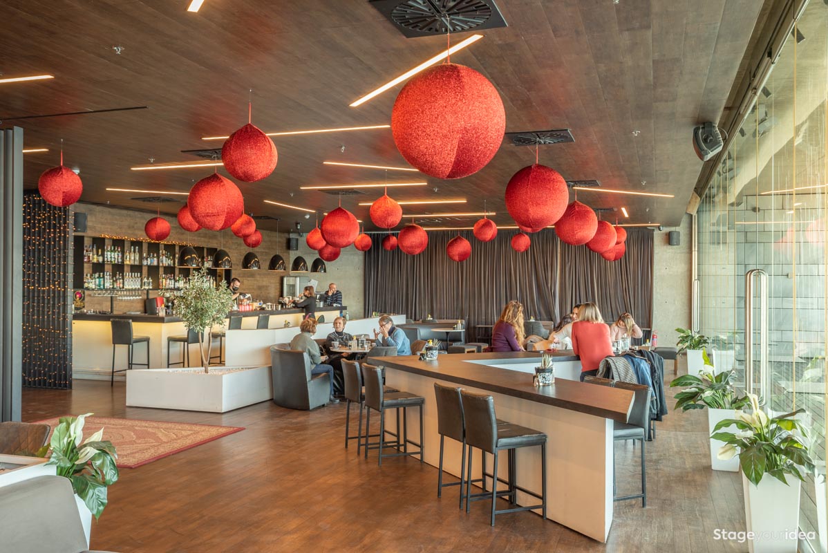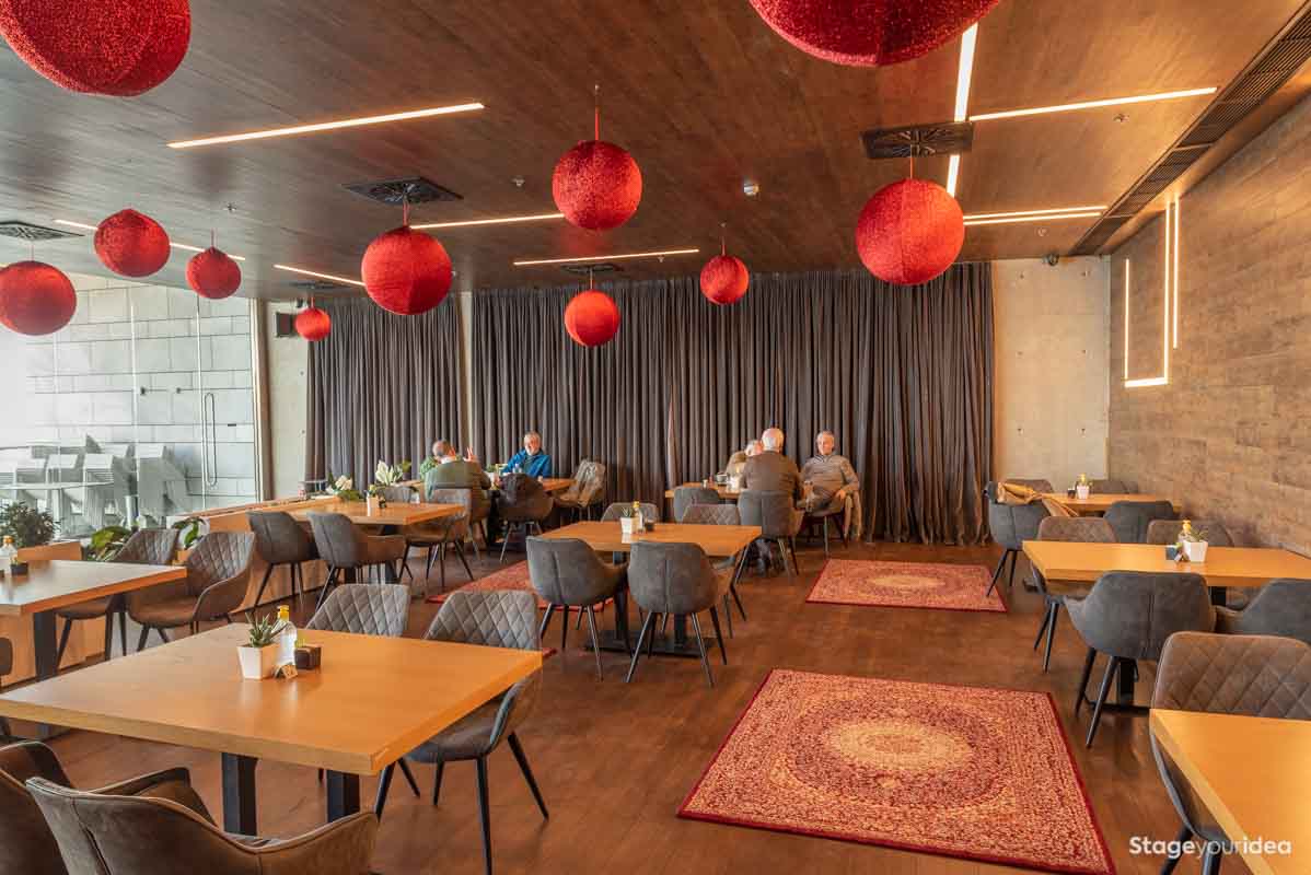 Για Εκδηλώσεις Έχοντας φιλοξενήσει μια ευρεία γκάμα διοργανώσεων (από εταιρικά πάρτυ, γάμους, βαπτίσεις έως τελετές και πάρτυ αποφοιτήσεων) μπορείτε να είστε βέβαιοι πως η επιλογή της Αίθουσάς μας για την εταιρική ή κοινωνική σας εκδήλωση θα αφήσει ανεξίτηλα θετικές εντυπώσεις στους καλεσμένους σας. Η Αίθουσα (μεγέθους στο σύνολο -εσωτερικός και εξωτερικός χώρος- 342 τ.μ.) μπορεί να υποστηρίξει κάθε είδους διάταξη καθήμενων και έχουν πραγματοποιηθεί διοργανώσεις είτε με ροτόντες (μορφή δείπνου), στυλ καμπαρέ (θέα για όλους προς την κεντρική σκηνή) είτε τραπέζια σε στυλ σύσκεψης ή τάξης. Μέγιστη επιτρεπόμενη χωρητικότητα βάσει των κανόνων απόστασης που έχουν θεσπιστεί για την πρόληψη διασποράς του κοροναϊού είναι τα 250 άτομα.