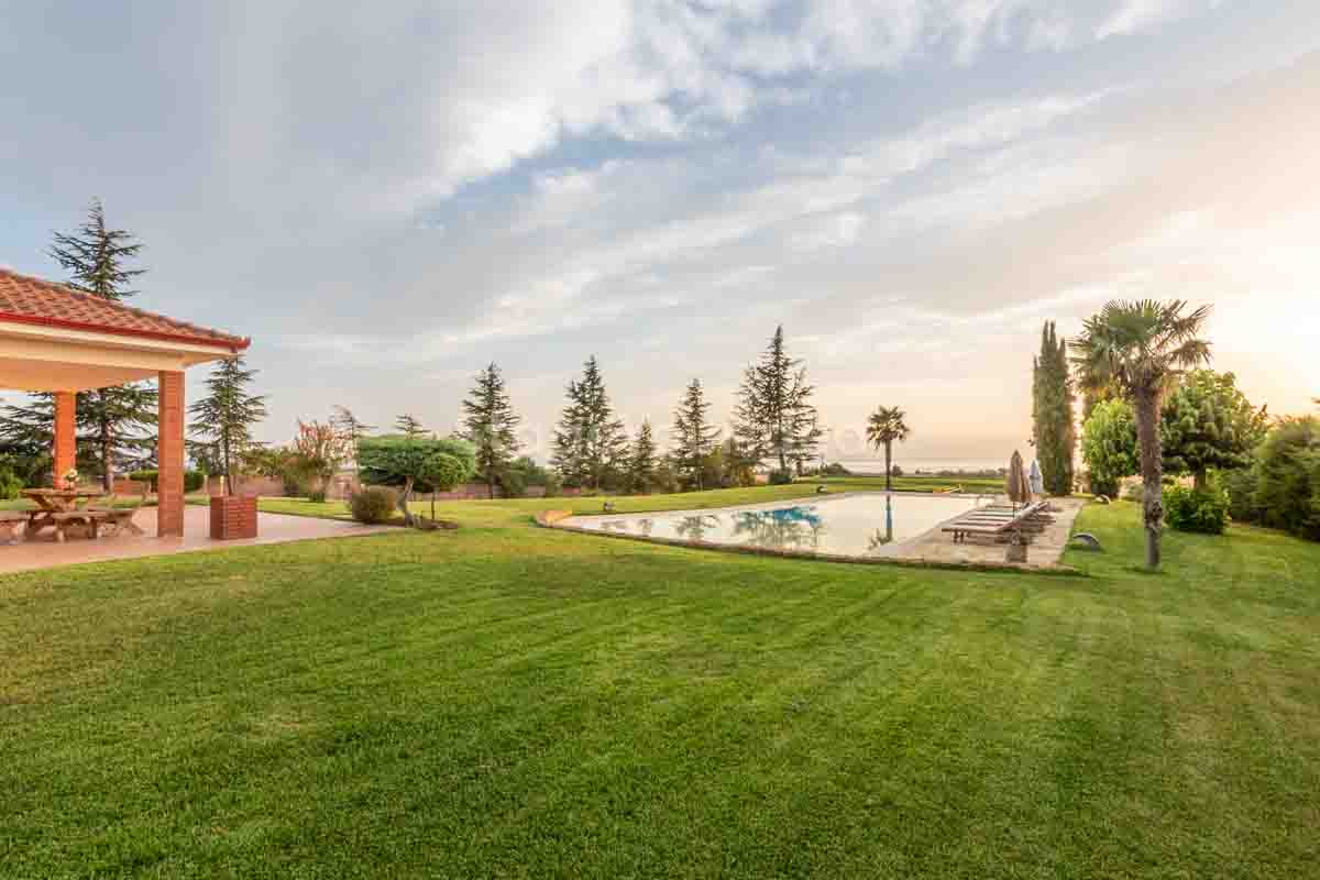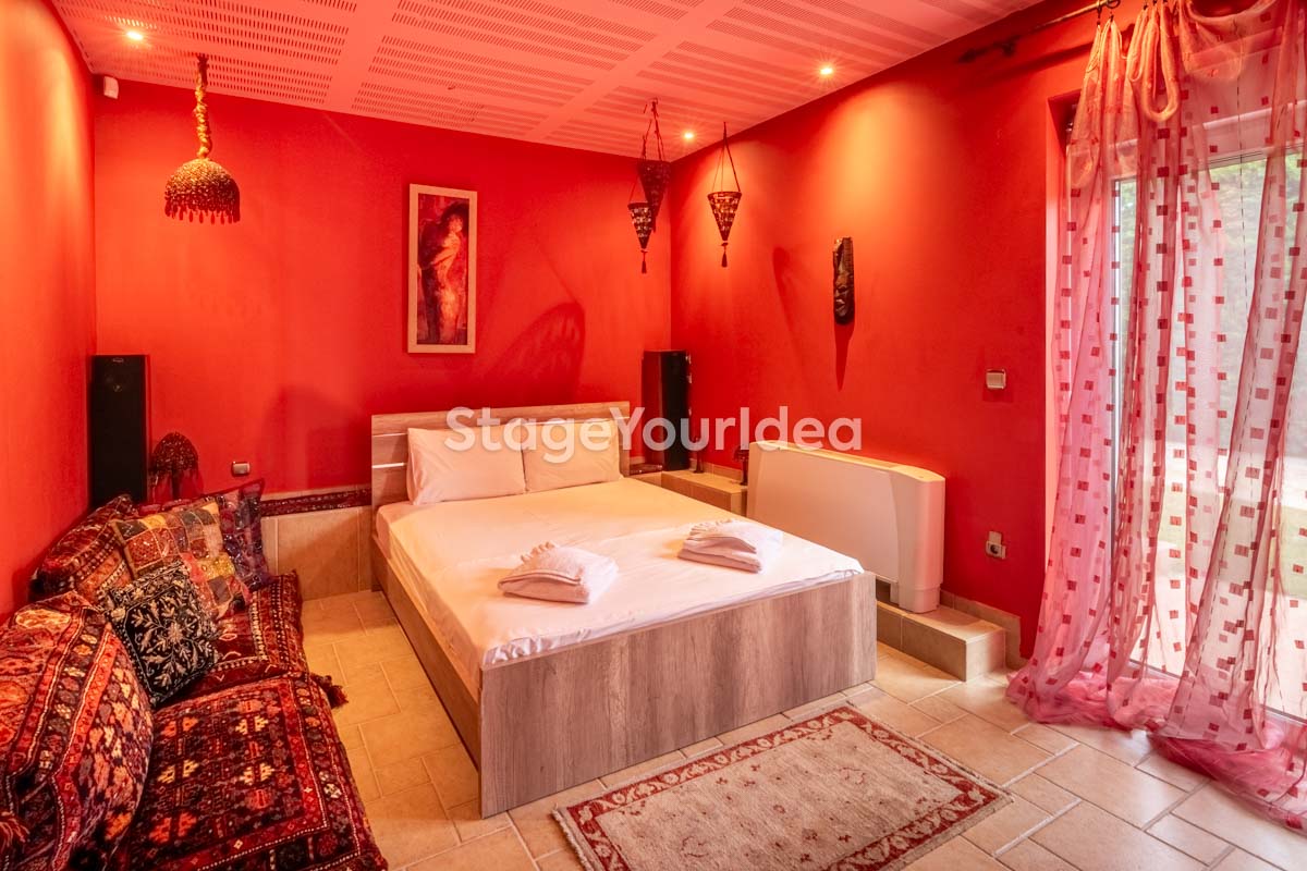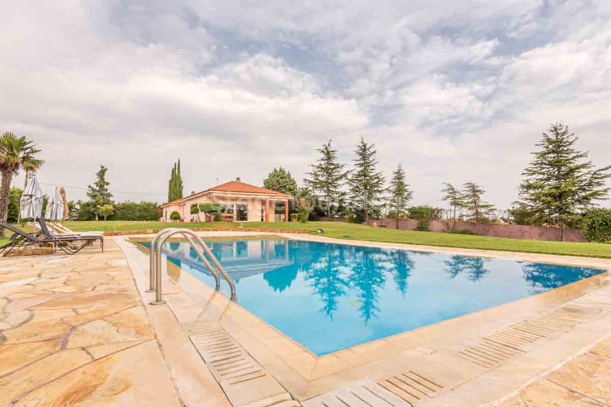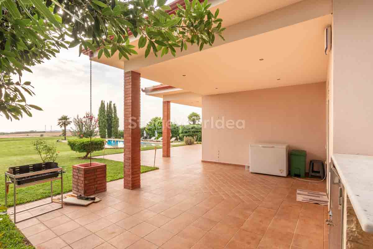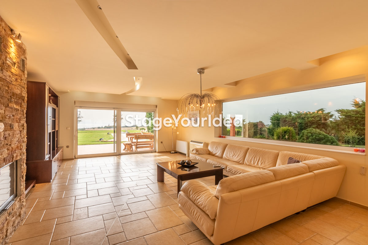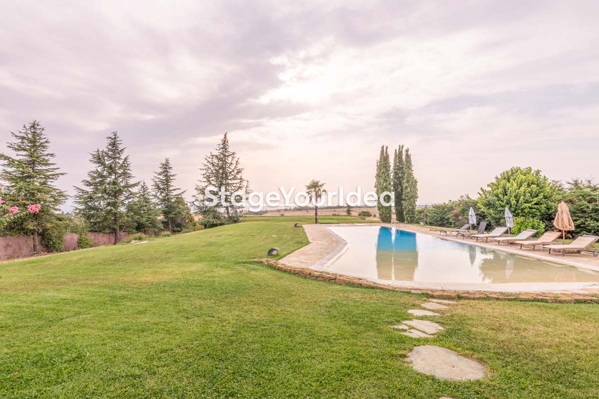 Η ειδυλλιακή θέα του ουρανού, η εντυπωσιακή πισίνα (100 τ.μ., 3 μέτρα βάθος), οι ζεστές γήινες αποχρώσεις της τερακότα σε συνδυασμό με τον περιποιημένο καταπράσινο κήπο καλύπτουν και τα 4 στοιχεία της φύσης προκειμένου να επιτείνουν στο μέγιστο την εμπειρία των καλεσμένων σας. Η παρουσία της πέτρας, του ξύλου και του δέρματος στην επίπλωση αποπνέουν παράδοση και συνάμα πολυτέλεια. Η παρουσία μοντέρνων φωτιστικών με τη συνοδεία περίτεχνων ασυμμετριών και καμπύλων γραμμών προσδίδουν εκσυγχρονιστικό χαρακτήρα. Οι διάπλατες τζαμαρίες διευρύνουν περαιτέρω το οπτικό πεδίο από το εσωτερικό της αίθουσας ενισχύοντας την διαπερατότητα με το εξωτερικό τοπίο.