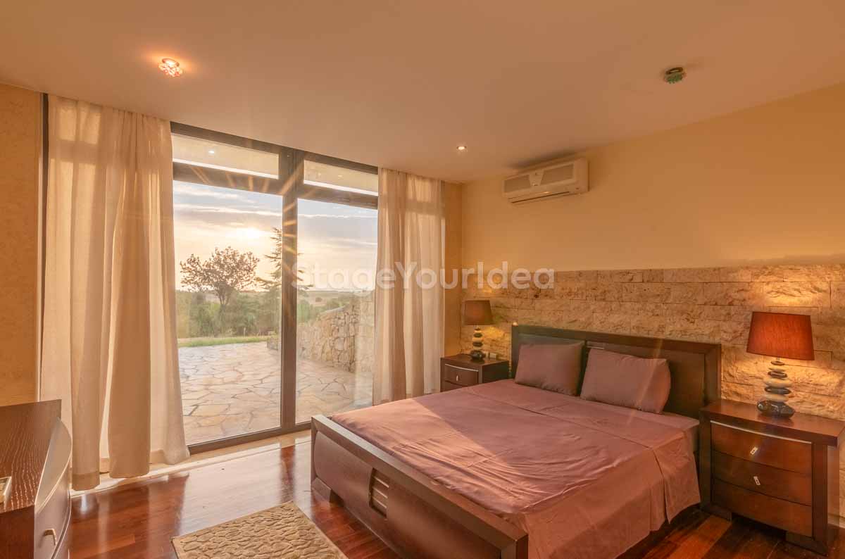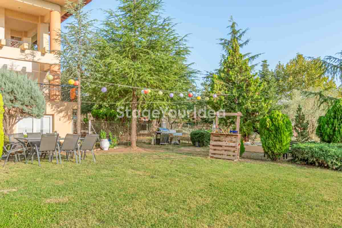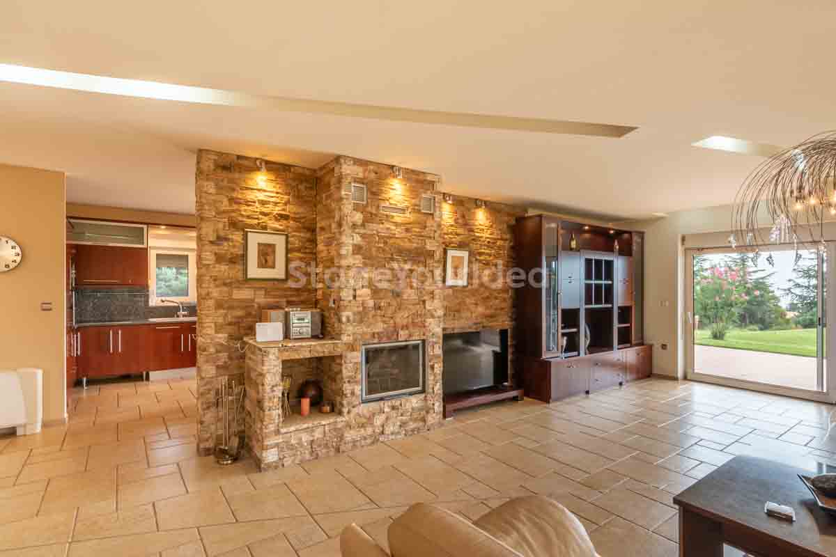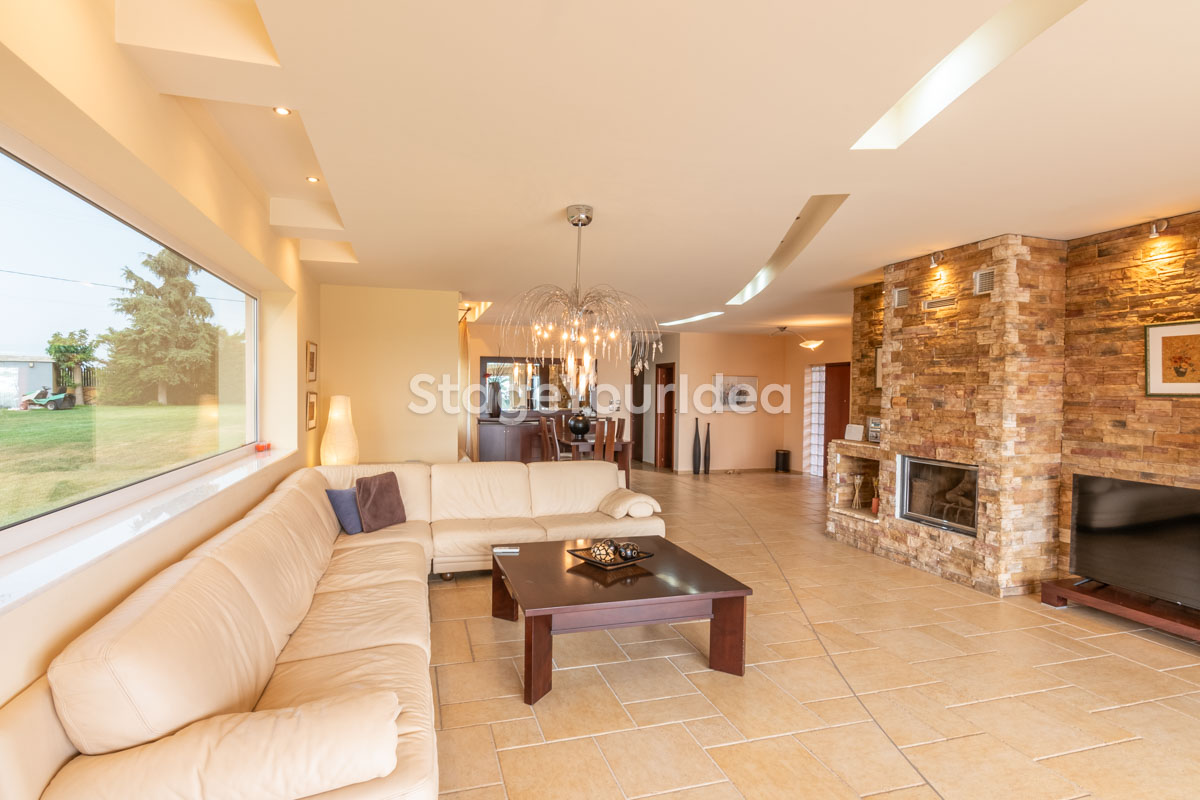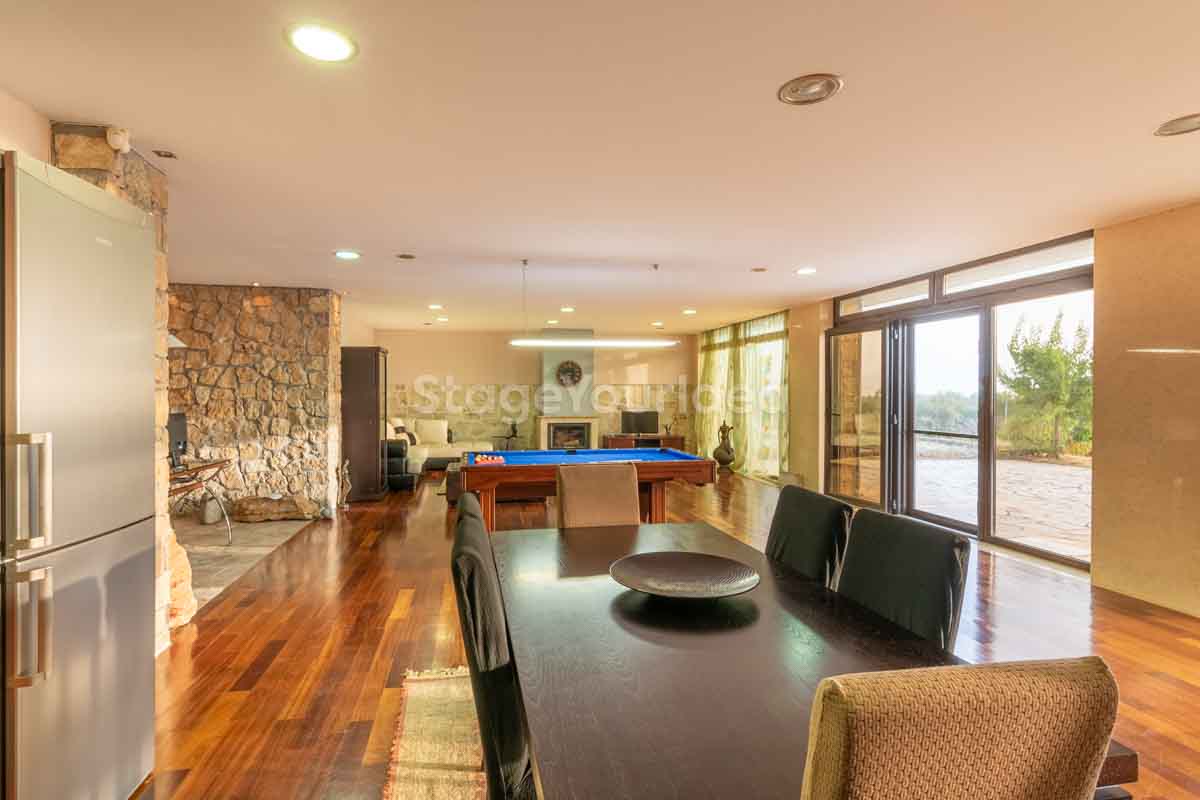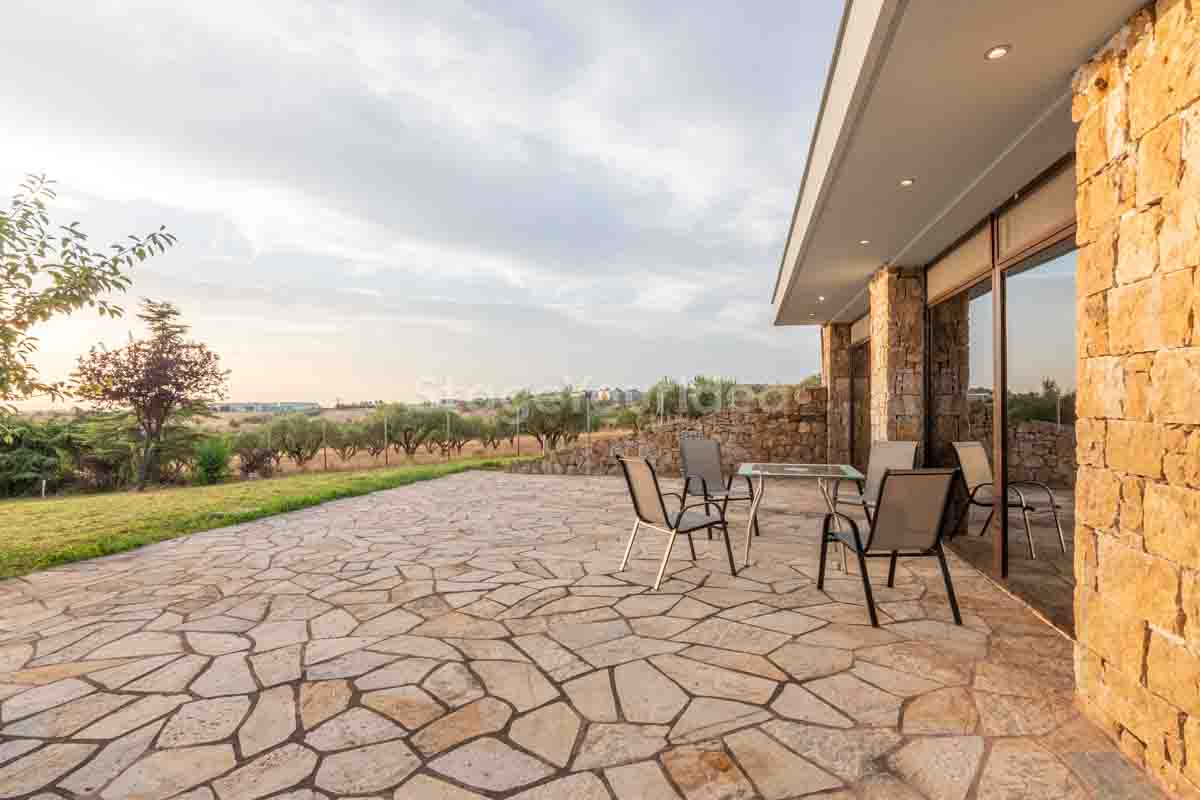 Η ειδυλλιακή θέα του ουρανού, η εντυπωσιακή πισίνα (100 τ.μ., 3 μέτρα βάθος), οι ζεστές γήινες αποχρώσεις της τερακότα σε συνδυασμό με τον περιποιημένο καταπράσινο κήπο καλύπτουν και τα 4 στοιχεία της φύσης προκειμένου να επιτείνουν στο μέγιστο την εμπειρία των καλεσμένων σας. Η παρουσία της πέτρας, του ξύλου και του δέρματος στην επίπλωση αποπνέουν παράδοση και συνάμα πολυτέλεια. Η παρουσία μοντέρνων φωτιστικών με τη συνοδεία περίτεχνων ασυμμετριών και καμπύλων γραμμών προσδίδουν εκσυγχρονιστικό χαρακτήρα. Οι διάπλατες τζαμαρίες διευρύνουν περαιτέρω το οπτικό πεδίο από το εσωτερικό της αίθουσας ενισχύοντας την διαπερατότητα με το εξωτερικό τοπίο.
