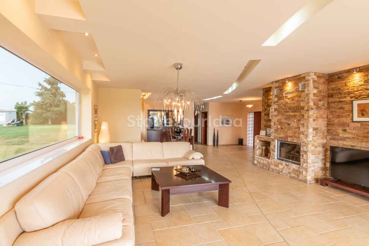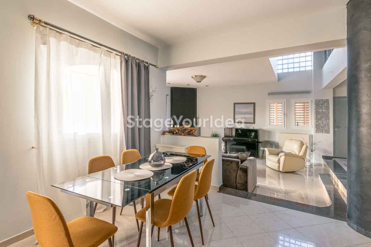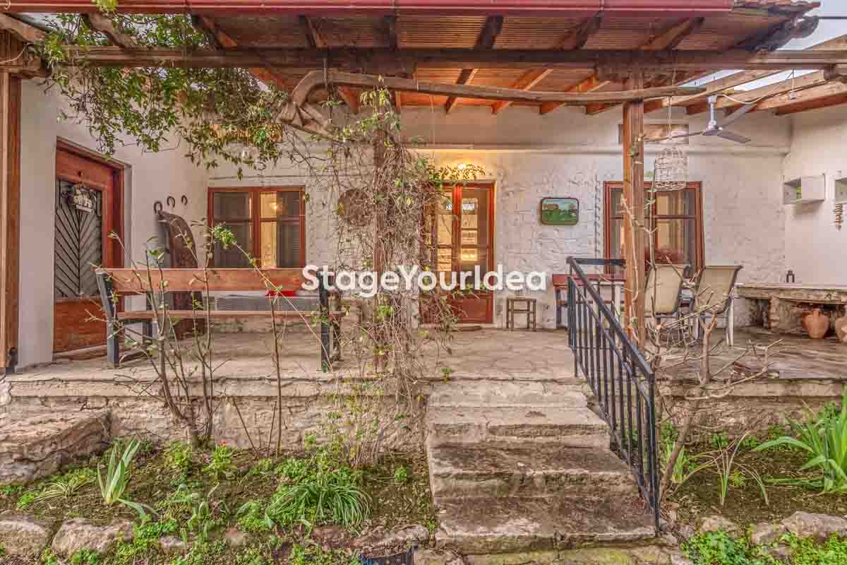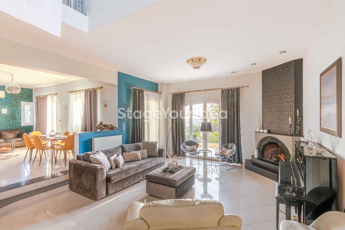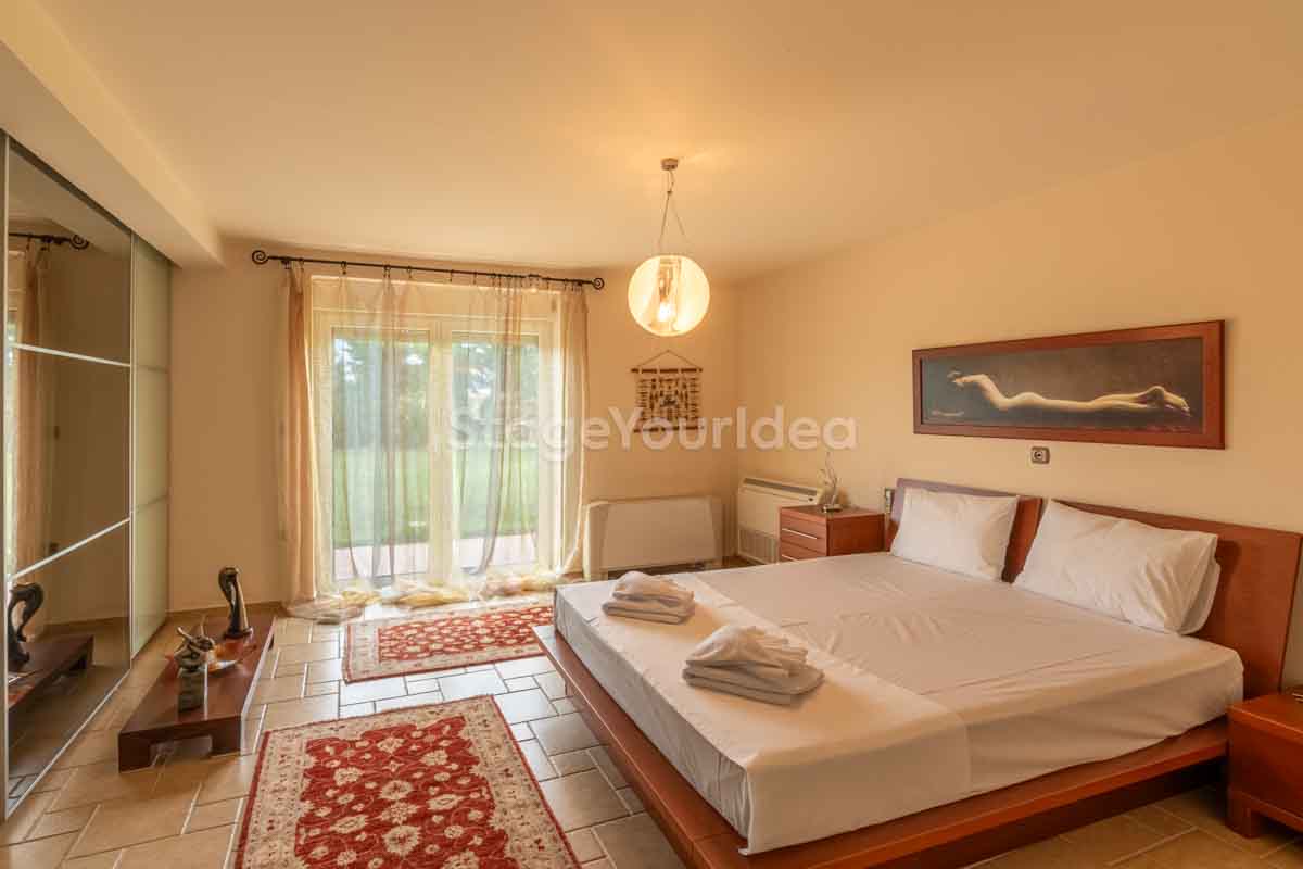 Η ειδυλλιακή θέα του ουρανού, η εντυπωσιακή πισίνα (100 τ.μ., 3 μέτρα βάθος), οι ζεστές γήινες αποχρώσεις της τερακότα σε συνδυασμό με τον περιποιημένο καταπράσινο κήπο καλύπτουν και τα 4 στοιχεία της φύσης προκειμένου να επιτείνουν στο μέγιστο την εμπειρία των καλεσμένων σας. Η παρουσία της πέτρας, του ξύλου και του δέρματος στην επίπλωση αποπνέουν παράδοση και συνάμα πολυτέλεια. Η παρουσία μοντέρνων φωτιστικών με τη συνοδεία περίτεχνων ασυμμετριών και καμπύλων γραμμών προσδίδουν εκσυγχρονιστικό χαρακτήρα. Οι διάπλατες τζαμαρίες διευρύνουν περαιτέρω το οπτικό πεδίο από το εσωτερικό της αίθουσας ενισχύοντας την διαπερατότητα με το εξωτερικό τοπίο.