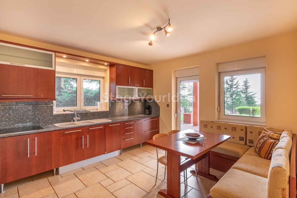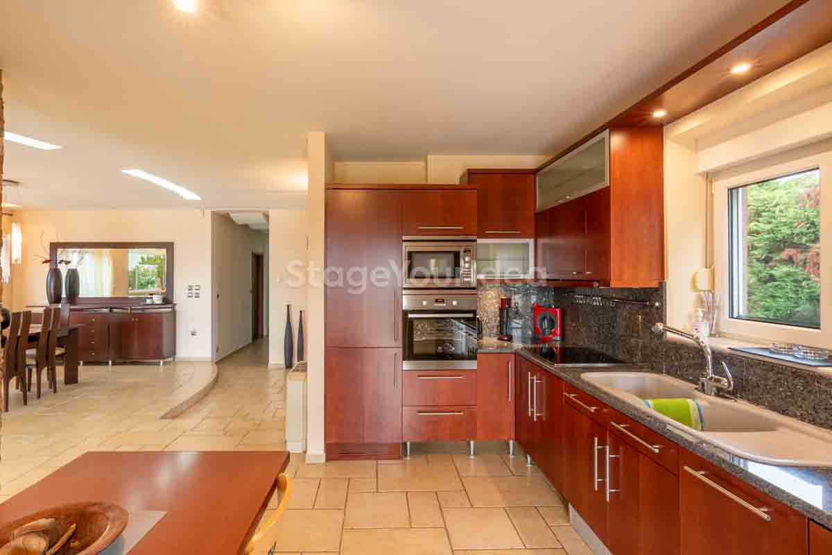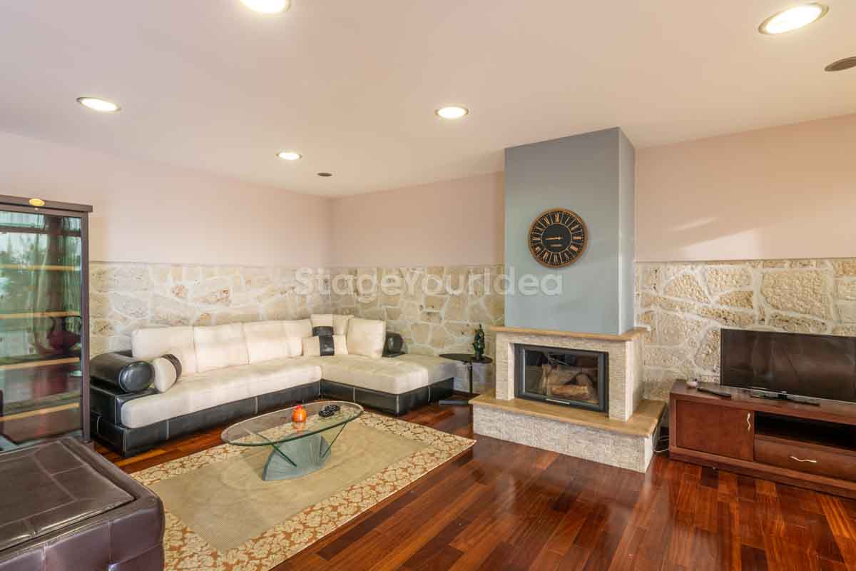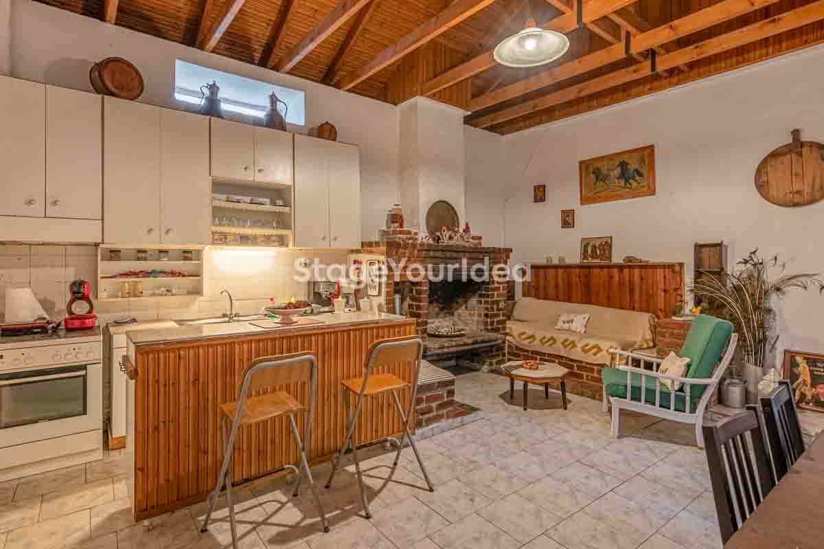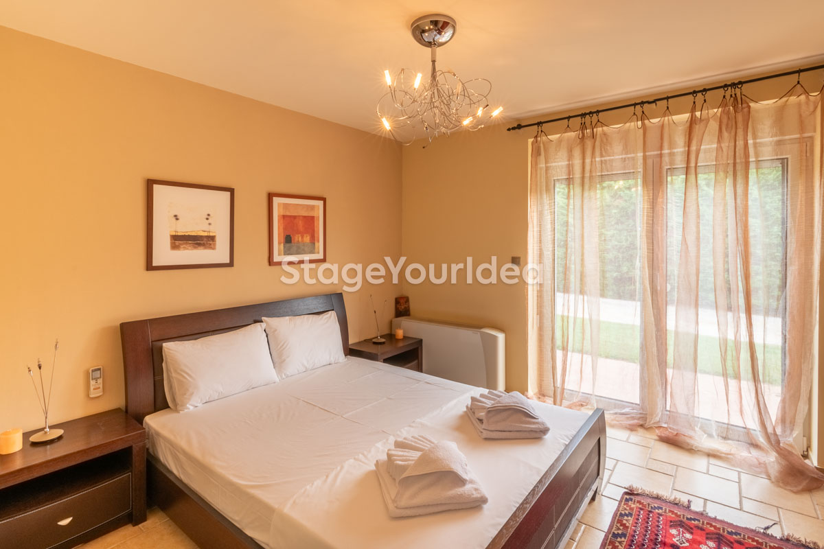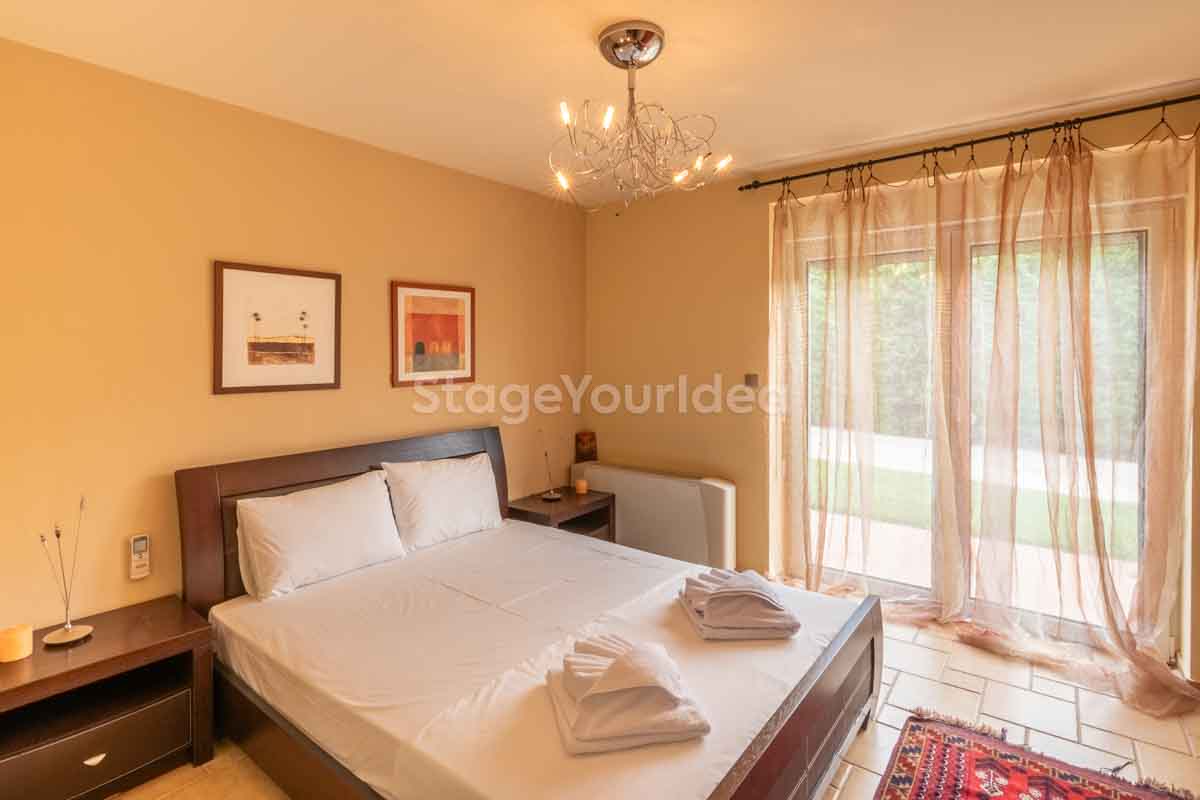 Η ειδυλλιακή θέα του ουρανού, η εντυπωσιακή πισίνα (100 τ.μ., 3 μέτρα βάθος), οι ζεστές γήινες αποχρώσεις της τερακότα σε συνδυασμό με τον περιποιημένο καταπράσινο κήπο καλύπτουν και τα 4 στοιχεία της φύσης προκειμένου να επιτείνουν στο μέγιστο την εμπειρία των καλεσμένων σας. Η παρουσία της πέτρας, του ξύλου και του δέρματος στην επίπλωση αποπνέουν παράδοση και συνάμα πολυτέλεια. Η παρουσία μοντέρνων φωτιστικών με τη συνοδεία περίτεχνων ασυμμετριών και καμπύλων γραμμών προσδίδουν εκσυγχρονιστικό χαρακτήρα. Οι διάπλατες τζαμαρίες διευρύνουν περαιτέρω το οπτικό πεδίο από το εσωτερικό της αίθουσας ενισχύοντας την διαπερατότητα με το εξωτερικό τοπίο.