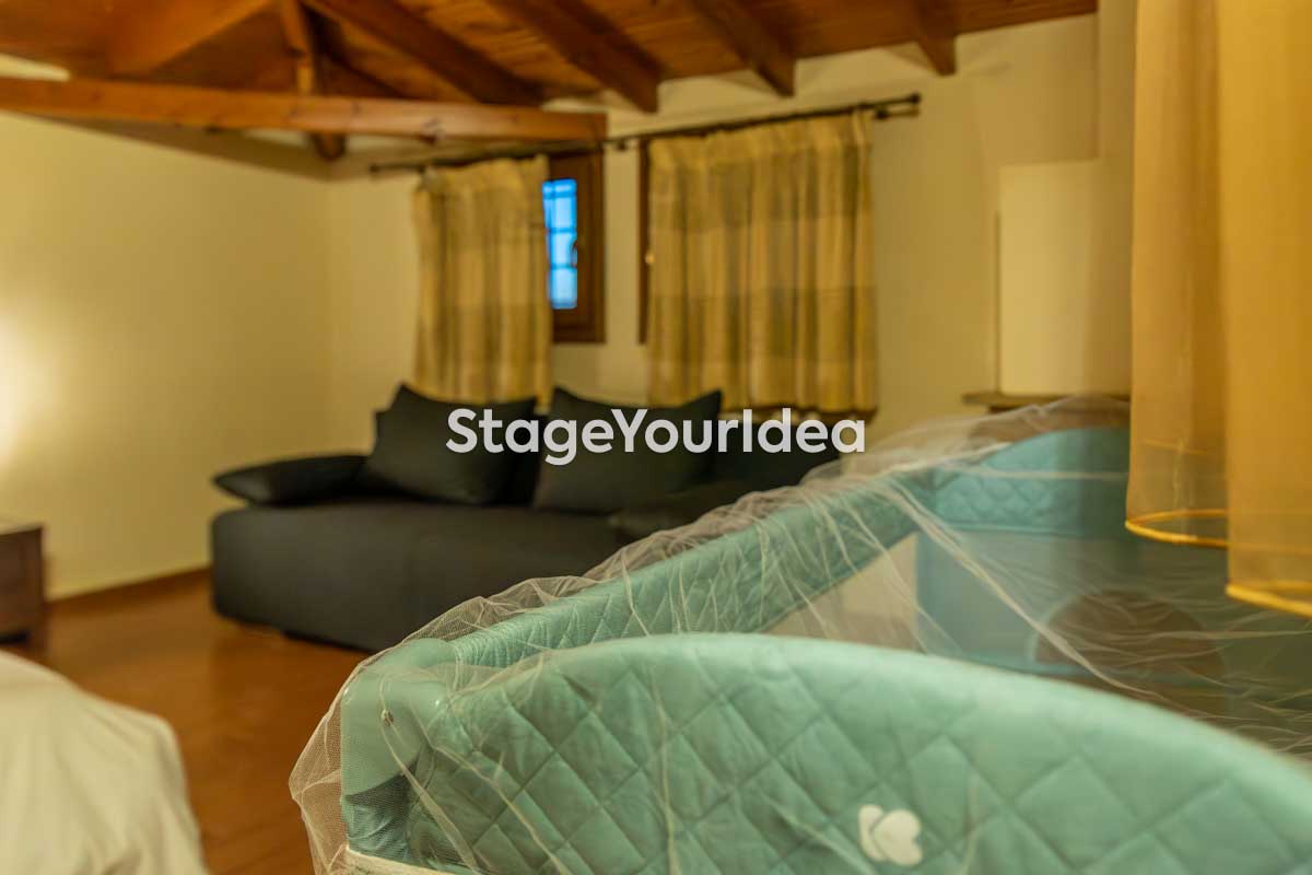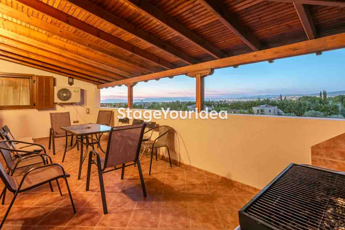 Η «Μεζονέτα με Αυτοενισχυόμενο Ηχείο και Αυλή» είναι ευρύχωρη, φωτεινή, με άνετη επίπλωση και πλήρως εξοπλισμένη κουζίνα για να ικανοποιήσετε τις ποικίλες γαστρονομικές ανάγκες των καλεσμένων σας. Τα χρώματα είναι ουδέτερα ώστε να προδιαθέτουν την ηρεμία και την χαλάρωση, και διατίθεται μεγάλο μπαλκόνι όπου εσείς και οι καλεσμένοι σας μπορείτε ν’ απολαύσετε το ποτό σας με θέα ανοιχτή στο απέραντο γαλάζιο ή τον καφέ σας υπό σκιά. Οι διοργανωτές πάρτυ μπορούν ν’ αξιοποιήσουν την αυλή για αθλητικές δραστηριότητες, να κάνουν πικ νικ, υπαίθρια εικαστικά ή θεατρικά παιχνίδια, παιχνίδια με νερό και χρώματα κ.ά.