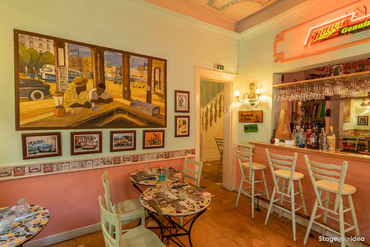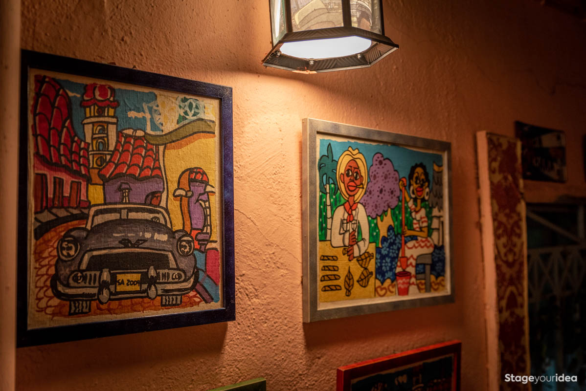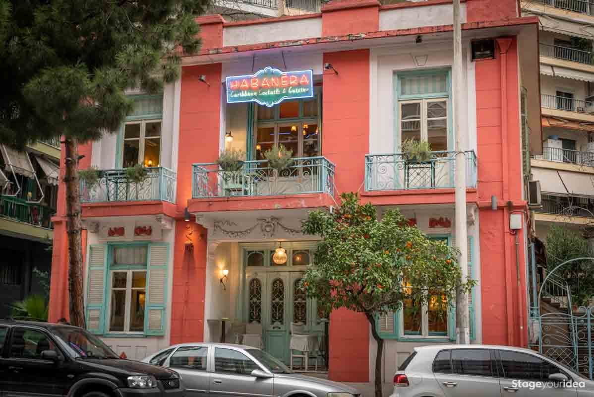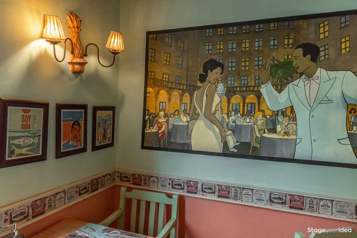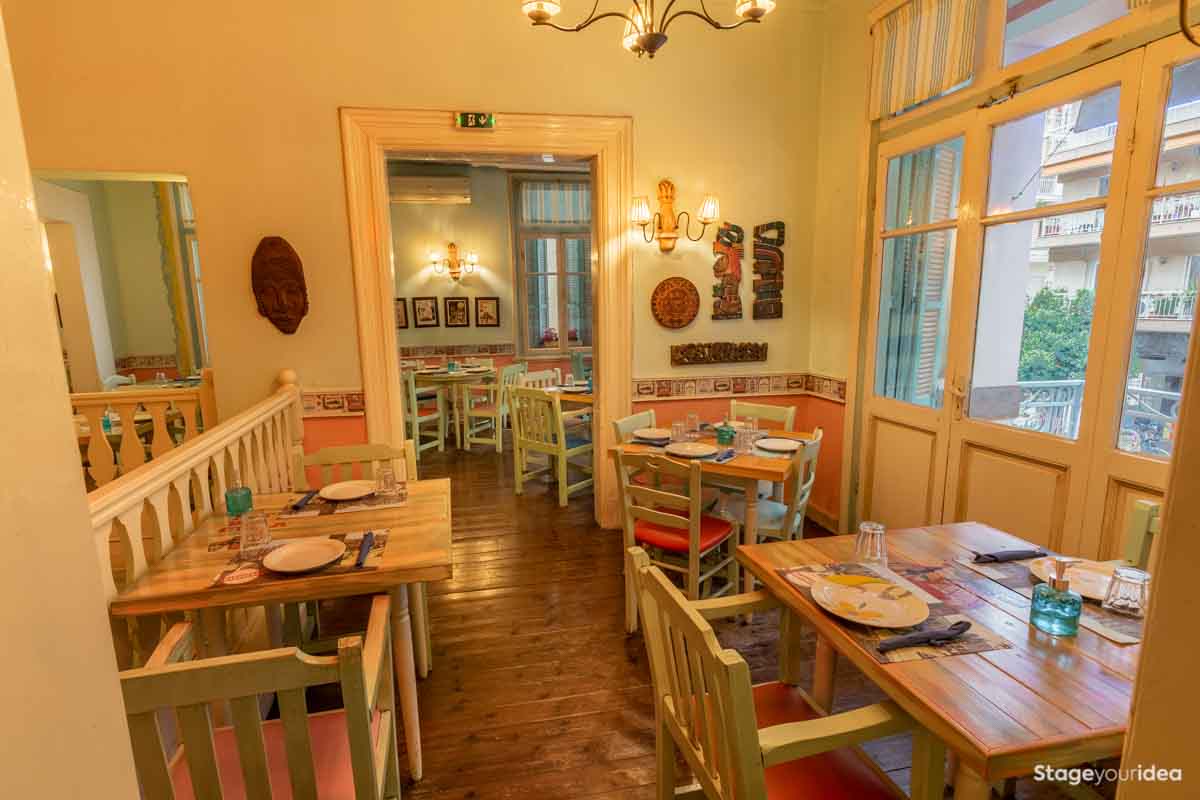 Η Αίθουσα συνδυάζει την νεοκλασική αρχιτεκτονική και το αποικιακό στυλ που χαρακτηρίζει την παραδοσιακή αισθητική και διακόσμηση των χωρών της Λατινικής Αμερικής και της Καραϊβικής. Η χρωματική της παλέτα κινείται κατά κύριο λόγο στους γήινους τόνους της τερακότα, σε διάφορες διαβαθμίσεις και σε συνδυασμό με παστέλ και ήπιες αποχρώσεις (μέντα, μπεζ - λευκό) . Η στέγη είναι πολυεπίπεδη επικλινής ακολουθώντας την πορεία των εσωτερικών σκαλοπατιών και επιπέδων. Η επίπλωση είναι ρετρό και υπάρχει ποικιλία υφών καθώς ο διάκοσμος είναι πλούσιος από κάδρα και ανάγλυφες επιφάνειες.
