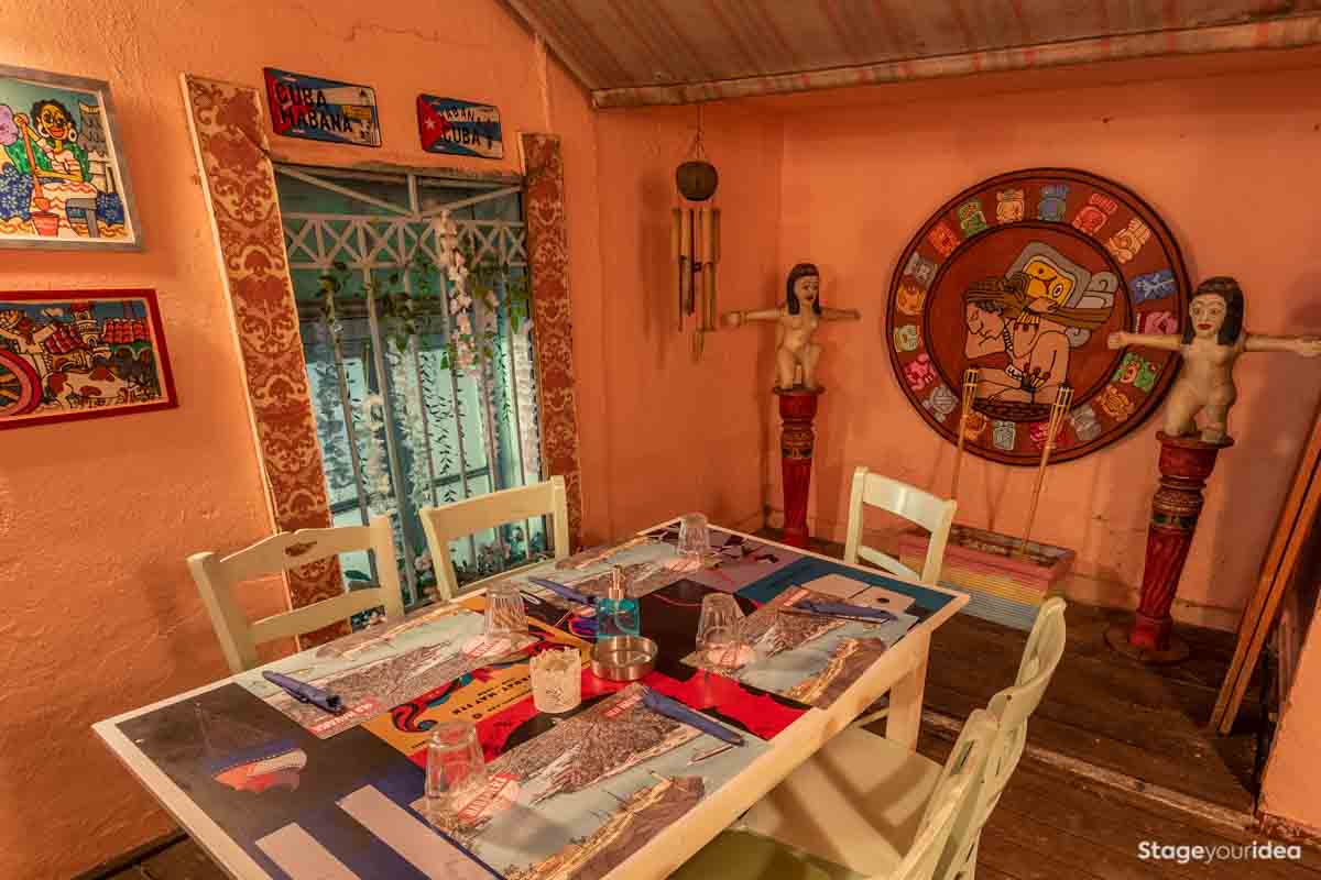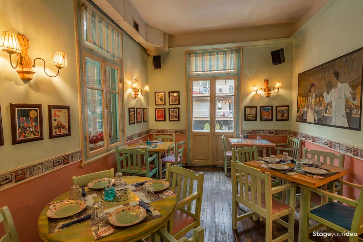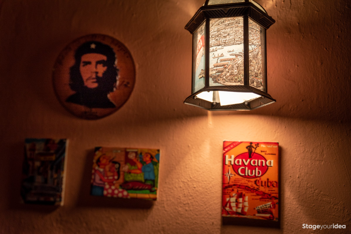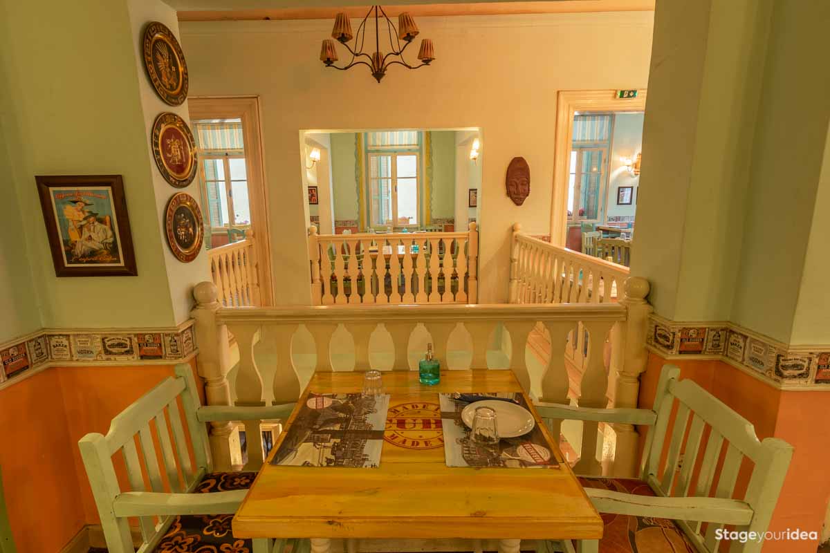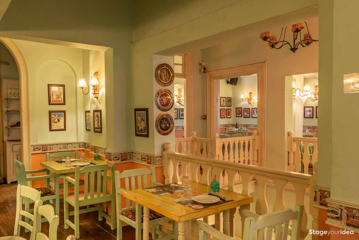 Η Αίθουσα συνδυάζει την νεοκλασική αρχιτεκτονική και το αποικιακό στυλ που χαρακτηρίζει την παραδοσιακή αισθητική και διακόσμηση των χωρών της Λατινικής Αμερικής και της Καραϊβικής. Η χρωματική της παλέτα κινείται κατά κύριο λόγο στους γήινους τόνους της τερακότα, σε διάφορες διαβαθμίσεις και σε συνδυασμό με παστέλ και ήπιες αποχρώσεις (μέντα, μπεζ - λευκό) . Η στέγη είναι πολυεπίπεδη επικλινής ακολουθώντας την πορεία των εσωτερικών σκαλοπατιών και επιπέδων. Η επίπλωση είναι ρετρό και υπάρχει ποικιλία υφών καθώς ο διάκοσμος είναι πλούσιος από κάδρα και ανάγλυφες επιφάνειες.
