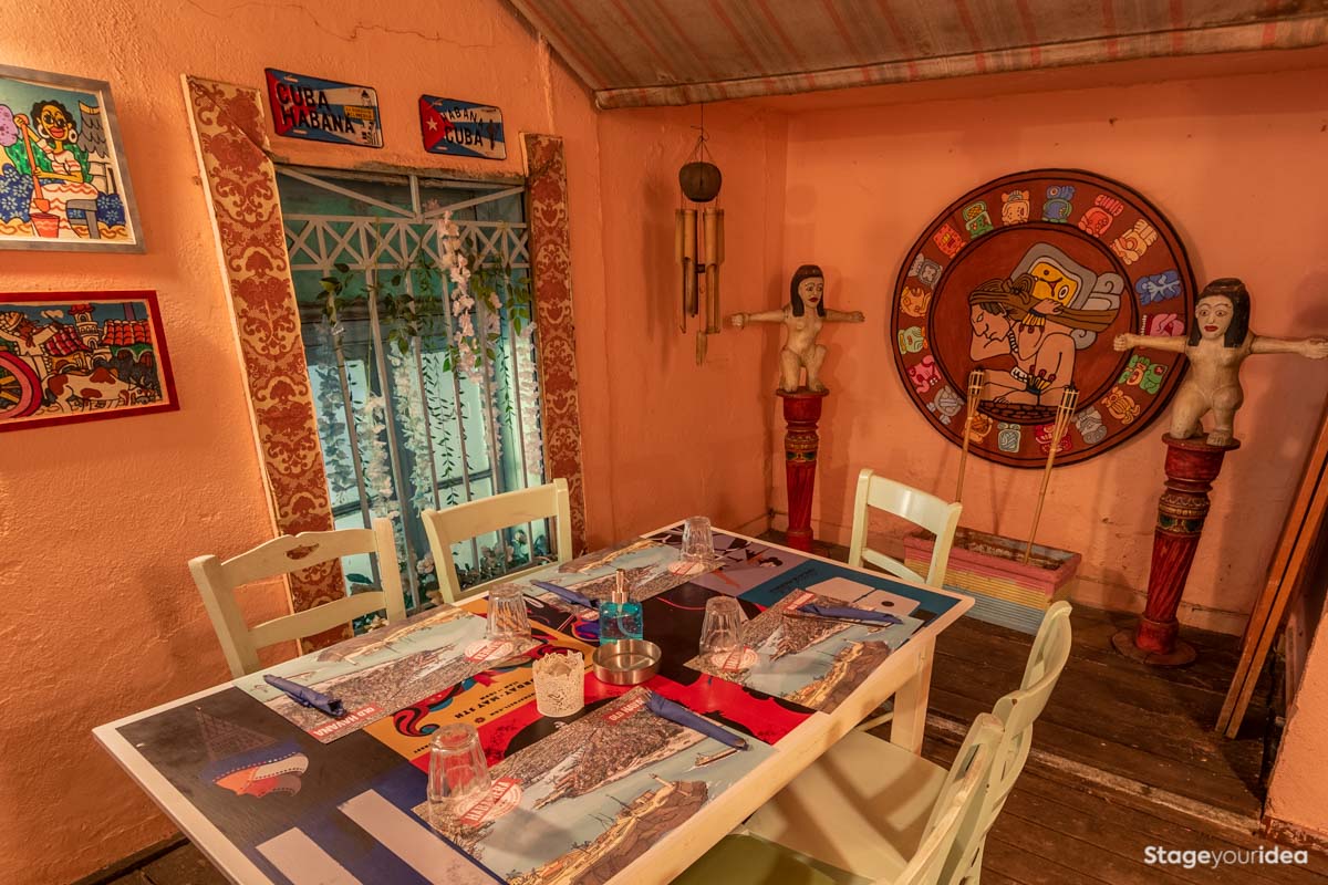 Η «Χαρακτηριστική Λατινοαμερικανική Αυλή», προσφέρει μια al fresco dining εμπειρία με εικόνες και ήχους από την εξωτική και επαναστατική κουλτούρα της Λατινικής Αμερικής. Θυμίζει στεγασμένο αίθριο ισπανικής hacienda, κατάμεστη από διάκοσμο που απεικονίζει ιστορικές προσωπικότητες και σύμβολα του λατινοαμερικανικού πολιτισμού που επηρέασαν τον ρου της παγκόσμιας ιστορίας. Aπό την χαρακτηριστική σφραγίδα που αποτυπώνει το ημερολόγιο των Μάγια και τα τοτέμ, έως τον Εμιλιάνο Ζαπάτα, την Φρίντα Κάλο, και των Ibrahim Ferrer των Buena Vista Social Club, έχετε την ευκαιρία να απολαύσετε ένα ταξίδι ιδεών, γεύσεων και ήχων που στιγμάτισαν όλη την ανθρωπότητα.