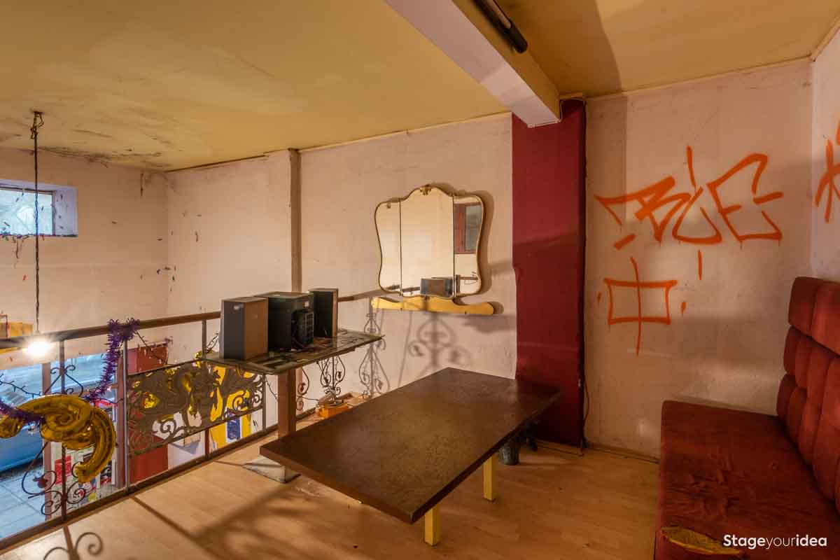 O «Βιομηχανικός Χώρος σε Εμπορικό Δρόμο» συνταιριάζει την αρχοντικότητα του νεοκλασικού με την αφαιρετικότητα και ανοιχτωσιά του βιομηχανικού στυλ. Το βιομηχανικό, ανθεκτικό δάπεδο, είναι ιδανικό για χορευτική δραστηριότητα, βασικό συστατικό ενός επιτυχημένου πάρτυ. Το μπαρ είναι λειτουργικό, με σωστή αναλογία σε σχέση με την υπόλοιπη διαρρύθμιση της αίθουσας, η μεταλλική, σκαλιστή σκάλα προσδίδει κομψότητα και μια vintage πινελιά στη συνολική ατμόσφαιρα και οι μεγάλες διαπερατές τζαμαρίες διευρύνουν οπτικά τον χώρο και τα όριά του. Το υπερυψωμένο πατάρι είναι το κατ΄εξοχήν πεδίο δράσης του DJ, ο/η οποίος/α βρίσκεται δικαίως σε περίοπτη θέση καθώς διαθέτει τα ηνία της διασκέδασης των συμμετεχόντων. Η χρωματική του παλέτα είναι ουδέτερη καθώς ο φωτισμός είναι ο πρωταγωνιστής του σκηνικού, με δυνατότητα πολύχρωμων, φαντασμαγορικών εφέ, που θα καθηλώσουν τους προσκεκλημένους σας.