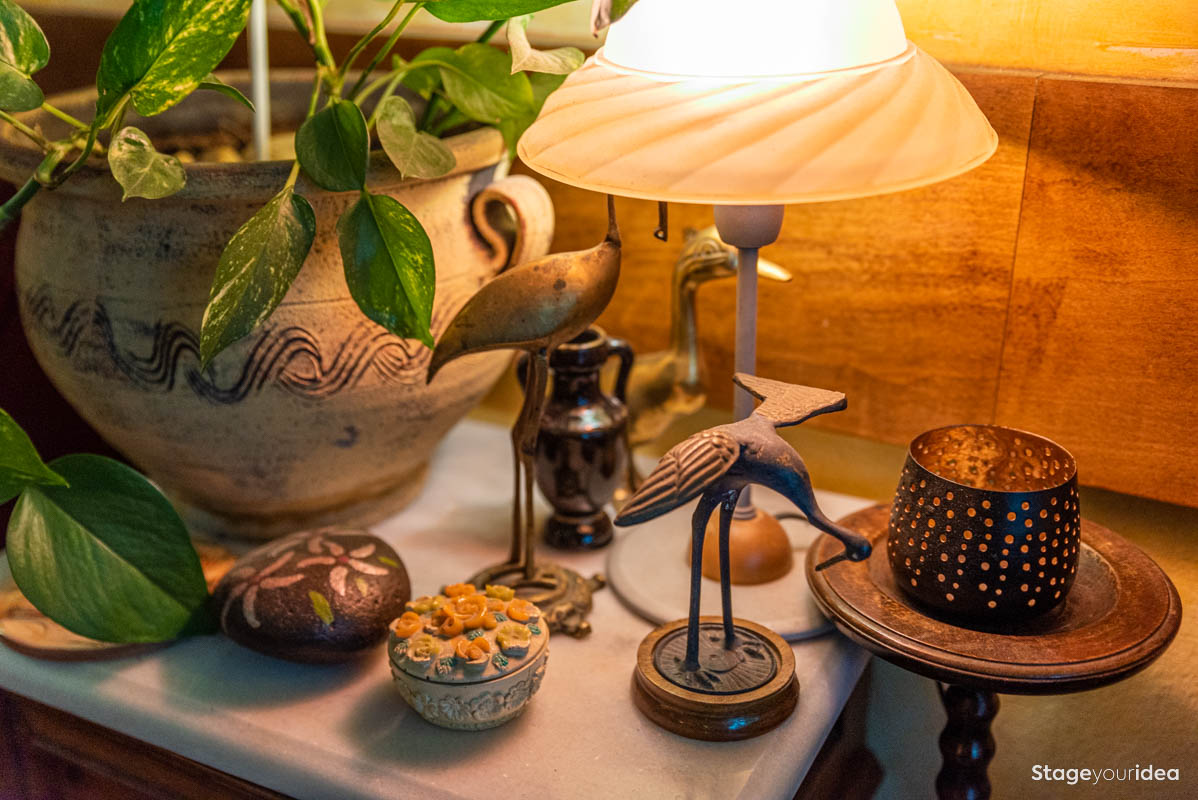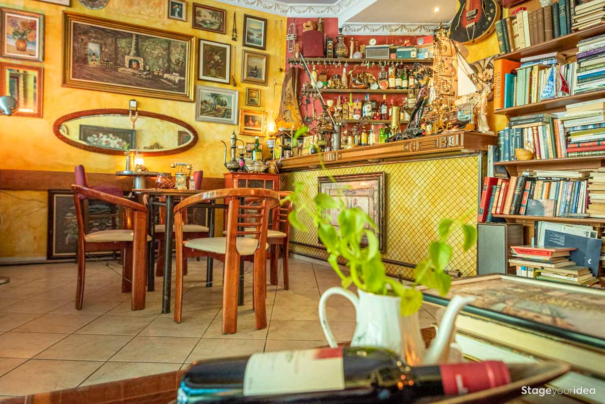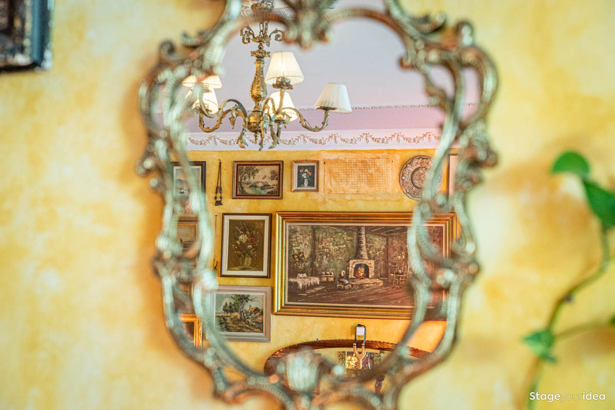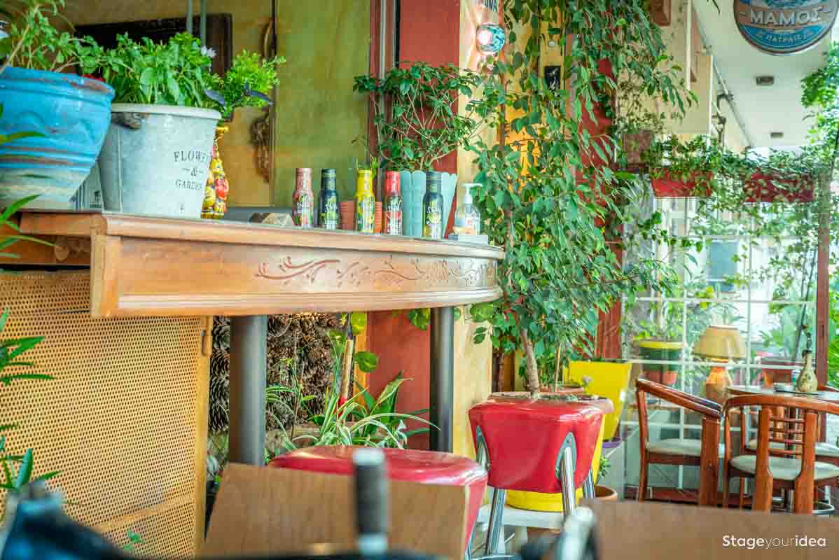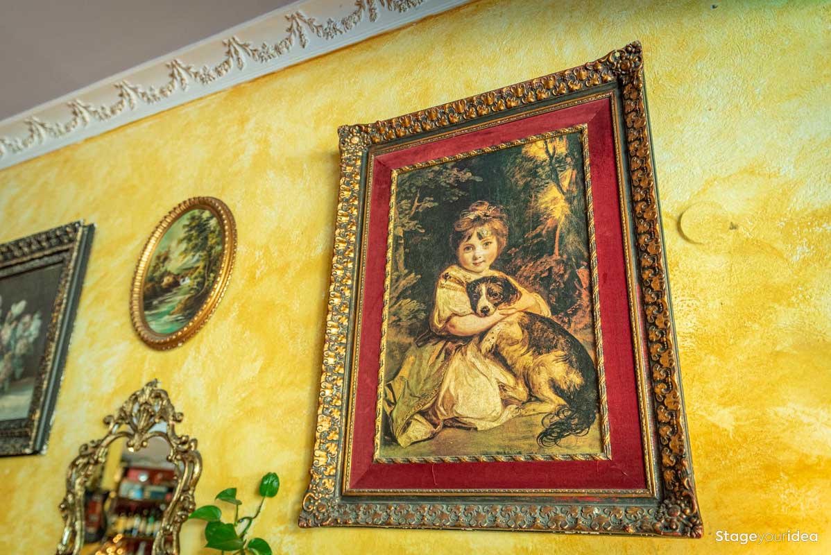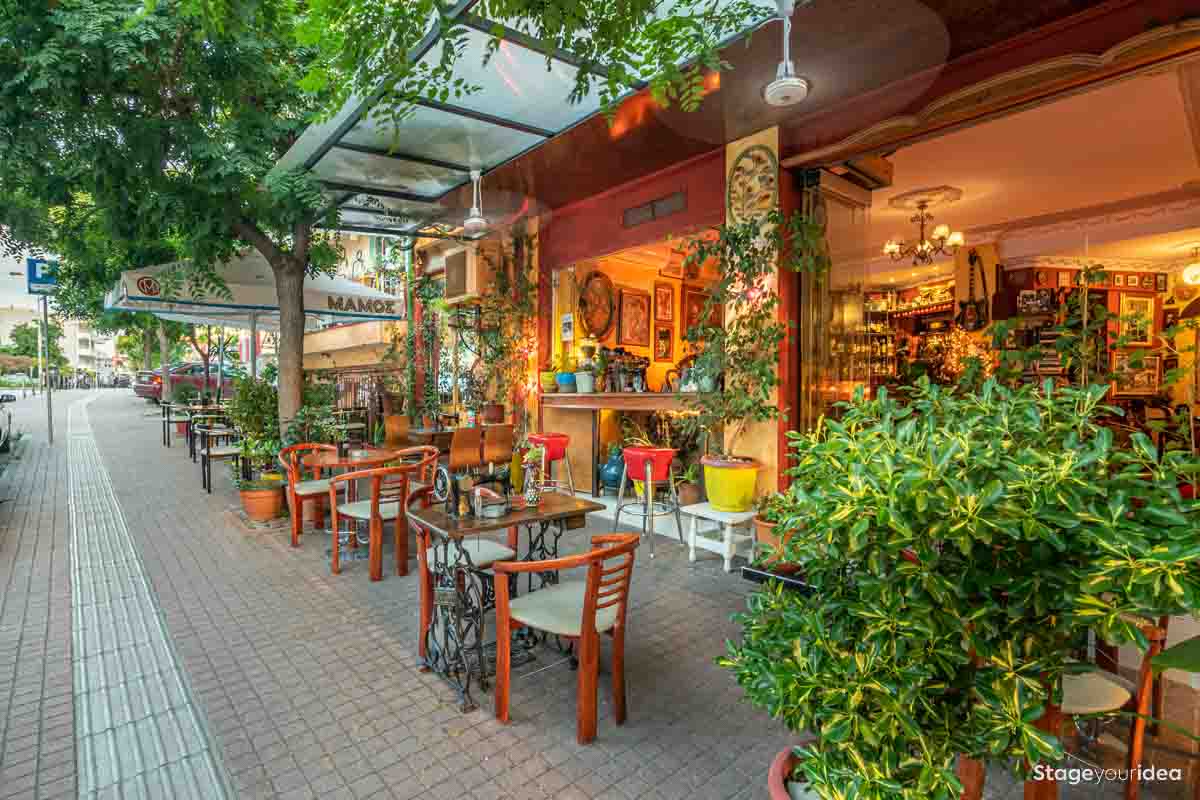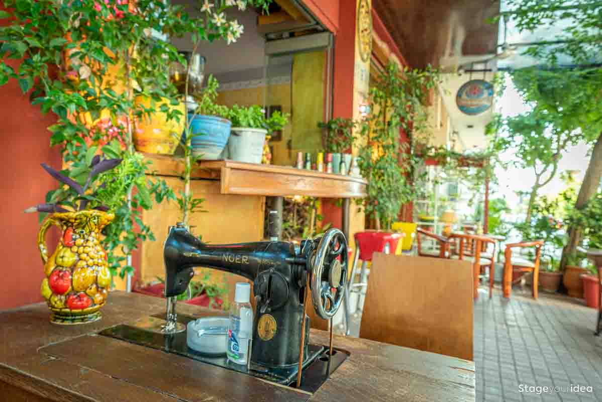 Η αισθητική του «Καφέ / Μουσείο - Έκθεση Αντίκας» χαρακτηρίζεται από αισθητικό εκλεκτικισμό, όπου ο πληθωρισμός, η πολυτέλεια και η αίσθηση του μεγαλειώδους που εκπέμπουν οι ροκοκό πινελιές στον διάκοσμο και την επίπλωση, συμβιώνουν με ρετρό στοιχεία όπως αντίκες, κάδρα και άλλα συλλεκτικά αντικείμενα που εξυμνούν την ομορφιά, τον ρομαντισμό, την δεξιοτεχνία αλλά και την αντισυμβατικότητα. Η ατμόσφαιρα του χώρου θυμίζει τα ιστορικά παριζιάνικα καφέ όπου καλλιτέχνες και διανοούμενοι διαμόρφωναν καλλιτεχνικά ρεύματα και ιδεολογίες που έμελλαν να επηρεάσουν το ρουν της ανθρωπότητας. Η διακόσμηση πληθωρική, θεατρική, δραματική, με ξεκάθαρες γραμμές και γωνίες, με μια ποικιλία υφών και με χρώματα γήινα, και απαλά, με διακοσμητικές ανάγλυφες λεπτομέρειες στους τοίχους, με έναν περίτεχνο πολυέλαιο και με μεγάλες, φαρδιές, τζαμαρίες, σε προσκαλεί να εισέλθεις στον θαυμαστό κόσμο της τέχνης.