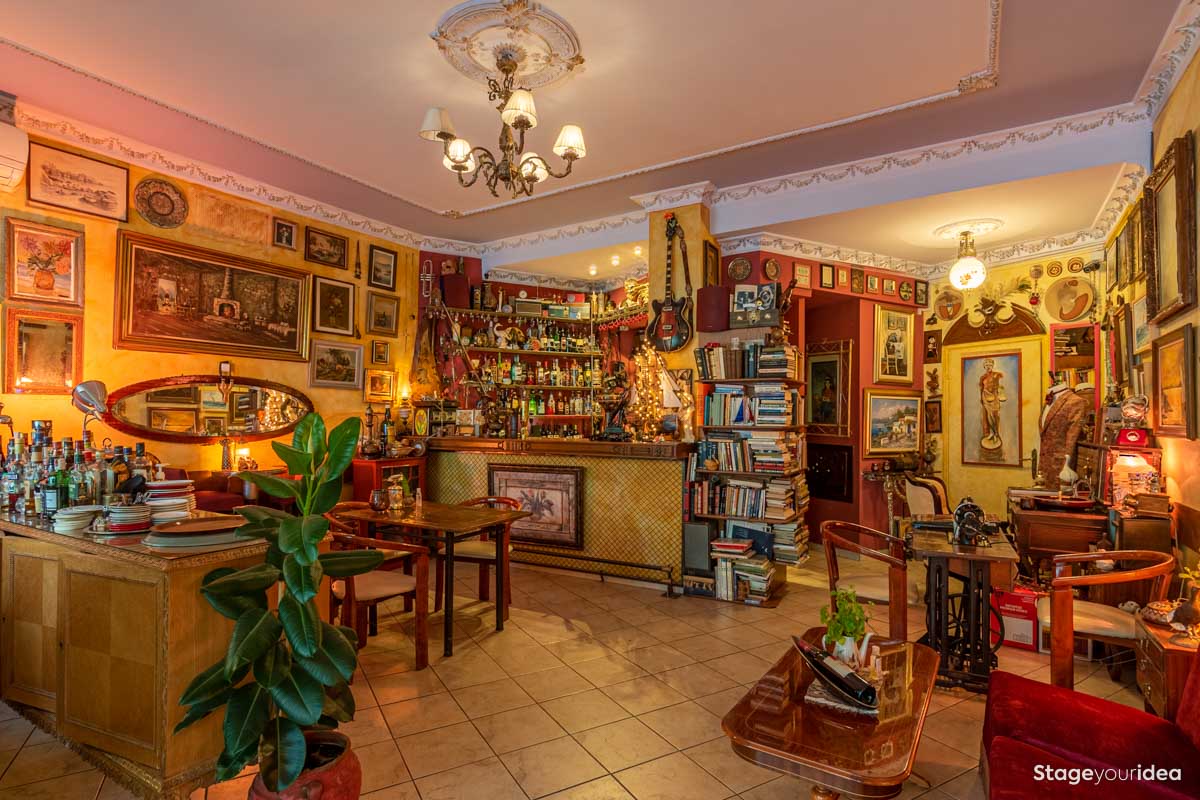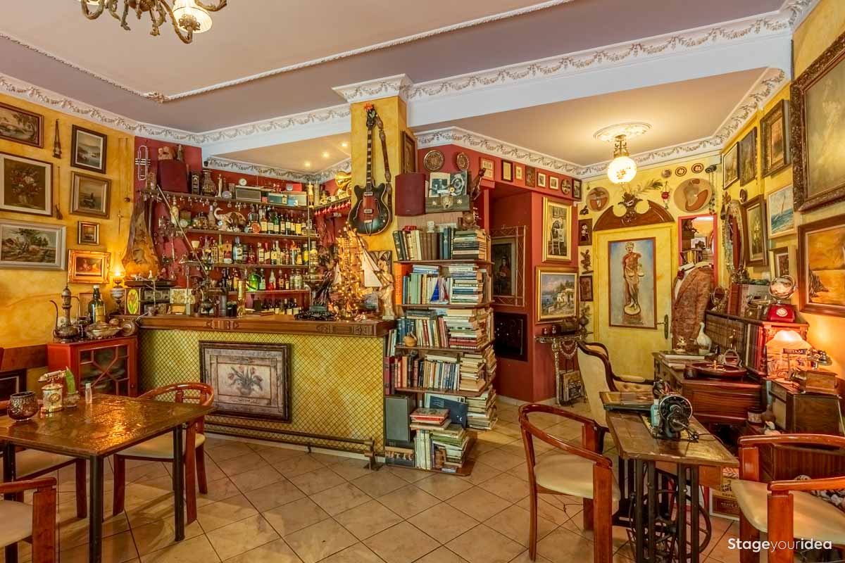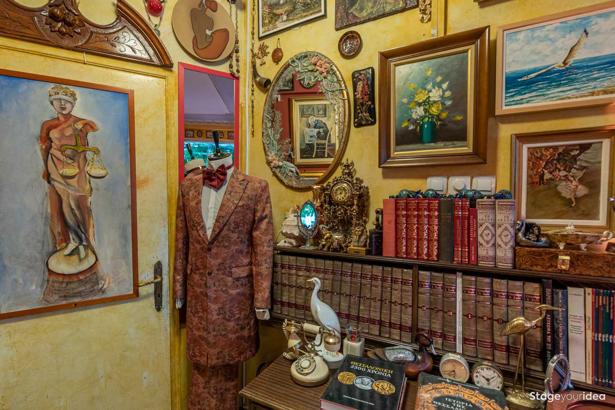 Το «Καφέ / Μουσείο - Έκθεση Αντίκας», είναι ο τόπος όπου ο χρόνος κάνει μια παύση για να νοηματοδοτηθεί από το σήμερα καθώς εδώ συναντάει κανείς κάτι θαυμαστά παράδοξο… την ιντελιγκέντσια να συναρμόζεται με την αντικουλτούρα υπό την αισθητική αιγίδα της επιτήδευσης του ροκοκό και εκλεκτών συλλεκτικών αντικειμένων καλλιτεχνικής ή ιστορικής σημασίας. Δεσπόζει ως μια εξωστρεφή προβολή του συνόλου των ρεαλιστικών και συναισθηματικών εμπειριών και αναμνήσεων του δημιουργού με απώτερο σκοπό την διαισθητική σας επικοινωνία με τις βαθύτερες εσωτερικές σας αναζητήσεις.