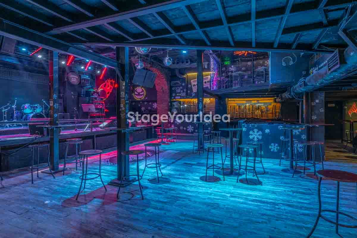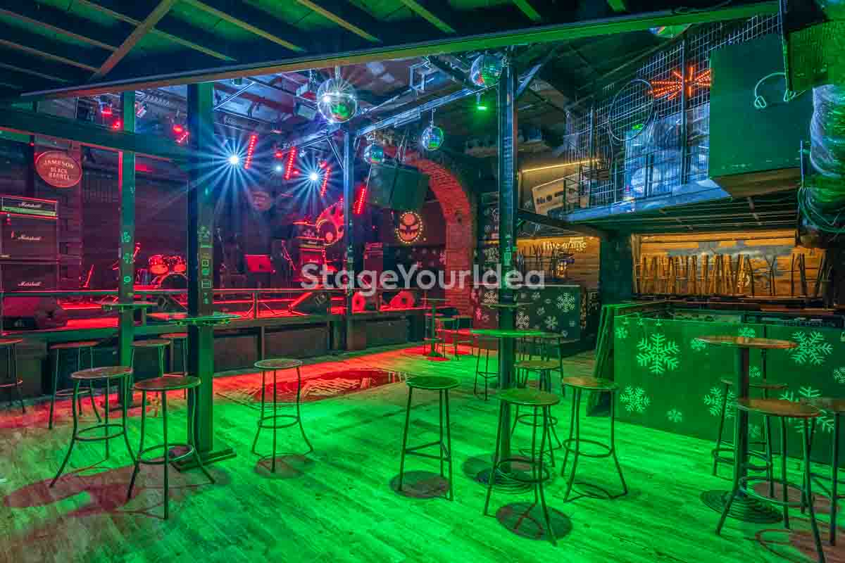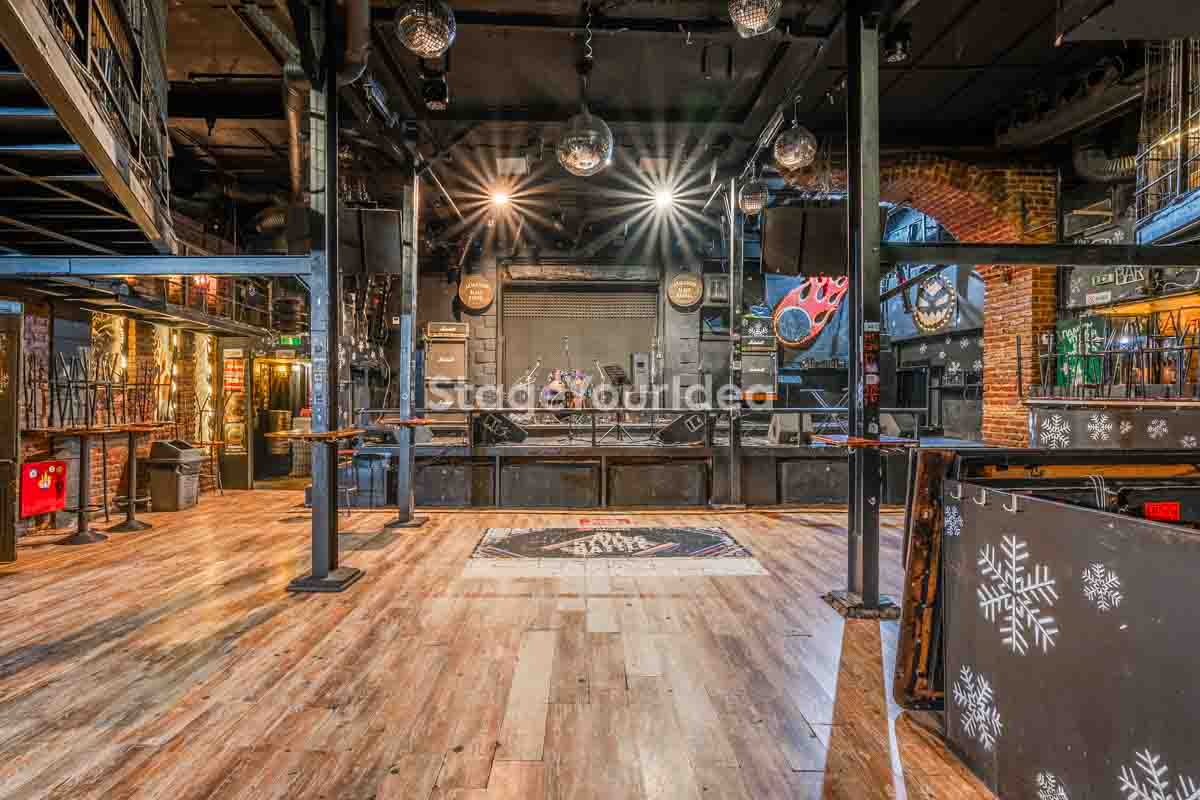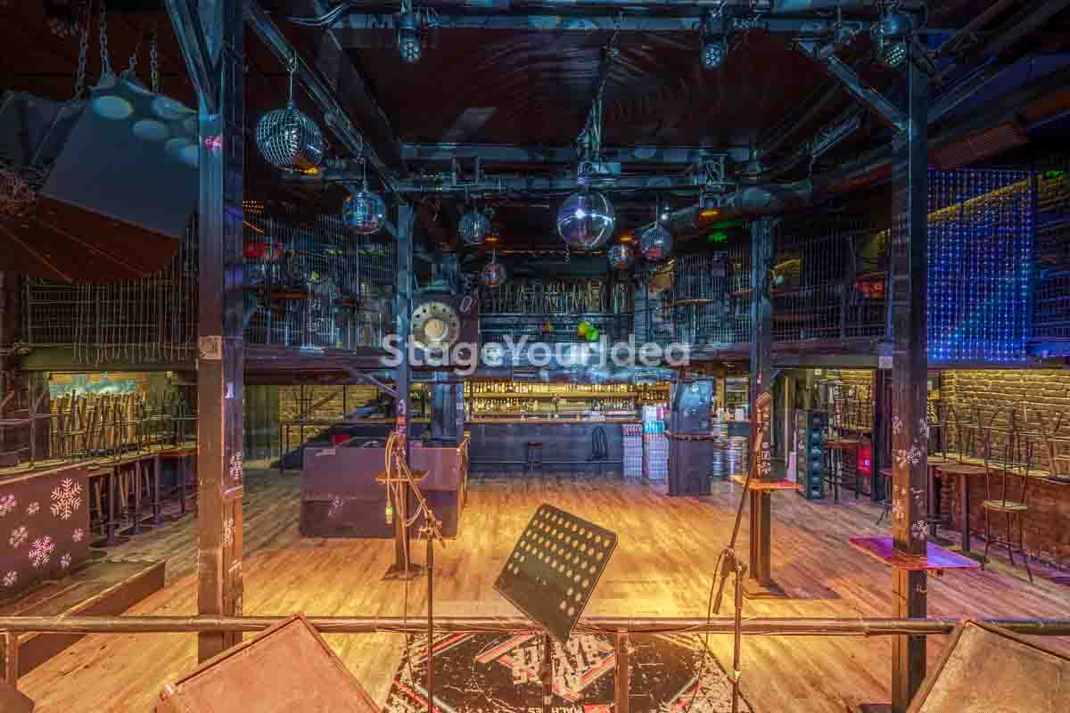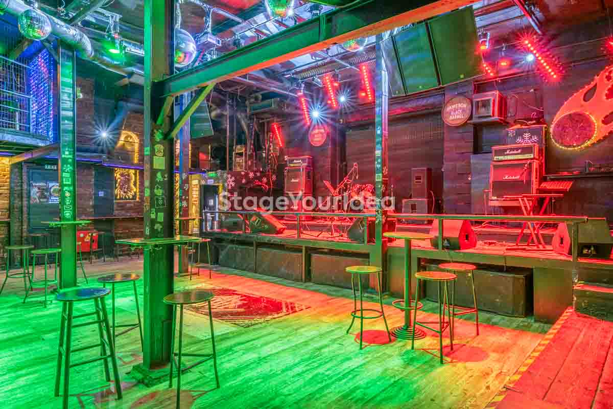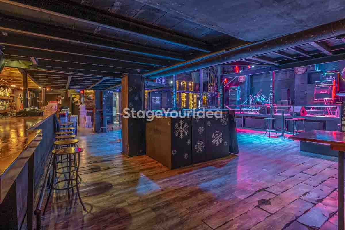 Ο σχεδιασμός της αίθουσας είναι ιδανικός για τη διοργάνωση πάρτυ καθώς προσφέρονται ξεχωριστά επίπεδα (μπαρ, stage, χώρος συνάθροισης), επιτρέποντας στον κόσμο να κινείται άνετα, να χορεύει, να απολαμβάνει μουσική live ή από DJ, και να δημιουργεί ξεχωριστές στιγμές σε ένα περιβάλλον που θυμίζει παλιό rock bar ή urban καταφύγιο.