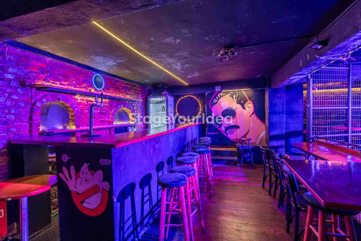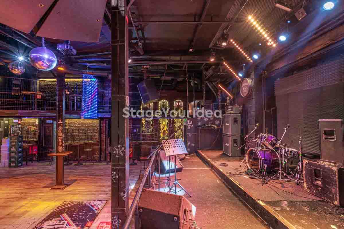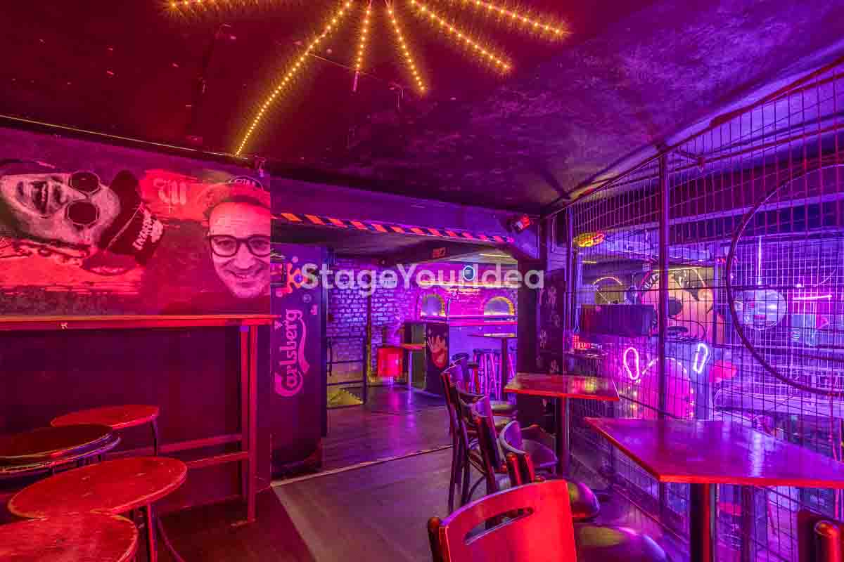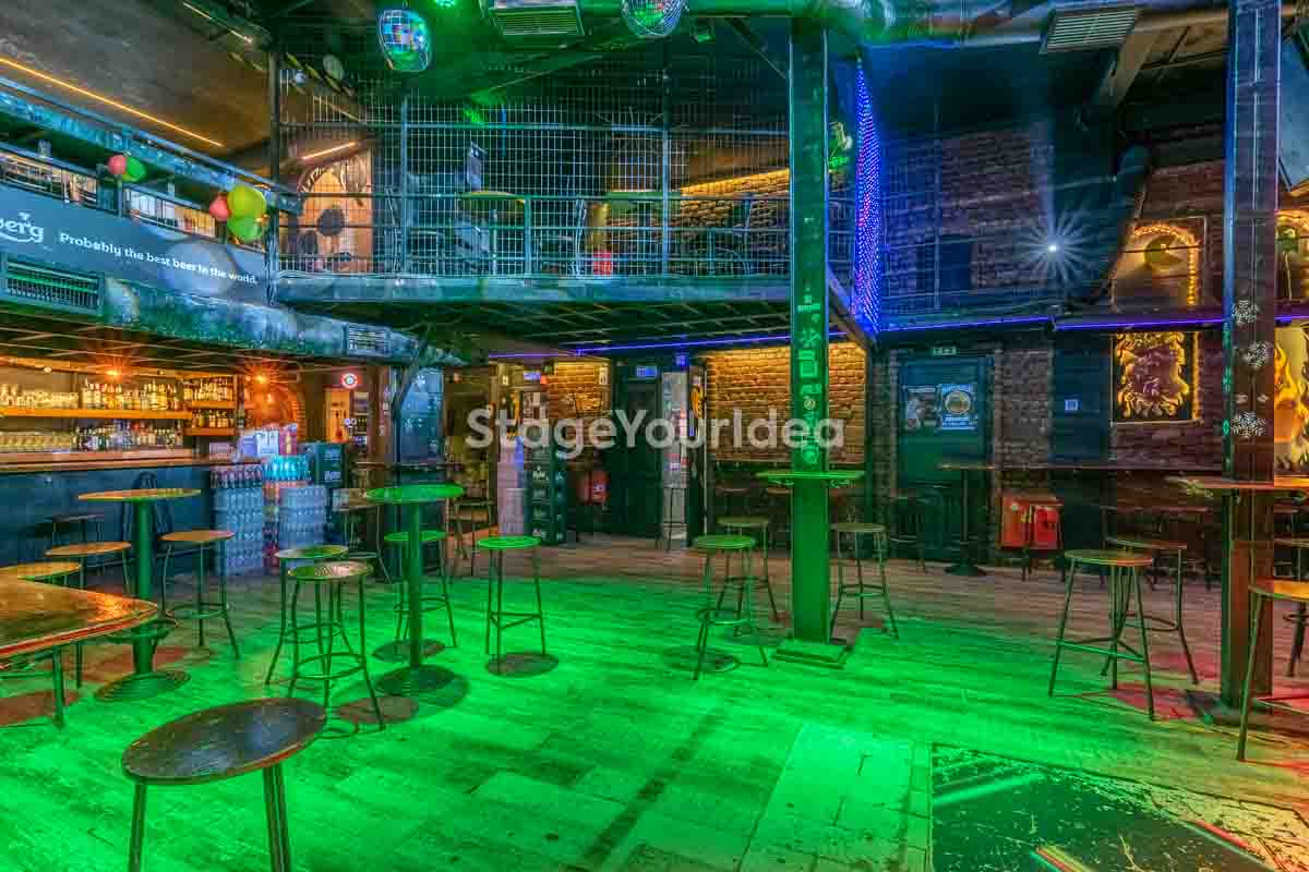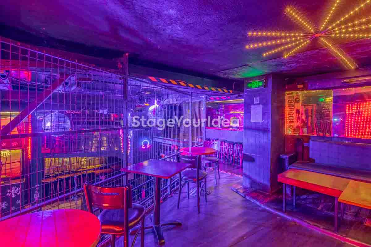 Ο σχεδιασμός της αίθουσας είναι ιδανικός για τη διοργάνωση πάρτυ καθώς προσφέρονται ξεχωριστά επίπεδα (μπαρ, stage, χώρος συνάθροισης), επιτρέποντας στον κόσμο να κινείται άνετα, να χορεύει, να απολαμβάνει μουσική live ή από DJ, και να δημιουργεί ξεχωριστές στιγμές σε ένα περιβάλλον που θυμίζει παλιό rock bar ή urban καταφύγιο.