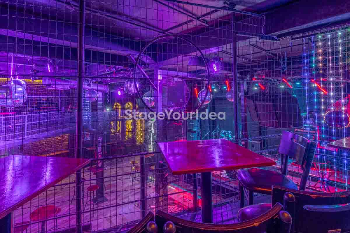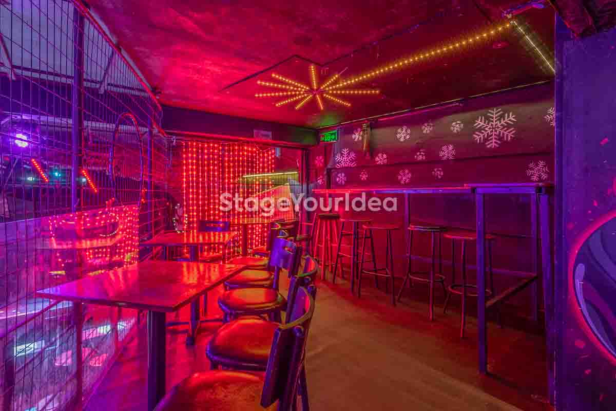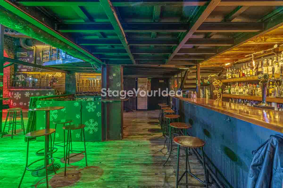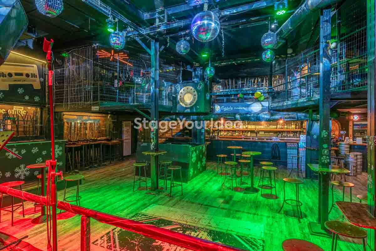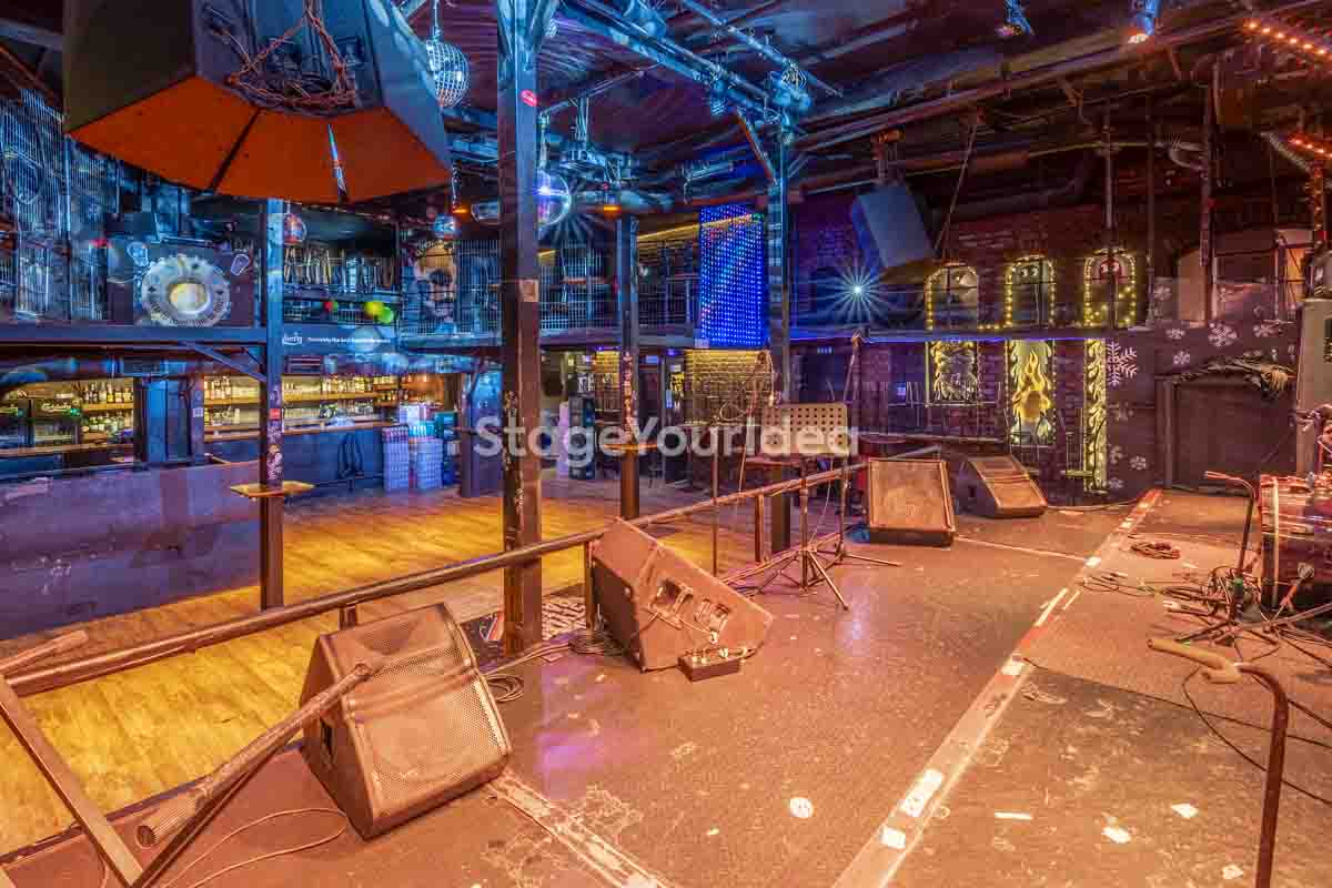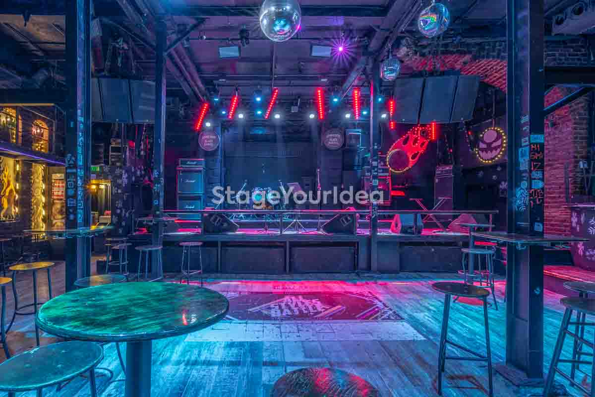Ο σχεδιασμός της αίθουσας είναι ιδανικός για τη διοργάνωση πάρτυ καθώς προσφέρονται ξεχωριστά επίπεδα (μπαρ, stage, χώρος συνάθροισης), επιτρέποντας στον κόσμο να κινείται άνετα, να χορεύει, να απολαμβάνει μουσική live ή από DJ, και να δημιουργεί ξεχωριστές στιγμές σε ένα περιβάλλον που θυμίζει παλιό rock bar ή urban καταφύγιο.