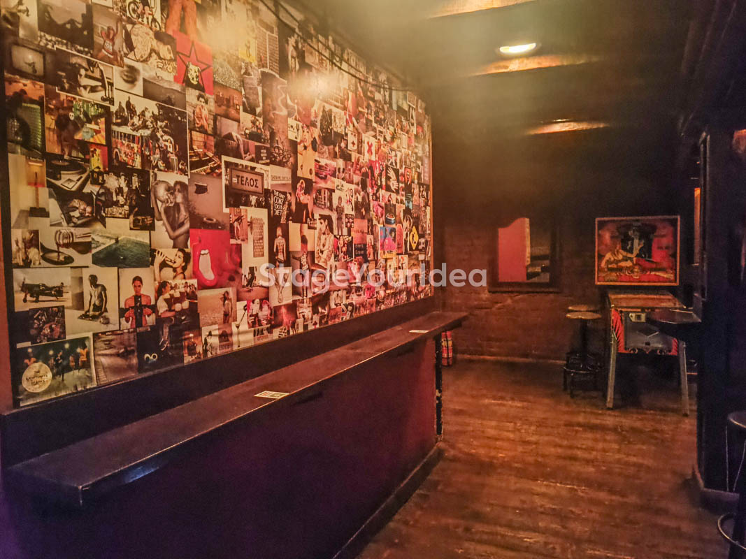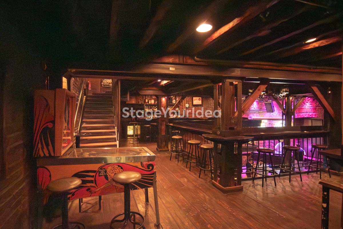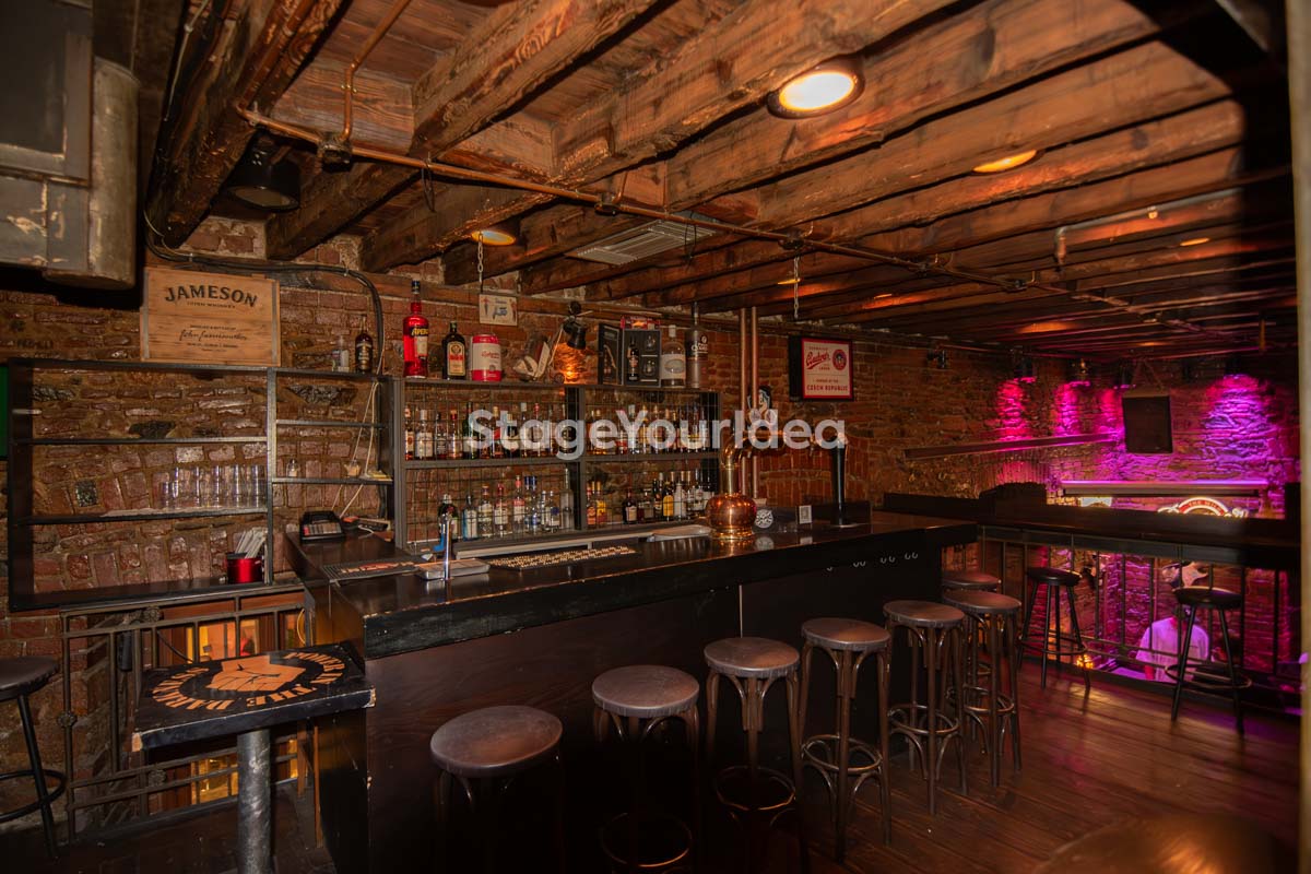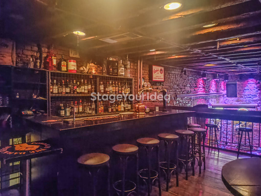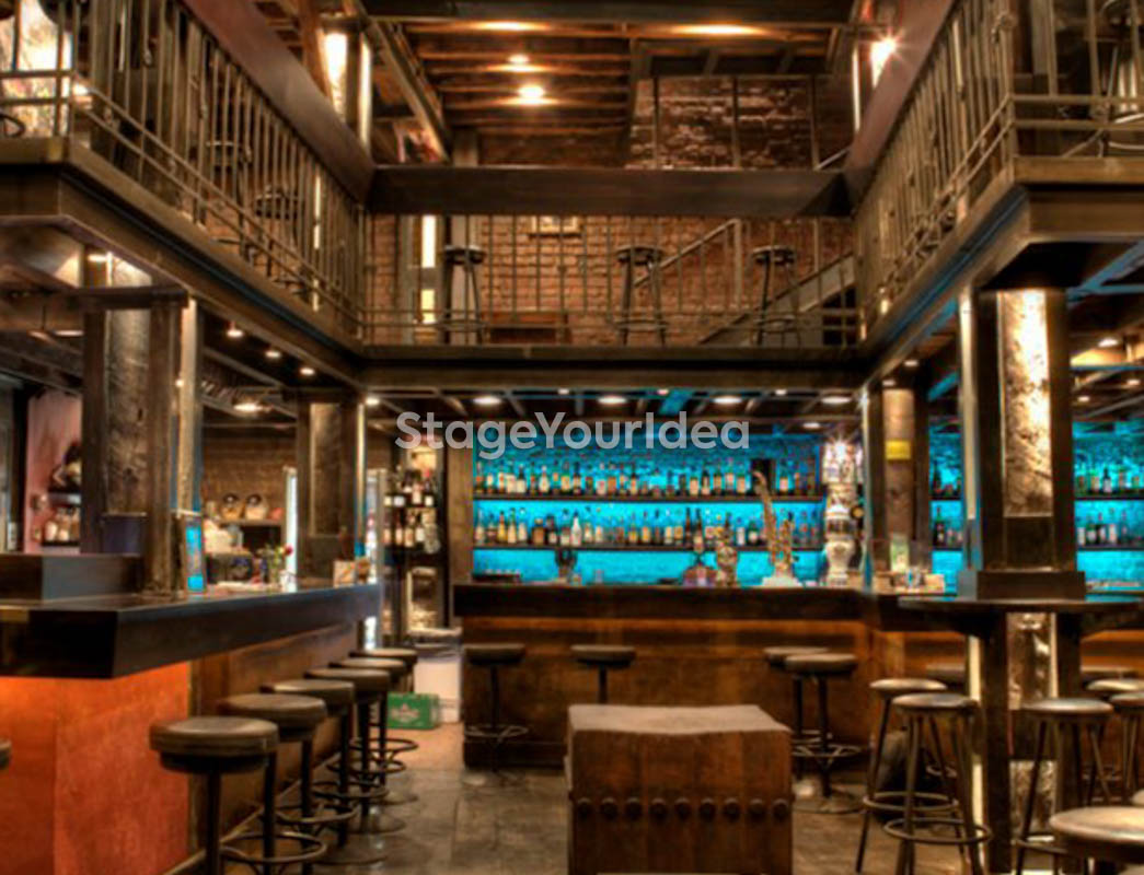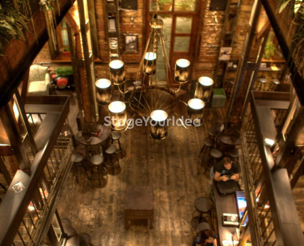 Το Ρουστίκ Βιομηχανικό Μπαρ με Vintage Stage προσφέρει μια καθηλωτική οπτική εμπειρία που οι διοργανωτές μπορούν να προσαρμόσουν σε μια μεγάλη ποικιλία περιστάσεων. Αισθητικά, ο πολυχώρος επιτυγχάνει μια προσεκτική ισορροπία μεταξύ του ακατέργαστου και του εκλεπτυσμένου. Οι τραχείς πέτρινοι τοίχοι μαλακώνονται από vintage επίπλωση, ζεστό ατμοσφαιρικό φωτισμό και νοσταλγικές διακοσμητικές πινελιές. Η οροφή με ανοιχτά δοκάρια αγκαλιάζει τα βιομηχανικά στοιχεία (π.χ. τις ορατές σωληνώσεις), ενώ προσεκτικά τοποθετημένα ρετρό στοιχεία, όπως κλασικά φωτιστικά οροφής και πολυθρόνες με φουντωτές άκρες, δημιουργούν μια vintage ατμόσφαιρα για το σαλόνι.