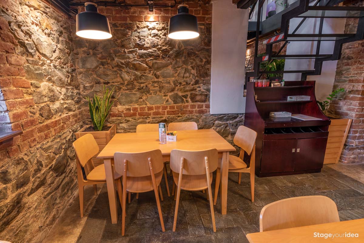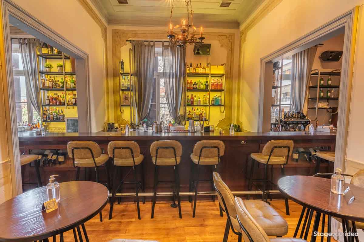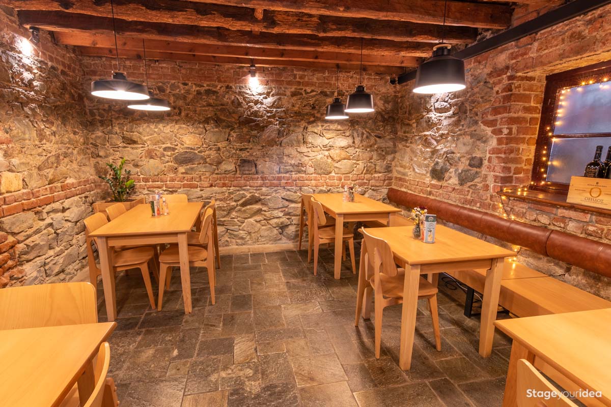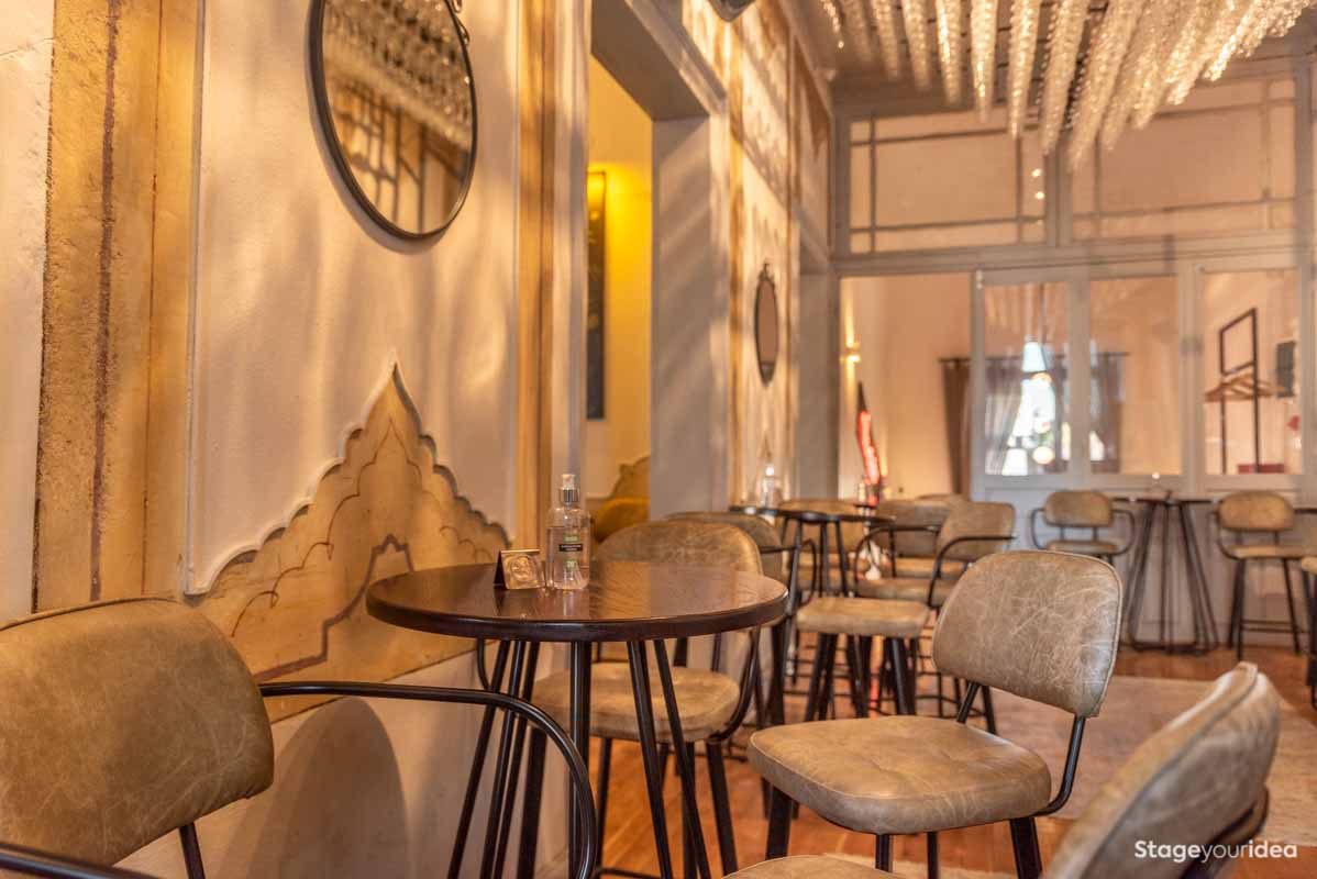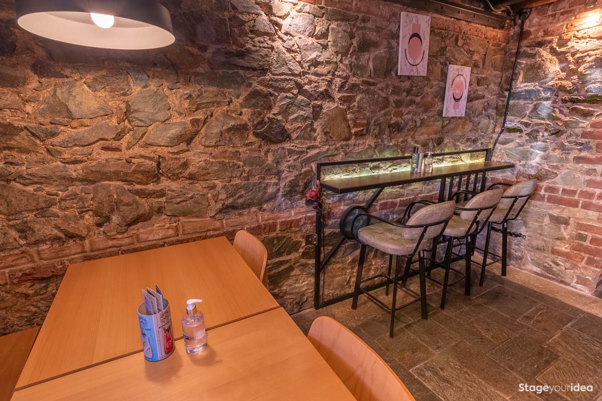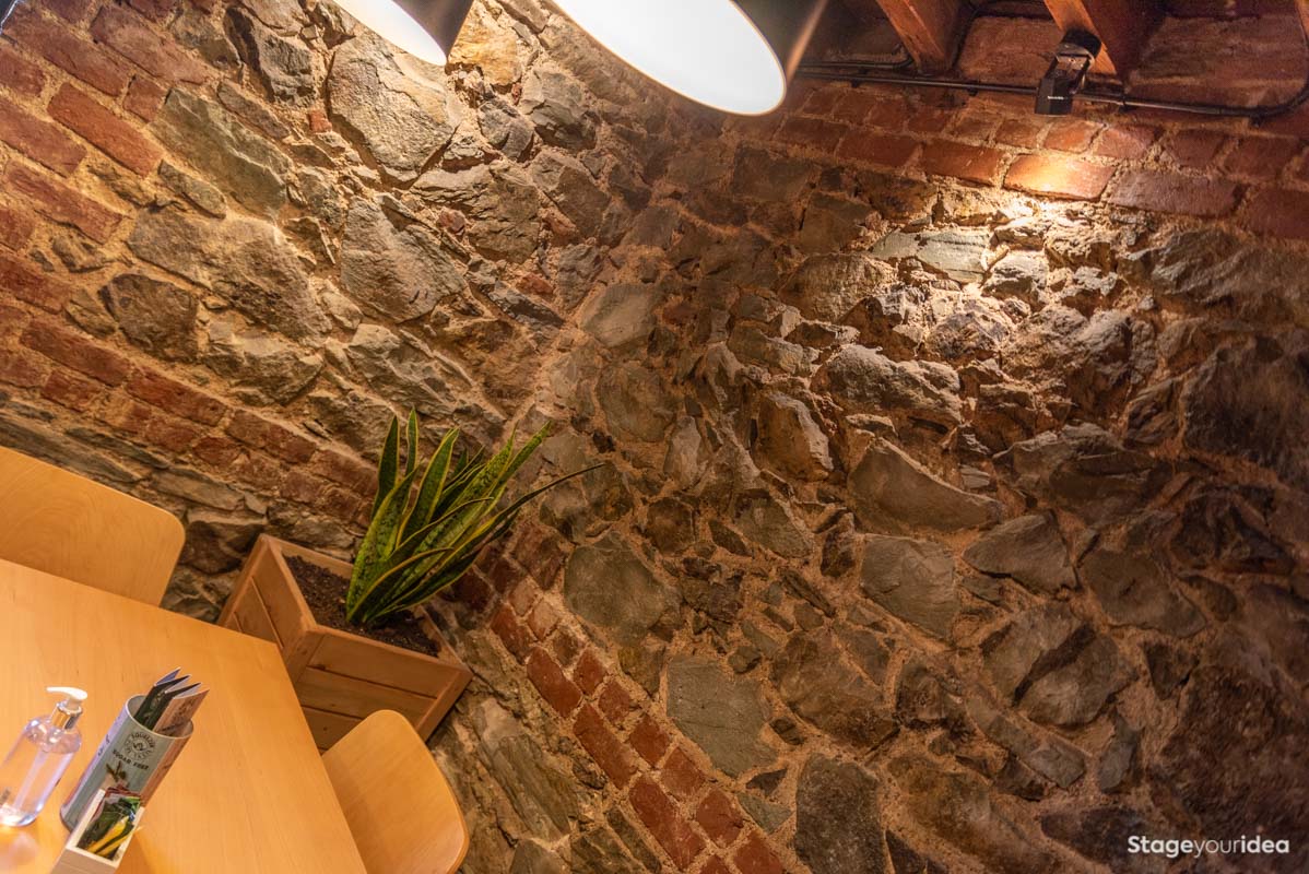 Η Αίθουσα αποτελεί επιτομή του ρουστίκ σε συνδυασμό με το βιομηχανικό στυλ ή αλλιώς όταν το παραδοσιακό συναντά την λιτότητα. Η ανεπεξέργαστη πέτρα στους τοίχους που αποπνέει την ιστορικότητα του χώρου στην φυσική απόχρωση της τερακότα, το ραφιναρισμένο ξύλο και το ανάγλυφο δάπεδο με τα πορσελανάτα πλακάκια με εφέ πέτρας μεταδίδουν την αρχοντικότητα και την διαχρονική γοητεία του χώρου. Οι σύγχρονης αισθητικής κάβες δηλώνουν την ταυτότητα της Αίθουσας και υπόσχονται στιγμές χαλάρωσης και απόλαυσης.