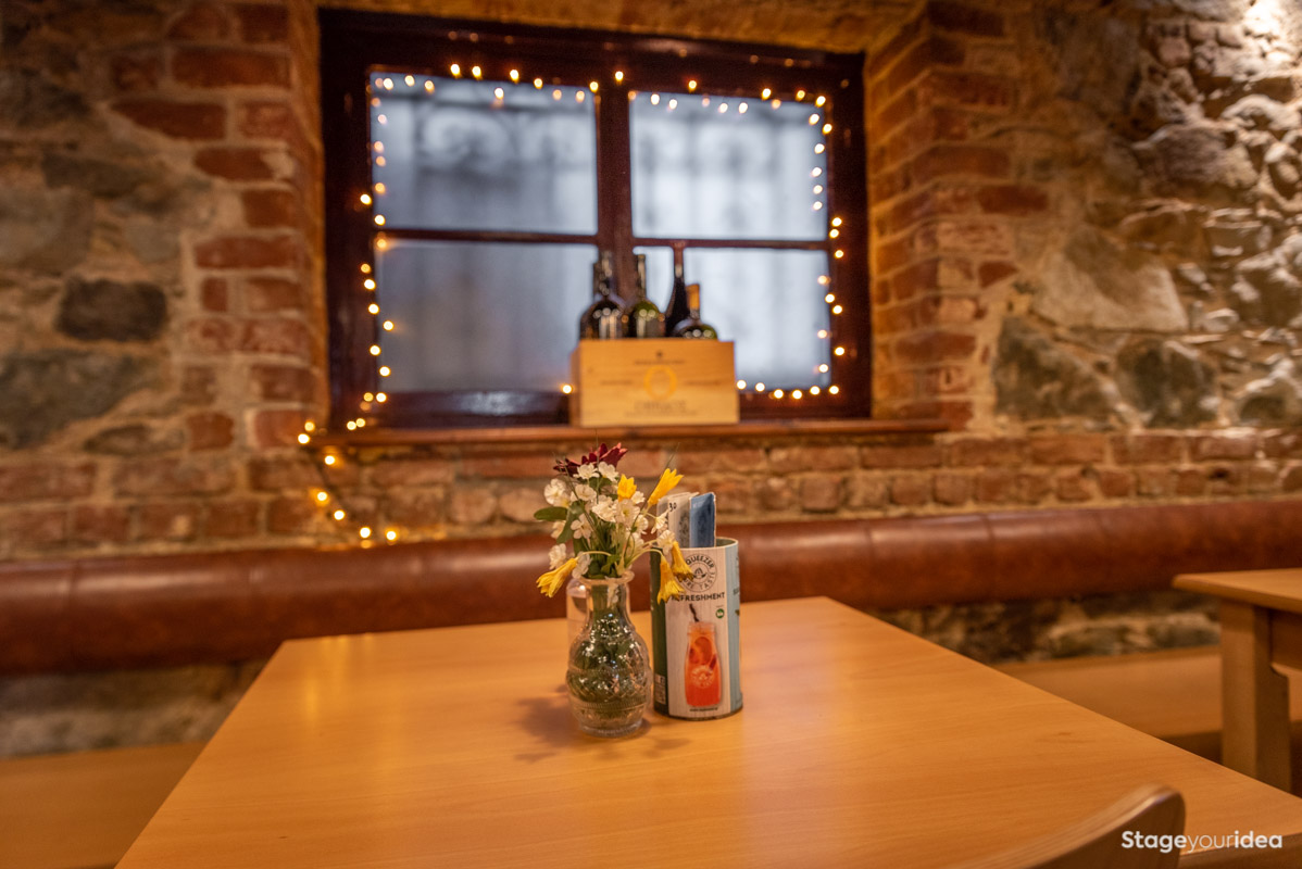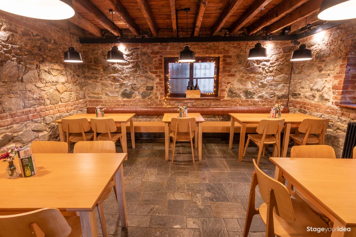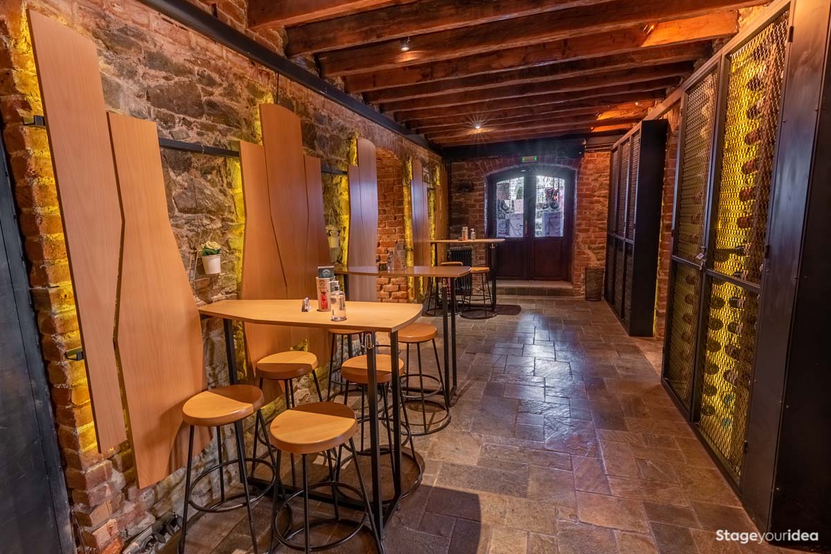 Για Εκδηλώσεις & Συναντήσεις Το «Ήσυχο Γραφικό Κελάρι» διατίθεται για κρατήσεις με ελάχιστο αριθμό επισκεπτών τα 20 άτομα. Αποτελείται από 3 δωμάτια / υποχώρους με φυσικό και τεχνητό ατμοσφαιρικό φωτισμό που εργονομικά προσφέρονται ως ξεχωριστές εστίες συνάθροισης που προάγουν την επιπλέον ιδιωτικότητα και εξυπηρετούν όσους επιζητούν την κοινωνικοποίηση σε ένα ήσυχο περιβάλλον. Θα μπορούσαν να λειτουργήσουν και συνεπικουρικά της κύριας διοργάνωσης με διαφορετική θεματική ή διαφορετική επιμέρους χρήση.