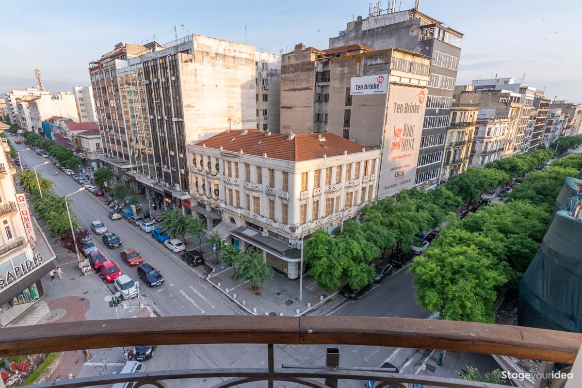 Έχει μεγάλα παράθυρα περιμετρικά και καθώς “επικοινωνεί” με την ταράτσα, την καθιστούν ένα διαμπερές και δροσερό, καθότι ηλιόλουστο τις πρωινές ώρες, περιβάλλον με ανοιχτή θέα στη πόλη, μακριά από τη φασαρία του δρόμου. Αν και οι χρωματικοί της τόνοι είναι έντονοι, προάγοντας την εγρήγορση, διαθέτει άνετους φαρδείς καναπέδες που προσφέρονται ως εστίες άνετης συζήτησης, χαλάρωσης και στοχασμού.