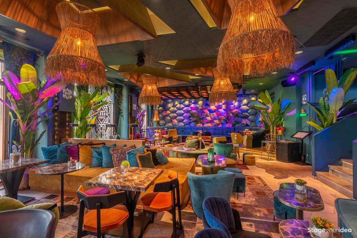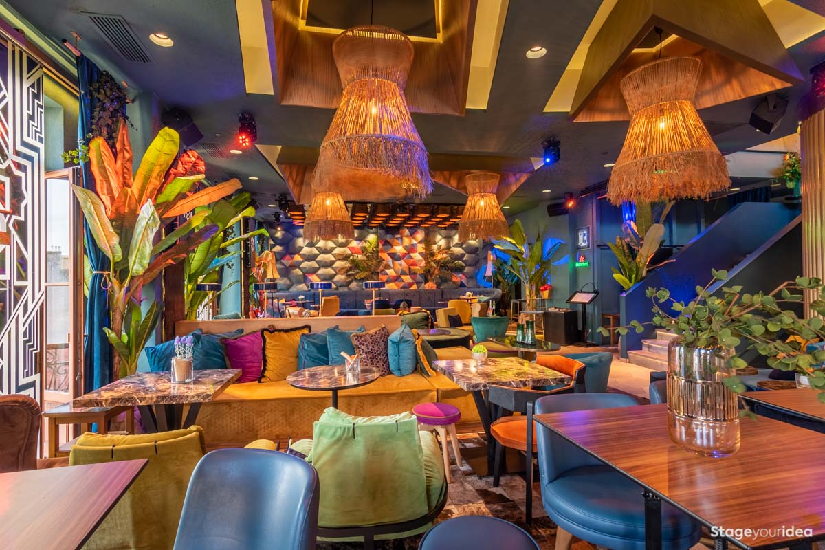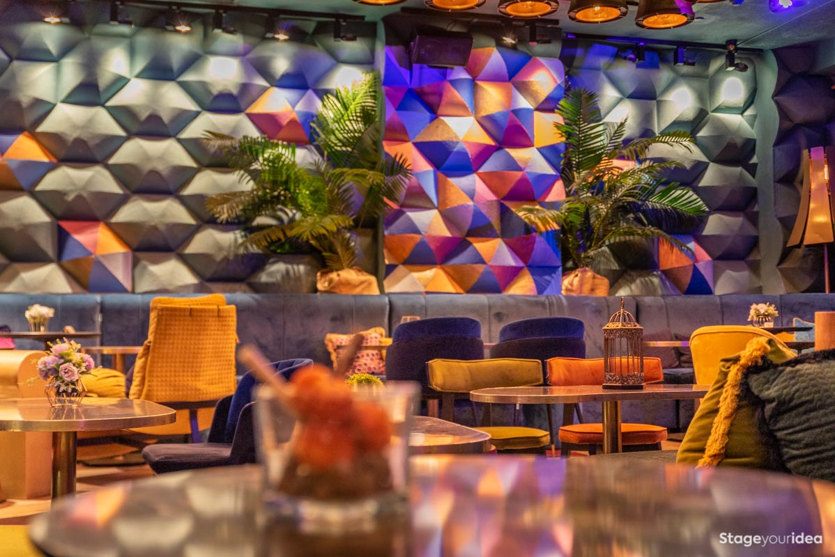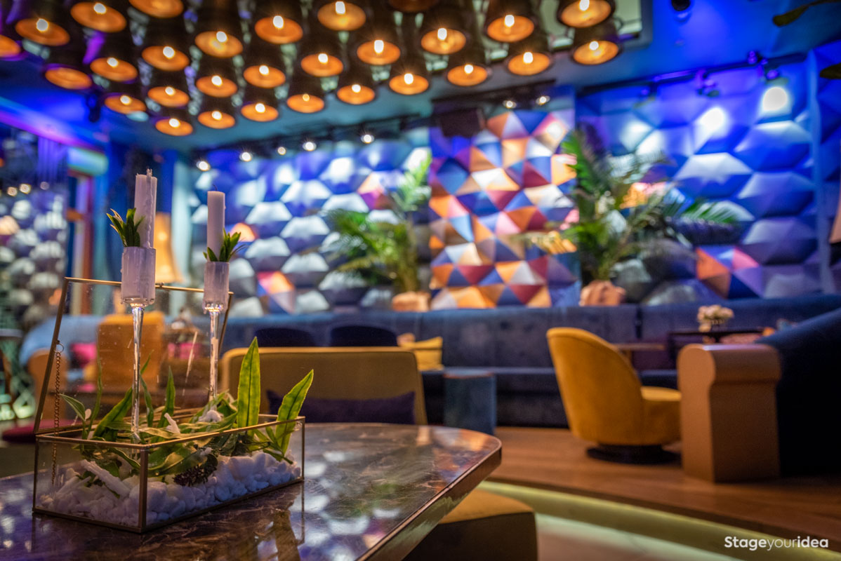 To «Πολυτελές Club με Εξωτική Διακόσμηση» είναι πληθωρικό, πολύχρωμο, αισθητικά περιπετειώδες και πολυσχιδές, comfy, προσφέροντας μια πρωτόγνωρη αισθητηριακή εμπειρία μέσα από έντεχνους παιχνιδισμούς γεωμετρικών σχημάτων, διαστάσεων, μοτίβων, υφών και χρωματισμών. Εδώ ο τόπος και ο χρόνος συναντιούνται για να δημιουργήσουν κάτι φαντασμαγορικό. Η Αίθουσα μοιάζει με installation που ερμηνεύει το tribal με τεχνολογικούς όρους υπό το πρίσμα της πολυτέλειας και της άνεσης.